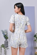 CASSIE EMBOSSED FLORAL ROMPER IN BLUE