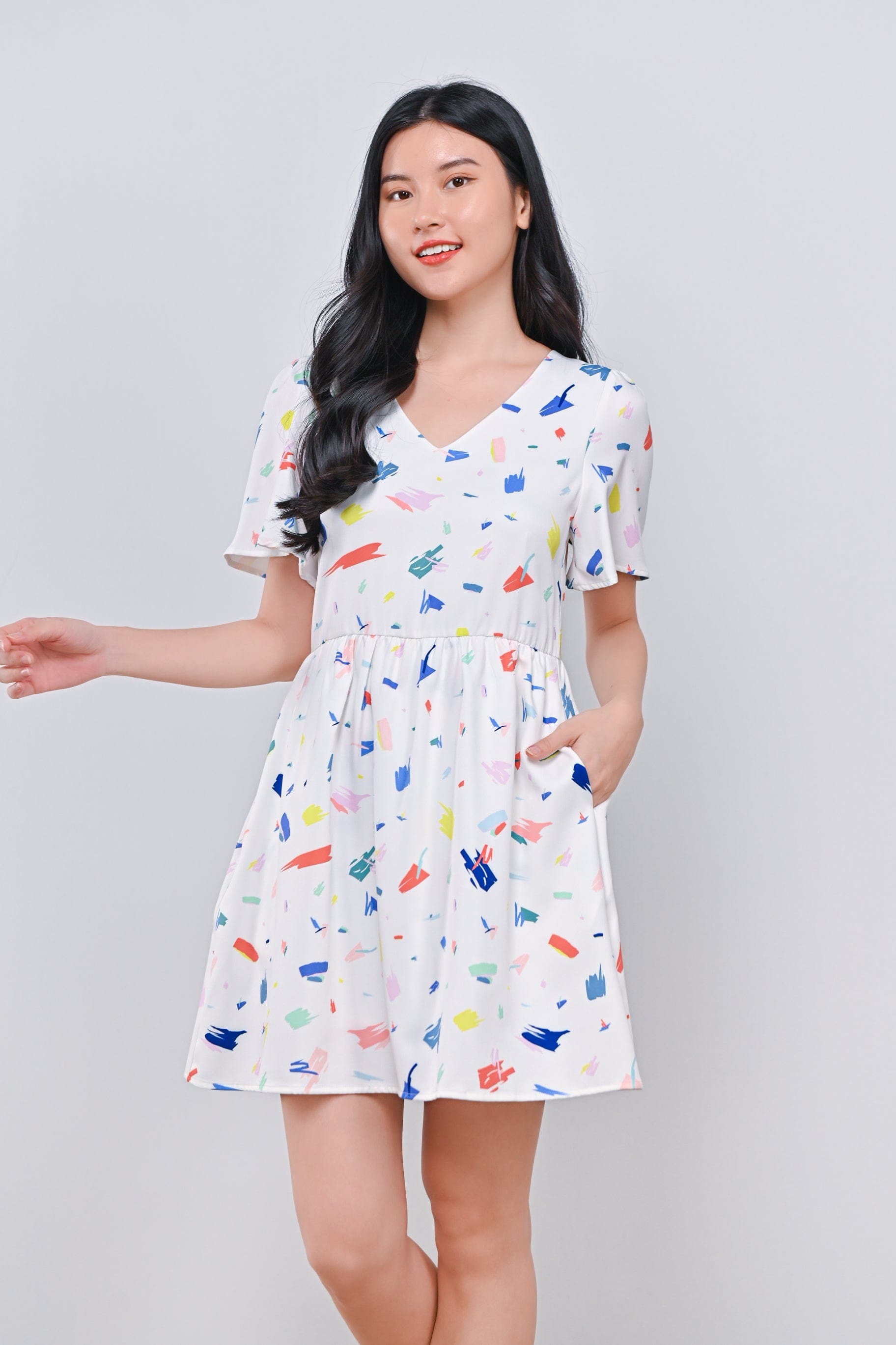 COLOUR JIGGLES OFF-WHITE DRESS-ROMPER