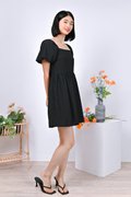 ESTRELLA TEXTURED DRESS-ROMPER IN BLACK