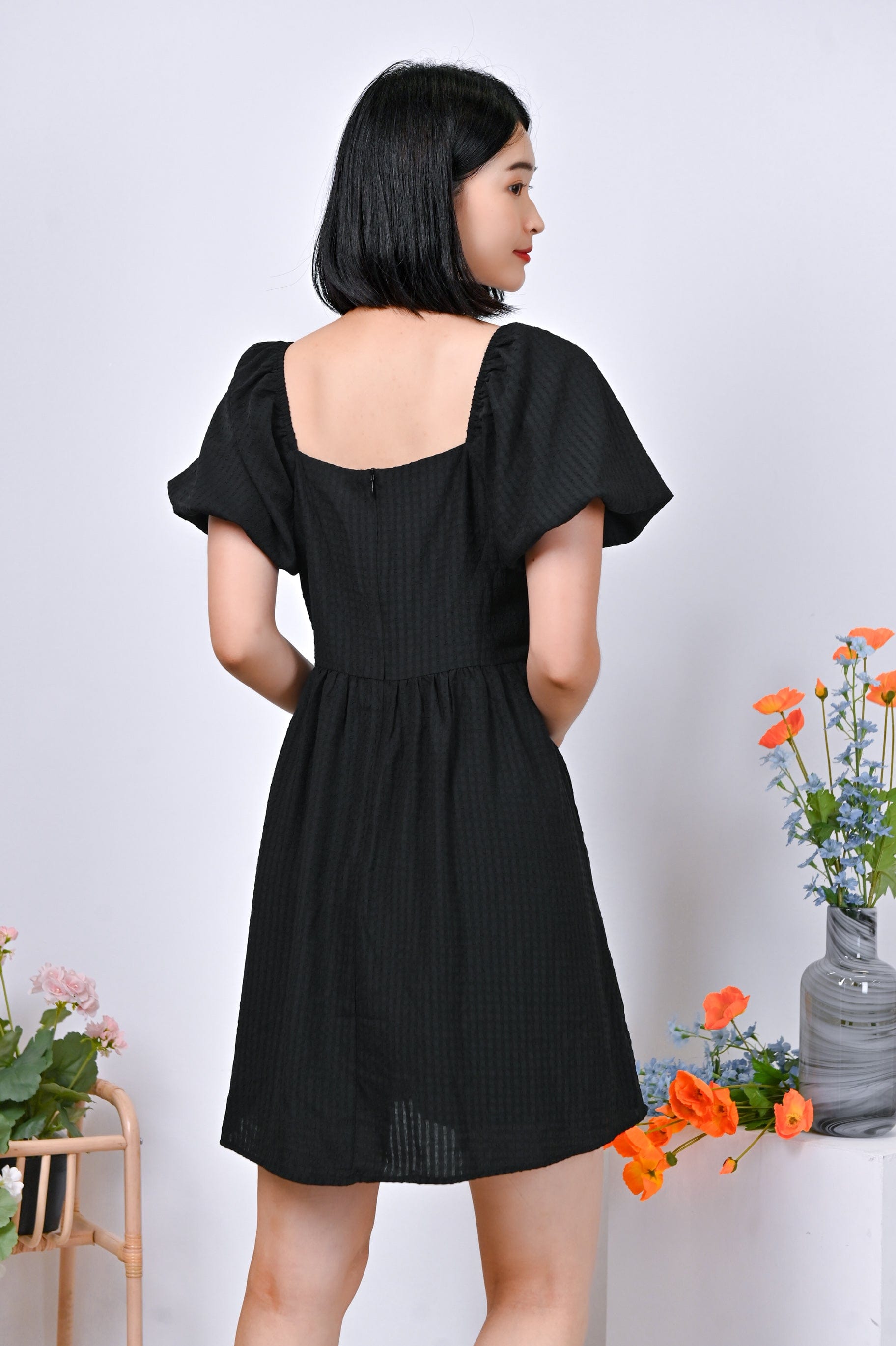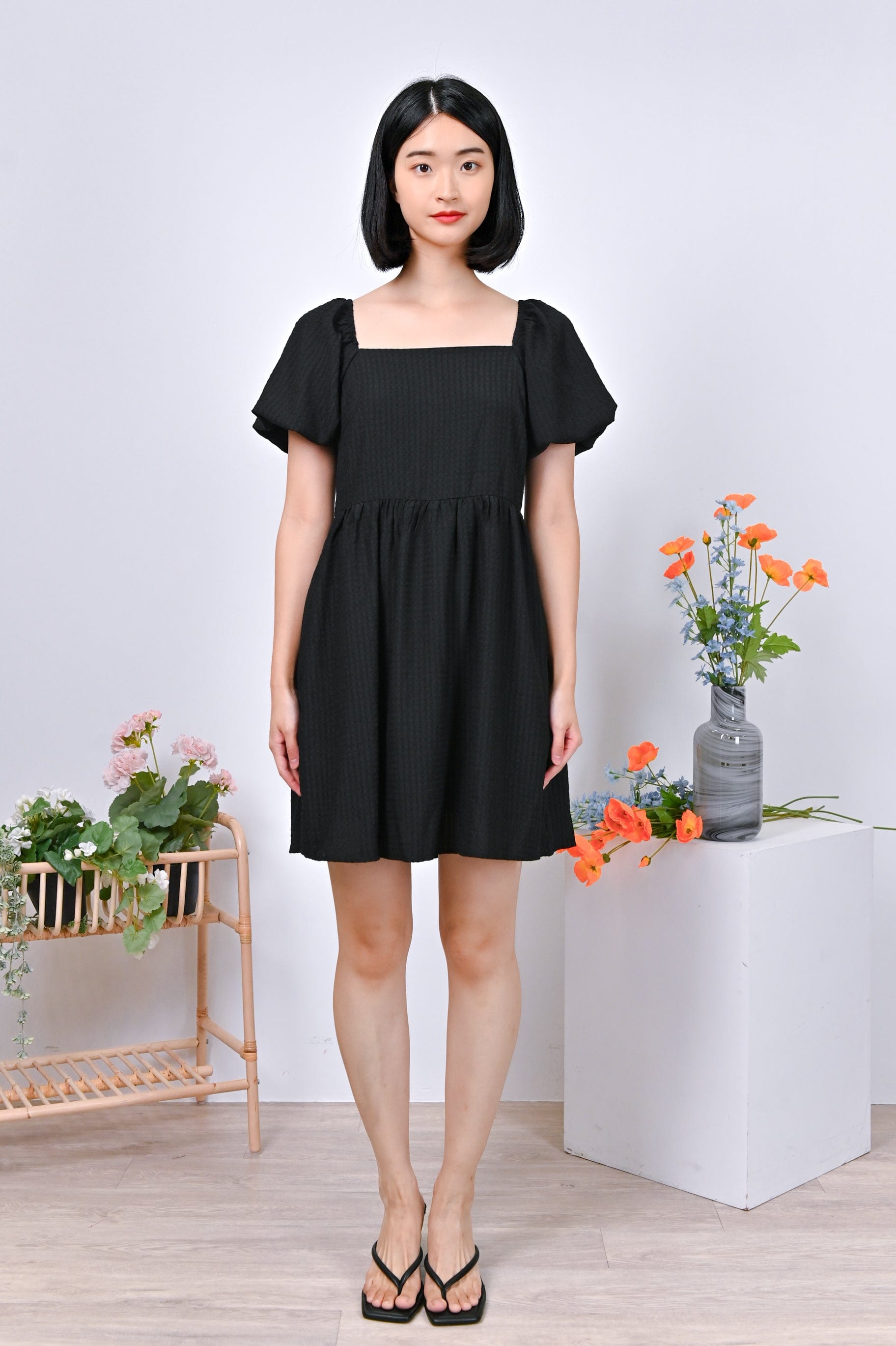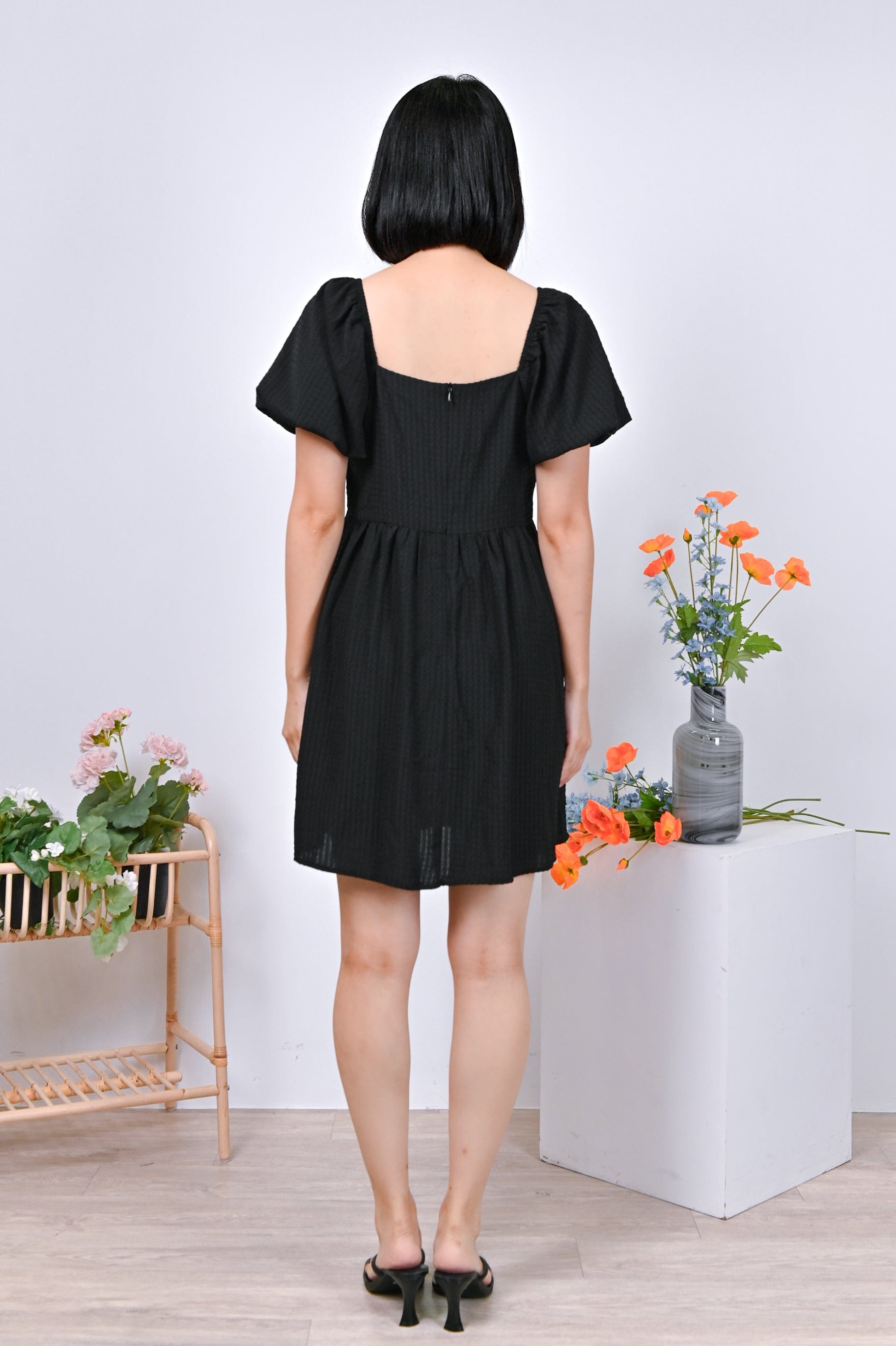 Actual stocks may varyPuff-sleeves on a dress-romper cut in the prettiest textured fabric? Sold to the lady with the most exquisite taste! Get your hands on our Estrella Dress-Romper before its gone! 🤪