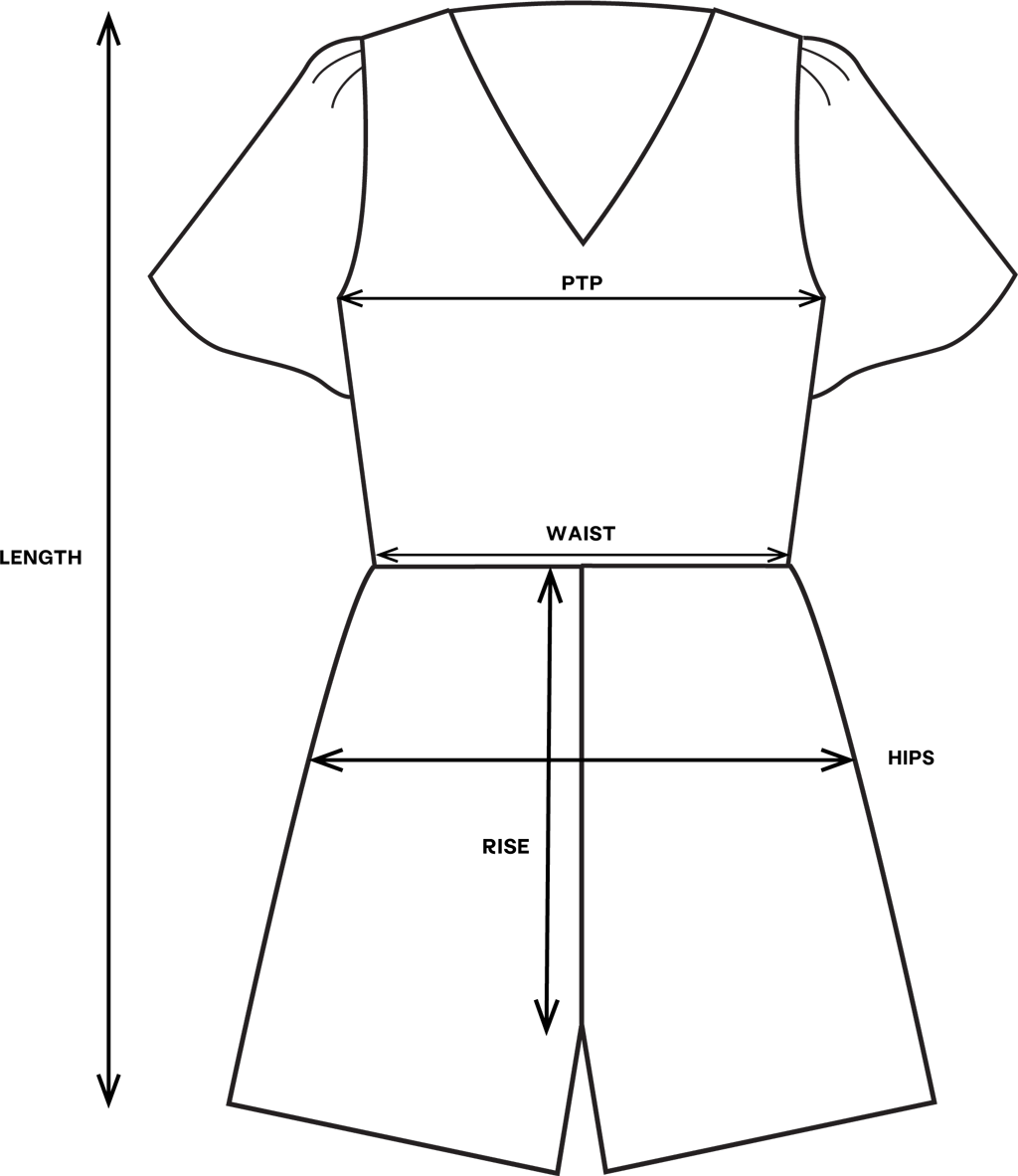 | Size | PTP | Waist | Hips | Length | Rise |