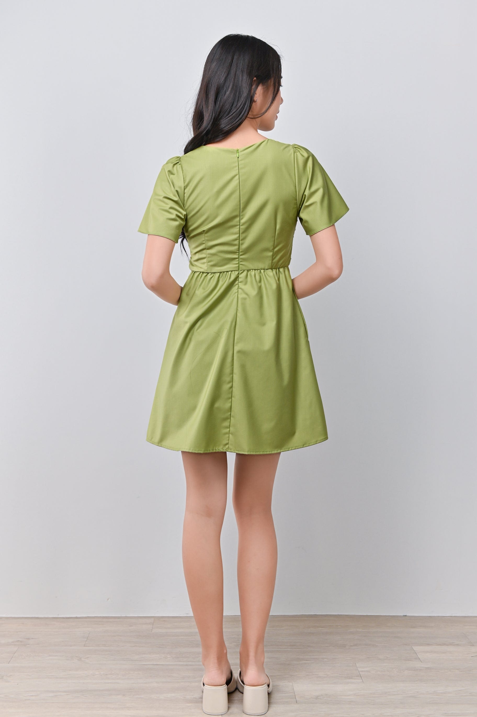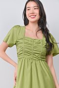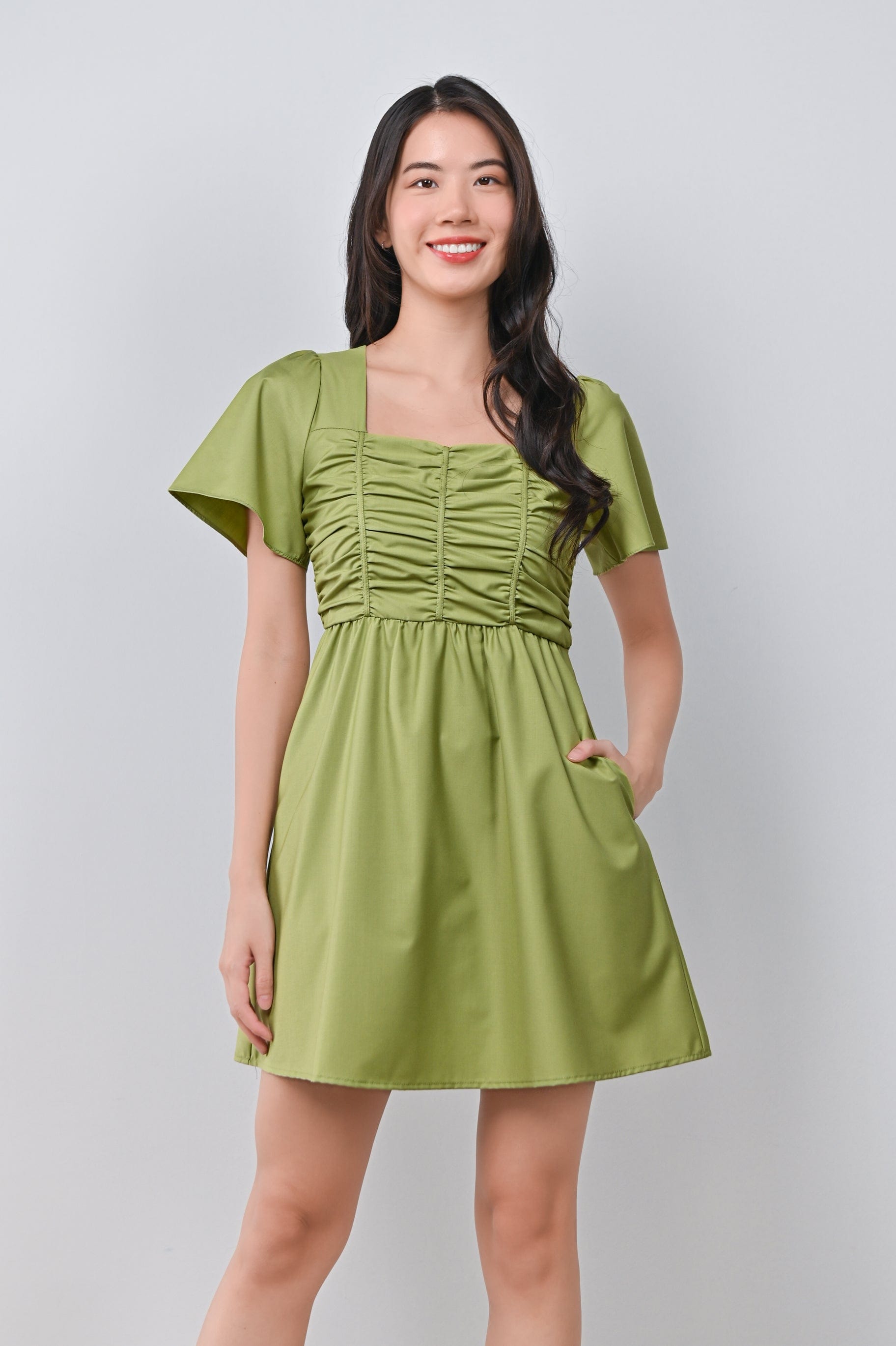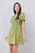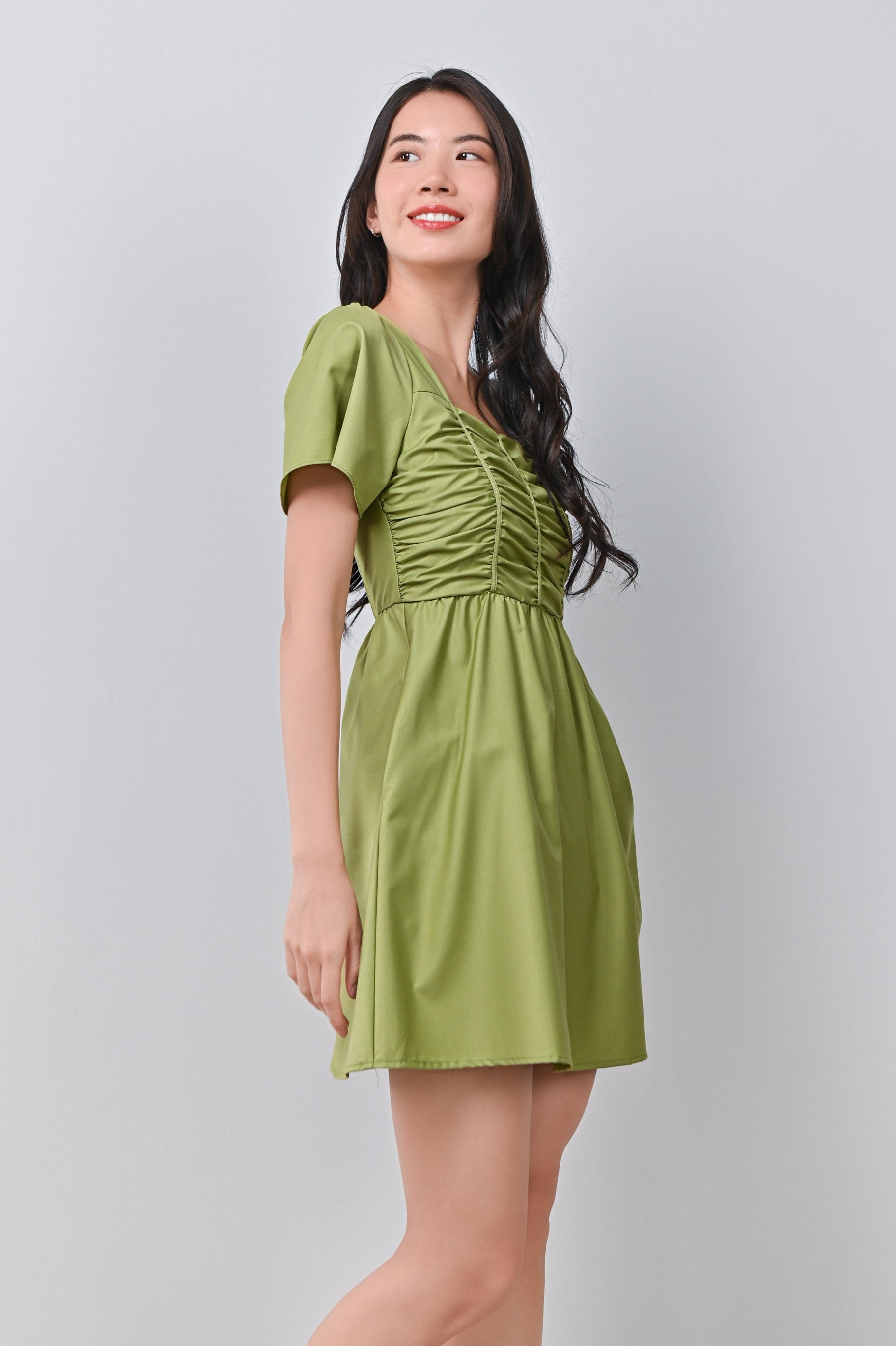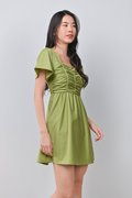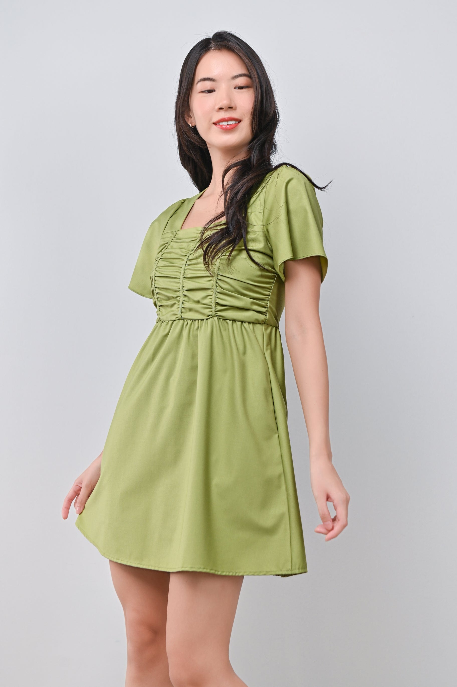 JISOO RUCHED DRESS-ROMPER IN GREEN