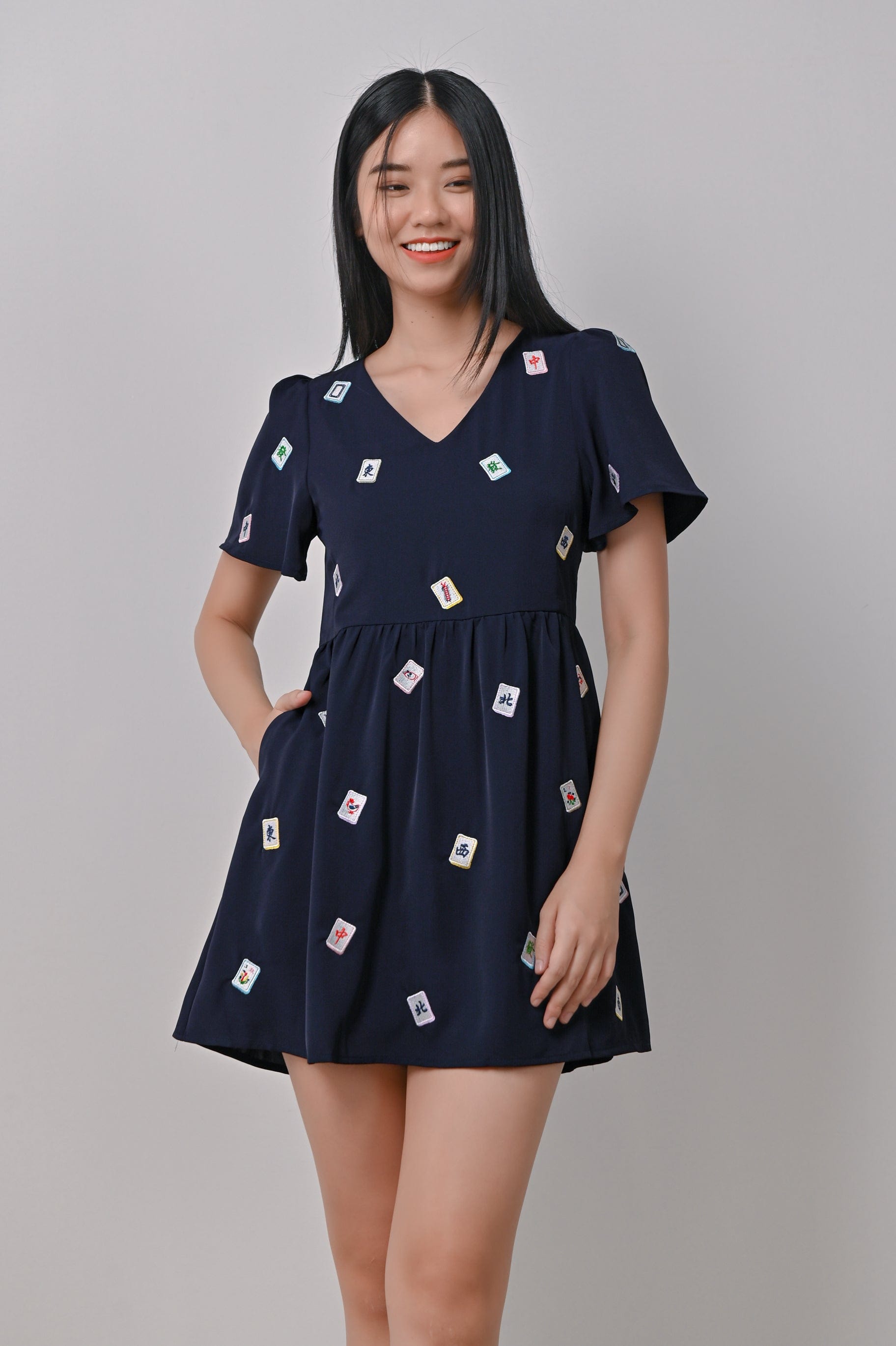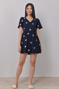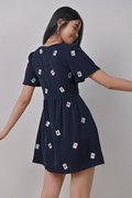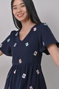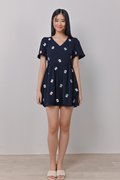 MAHJONG EMB. V-NECK DRESS-ROMPER IN NAVY