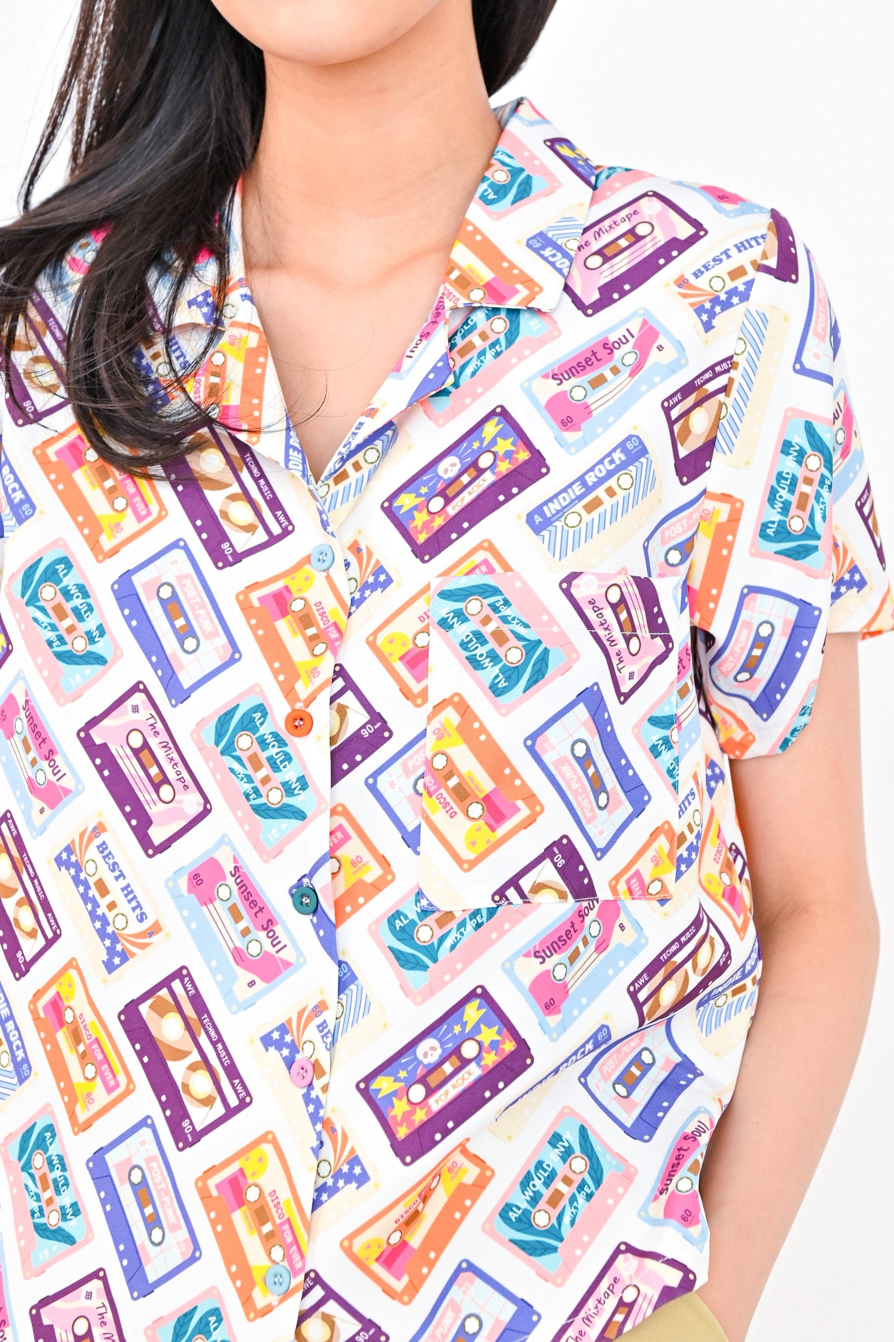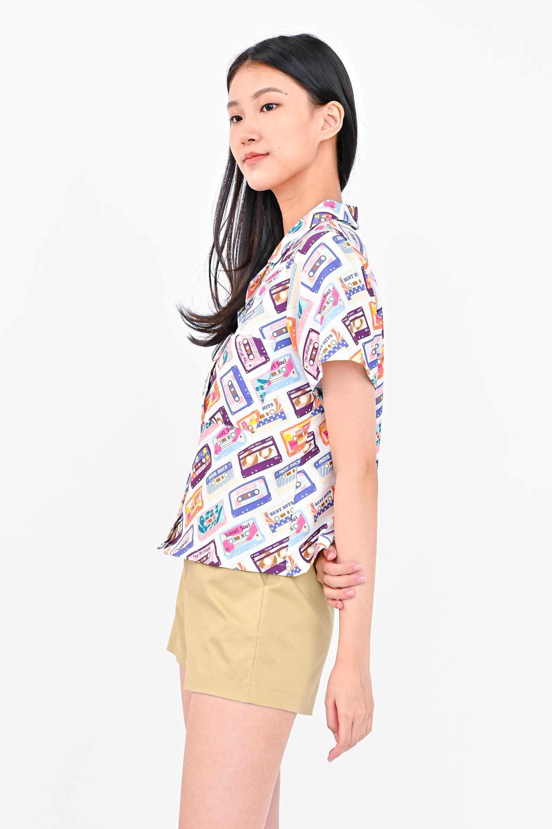 CASSETTE LADIES' CAMP-COLLAR SHIRT