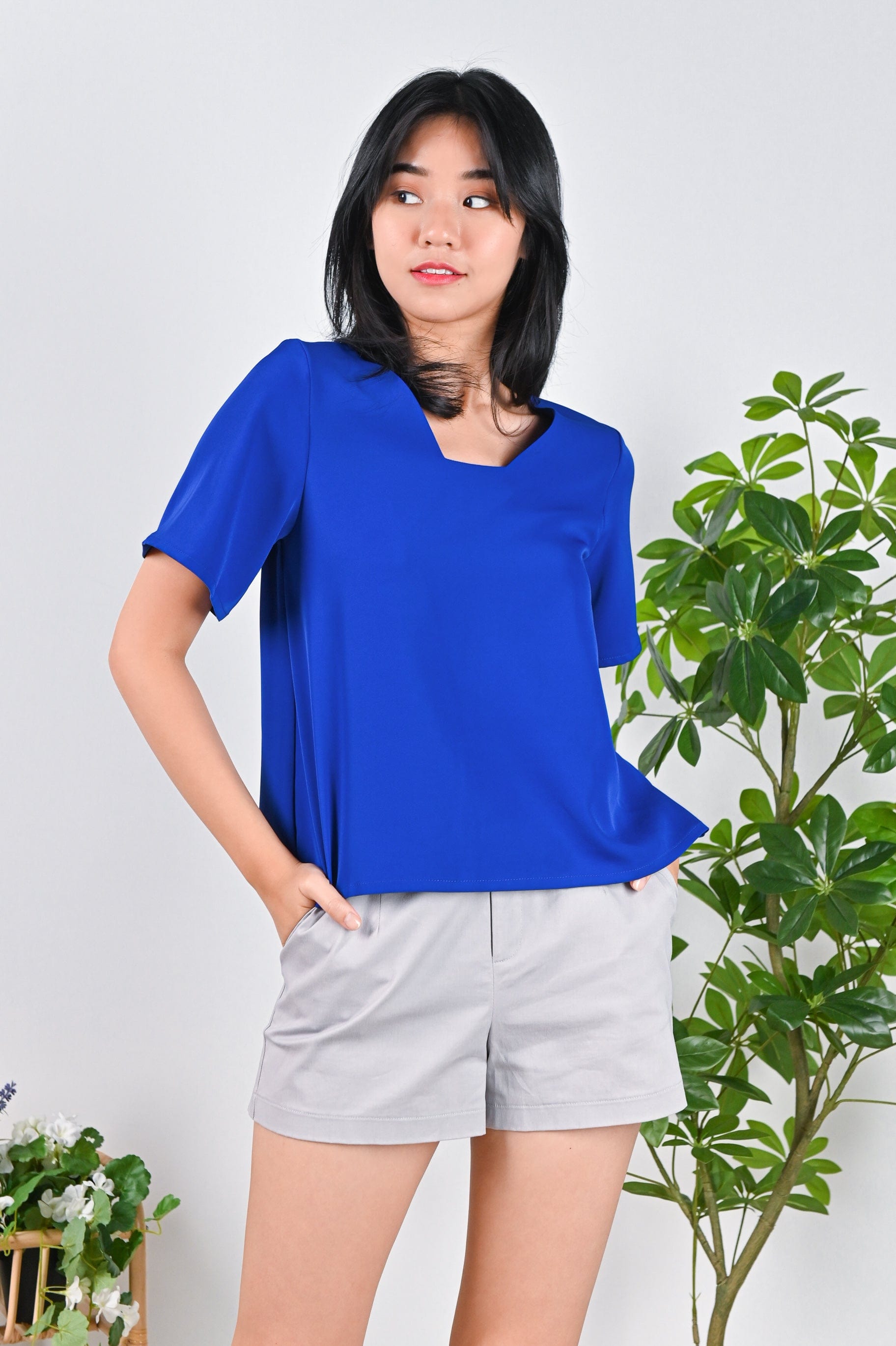 Actual stocks may varyMeet your new go-to boxy basic: our Esteri Sleeved Two-Way Top! Wear it with the classic round neckline in front for a clean polished look, or flip it around for a stylish ‚Äúvalley" neckline option. 🌟💃 Embrace the endless possibilities of mixing and matching and elevate your wardrobe with this must-have!