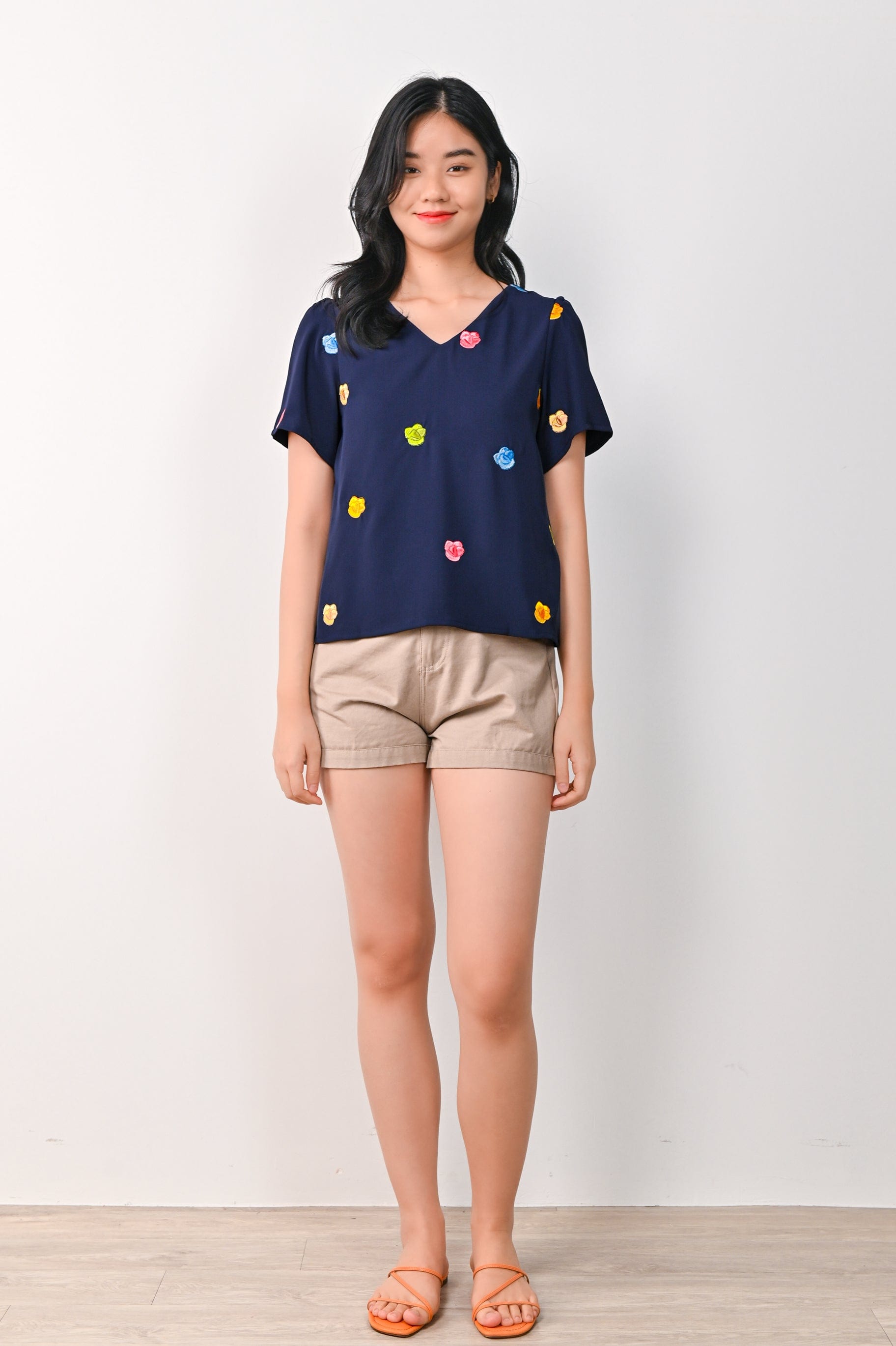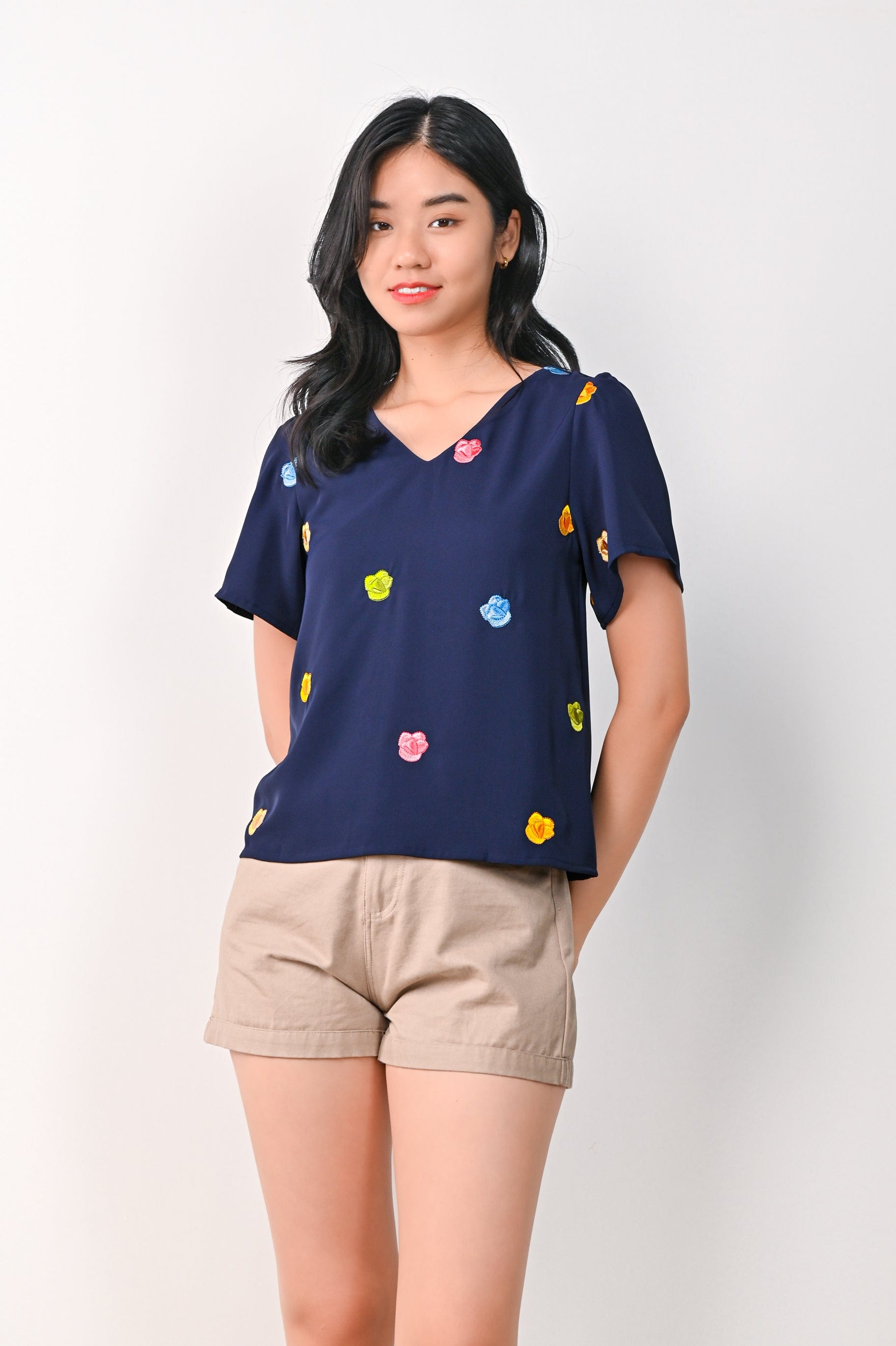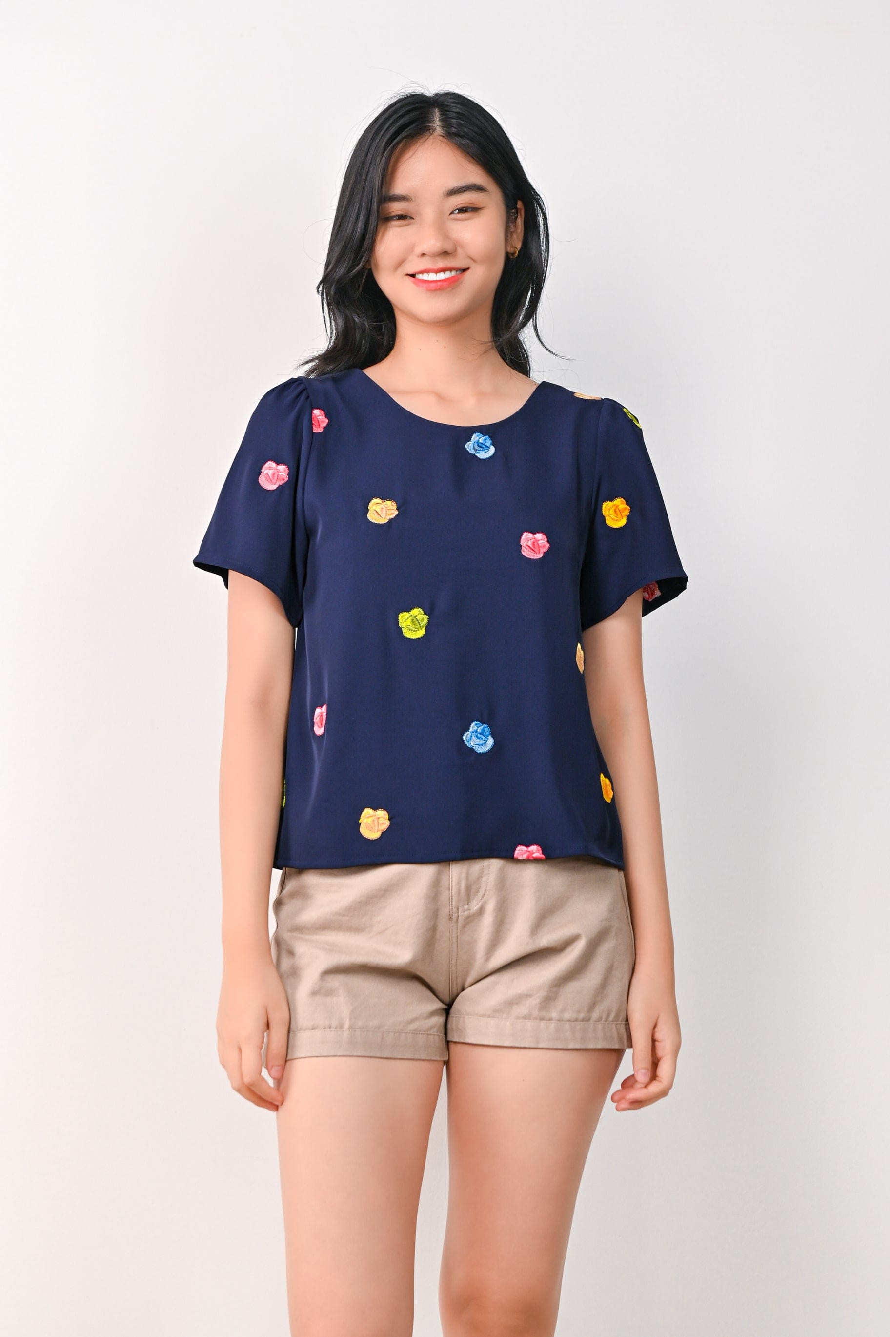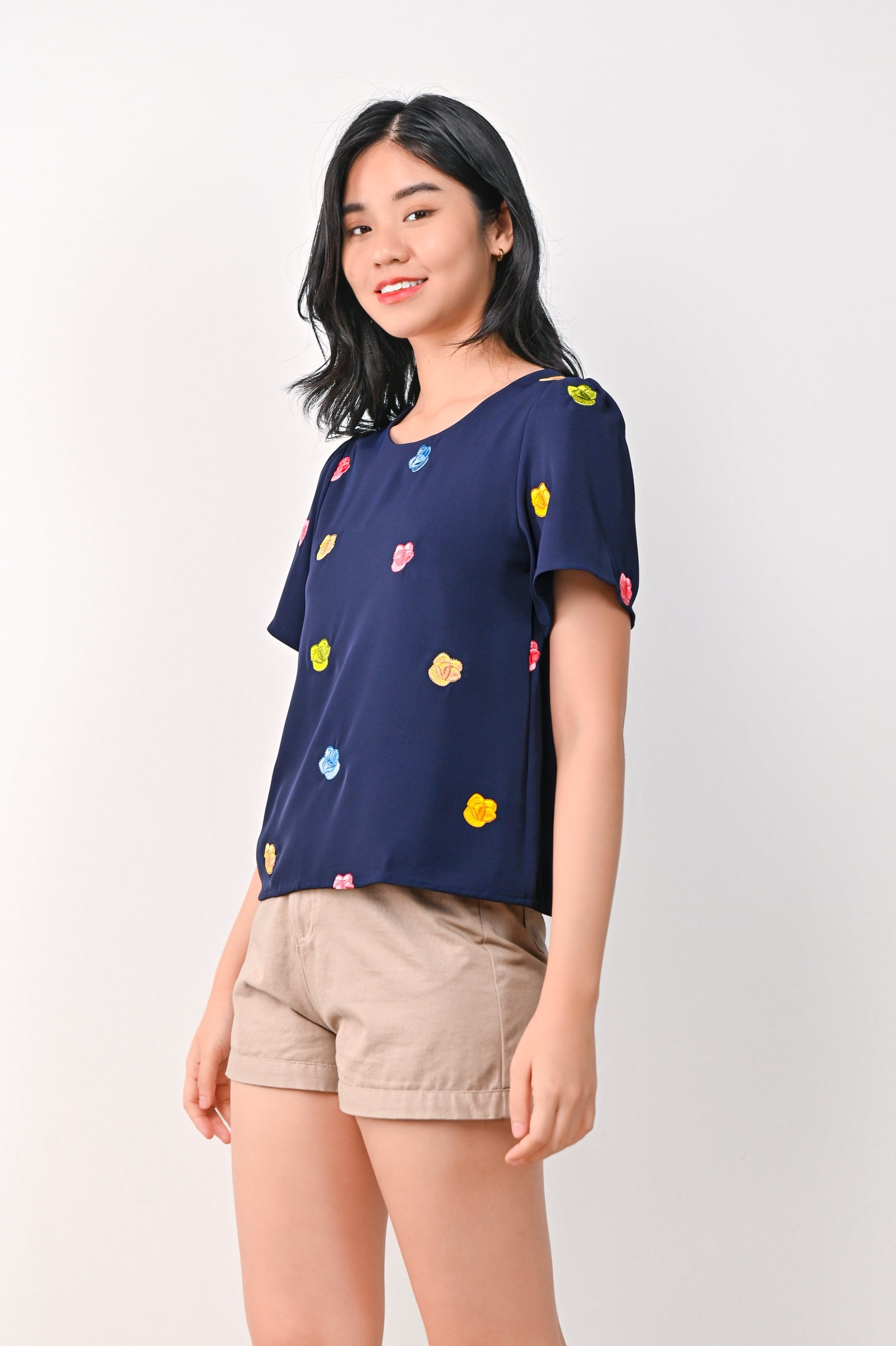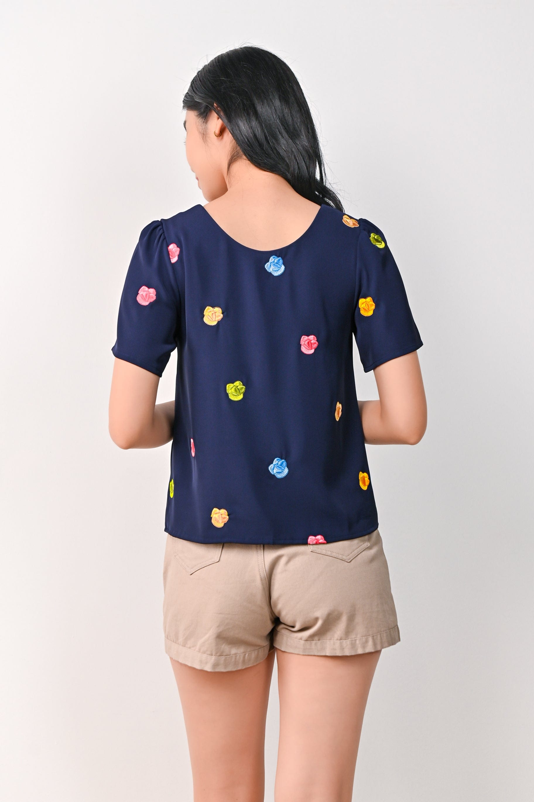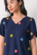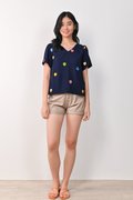 HUAT KUEH EMB. SLEEVED TOP IN NAVY