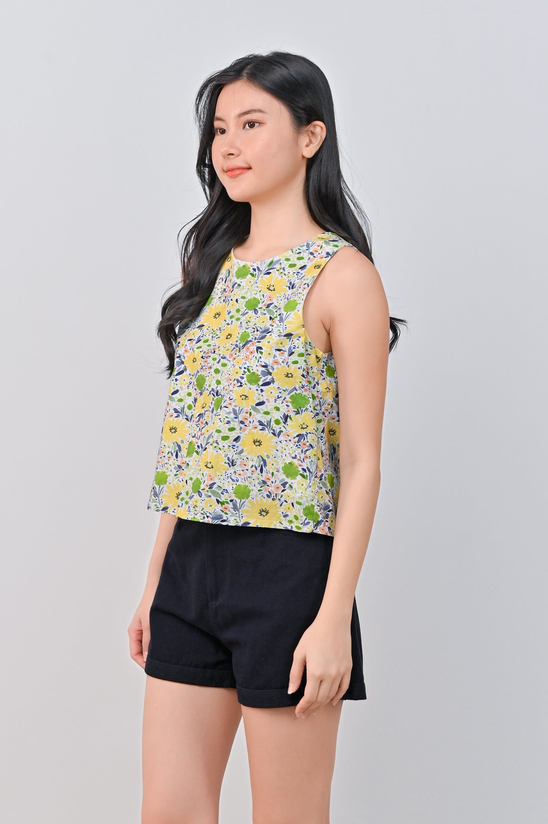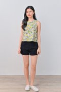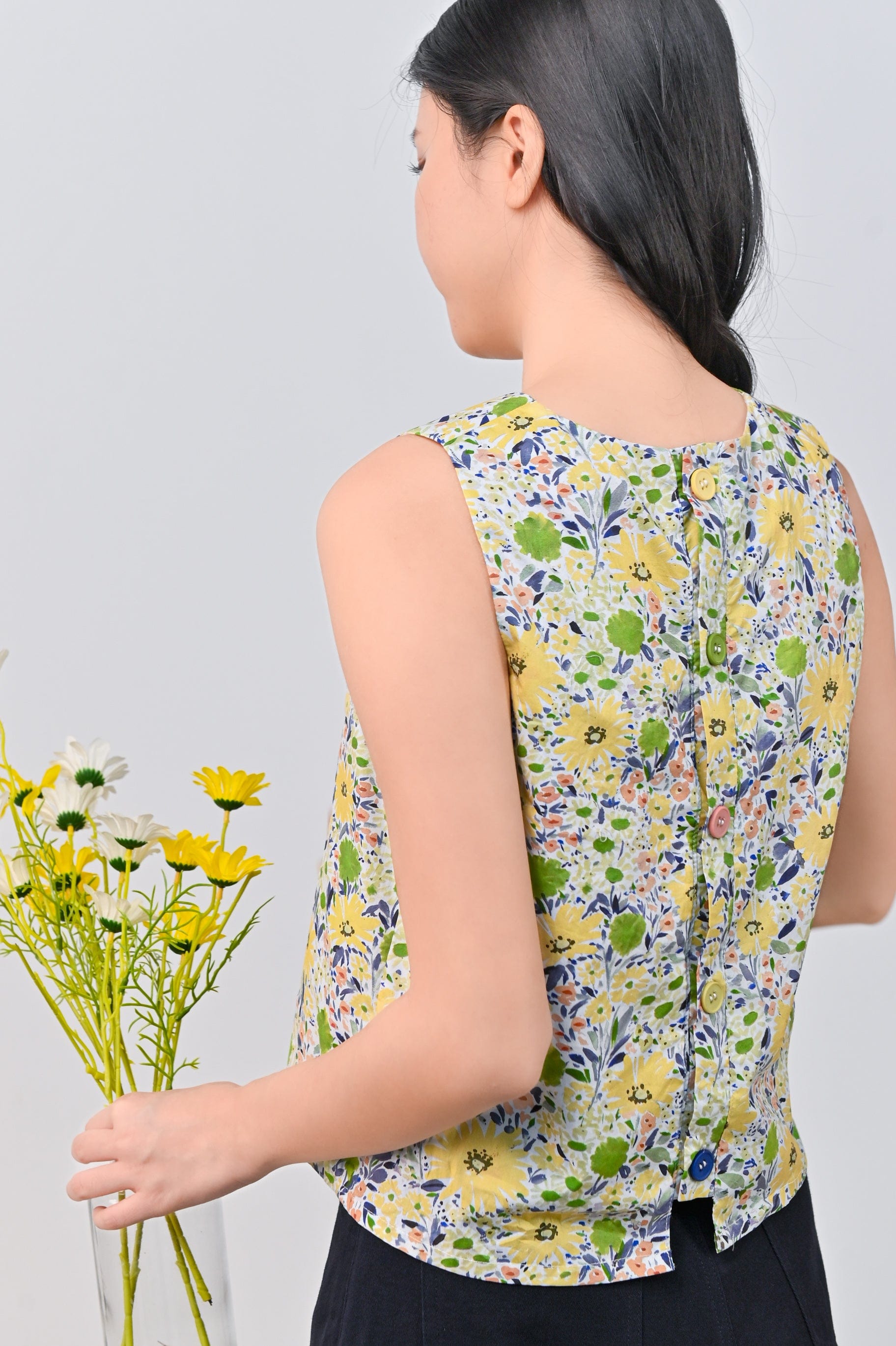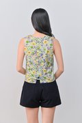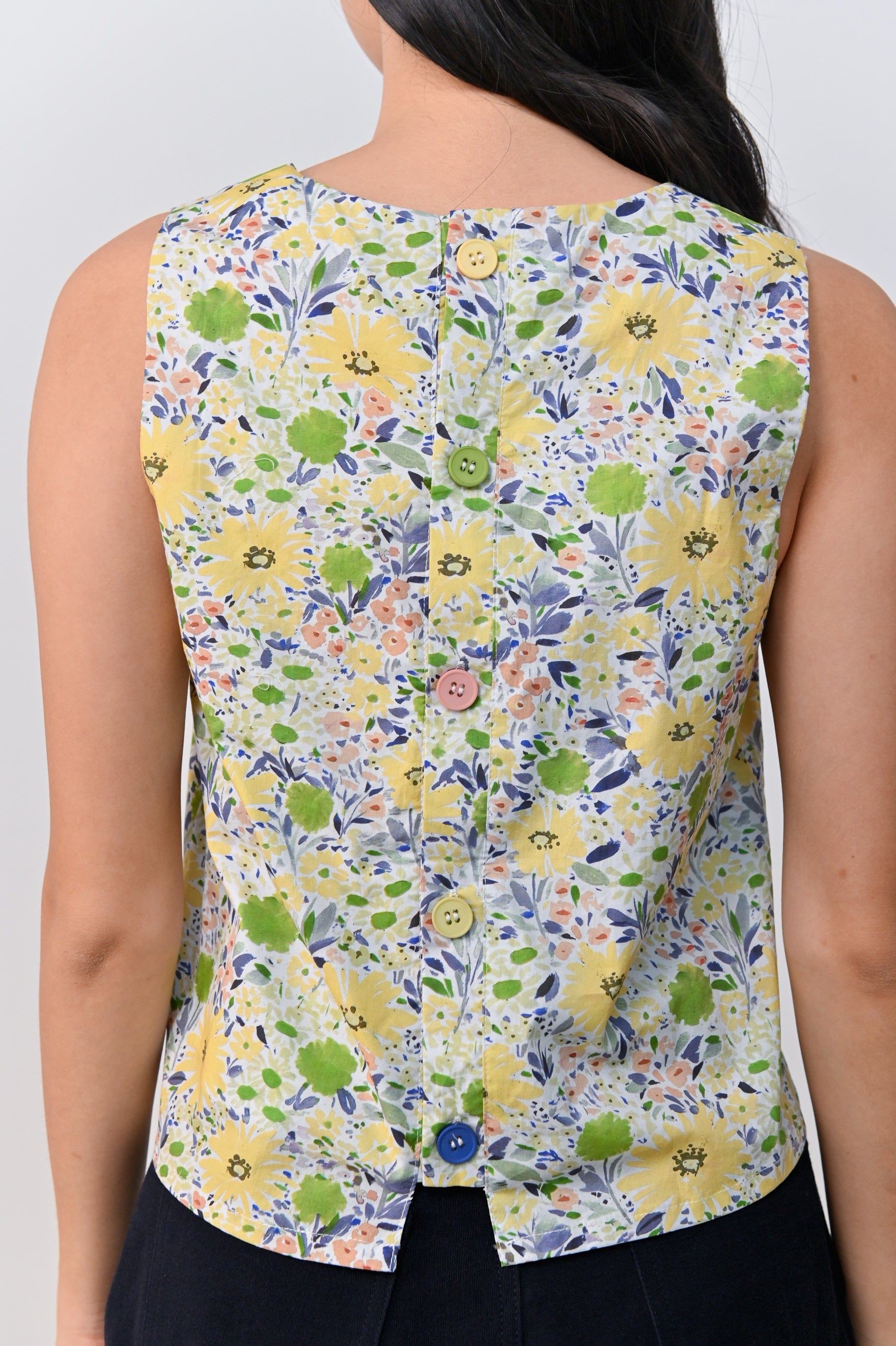 JUNI FLORAL BUTTON-BACK TOP IN LIME