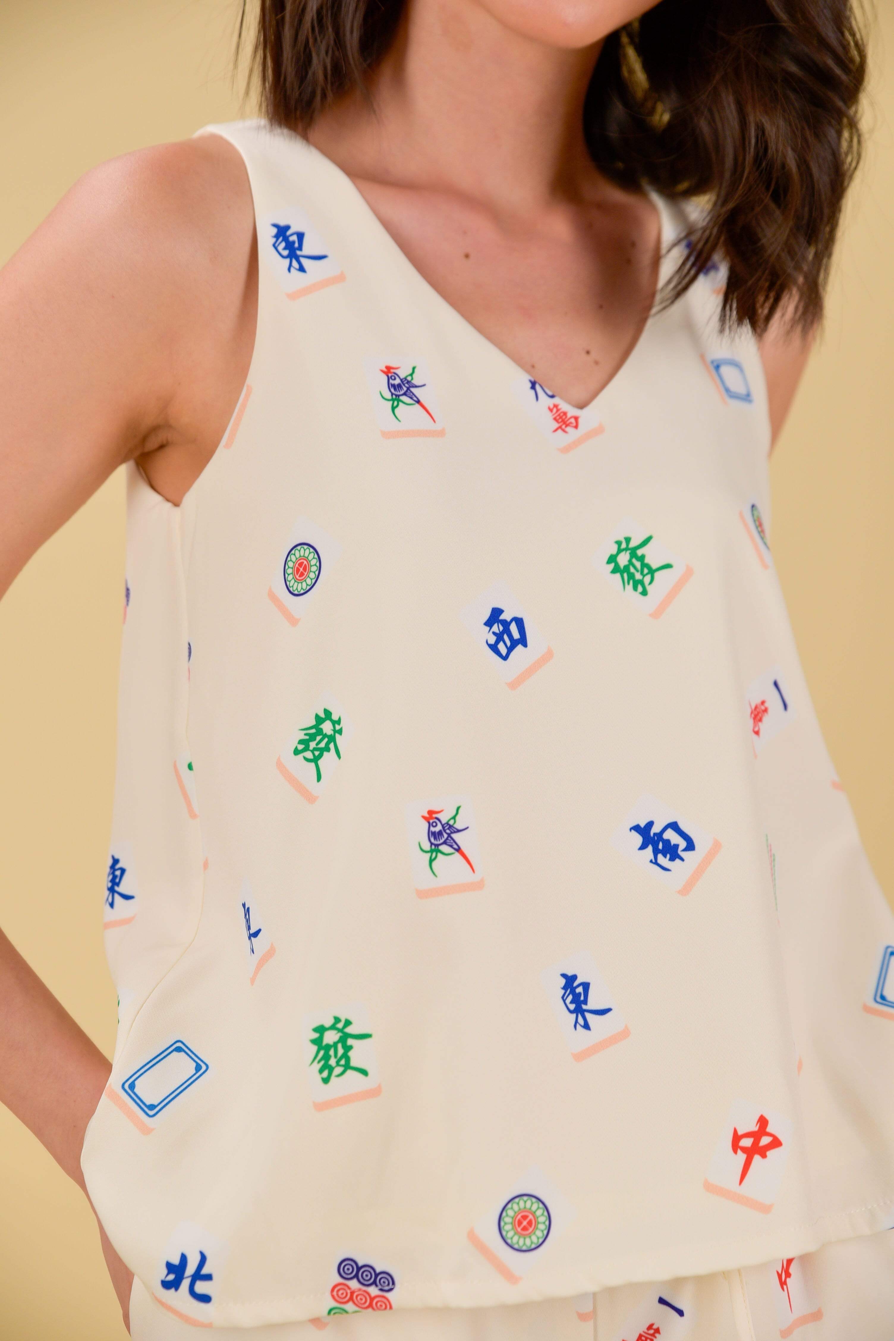 Actual stocks may varyDress up with your family and friends in our fun and happy mahjong print! This top is made in our tested and loved tank top cut and can be worn two ways, either with a v-neckline or a round neckline. Placement of prints differs from piece to piece. We recommend opting for your usual size.