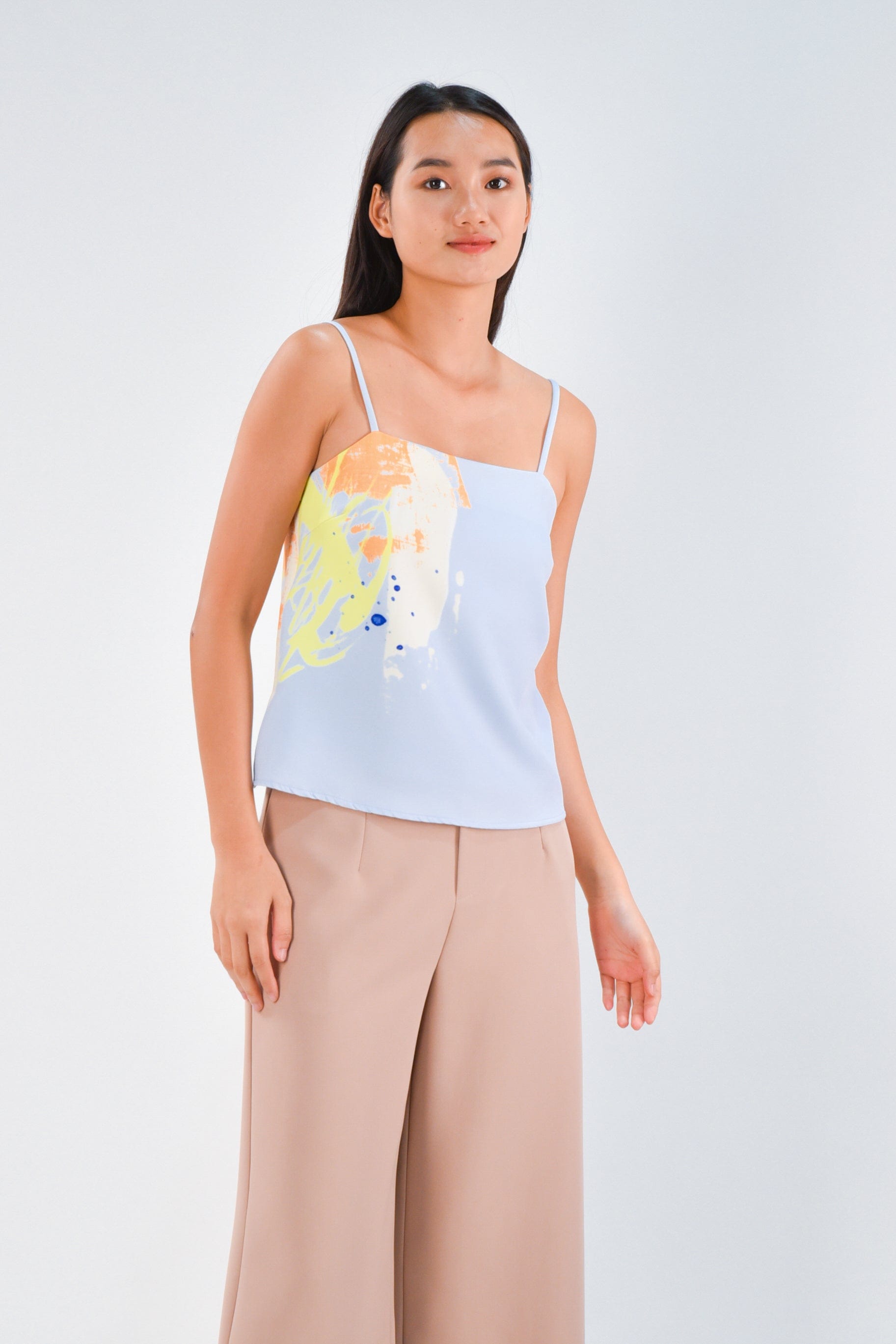 PAINT SPAG TOP IN LIGHT BLUE