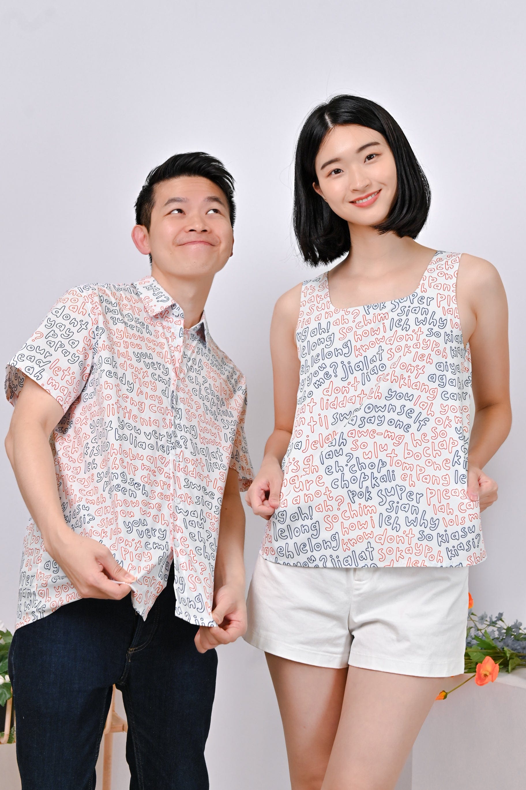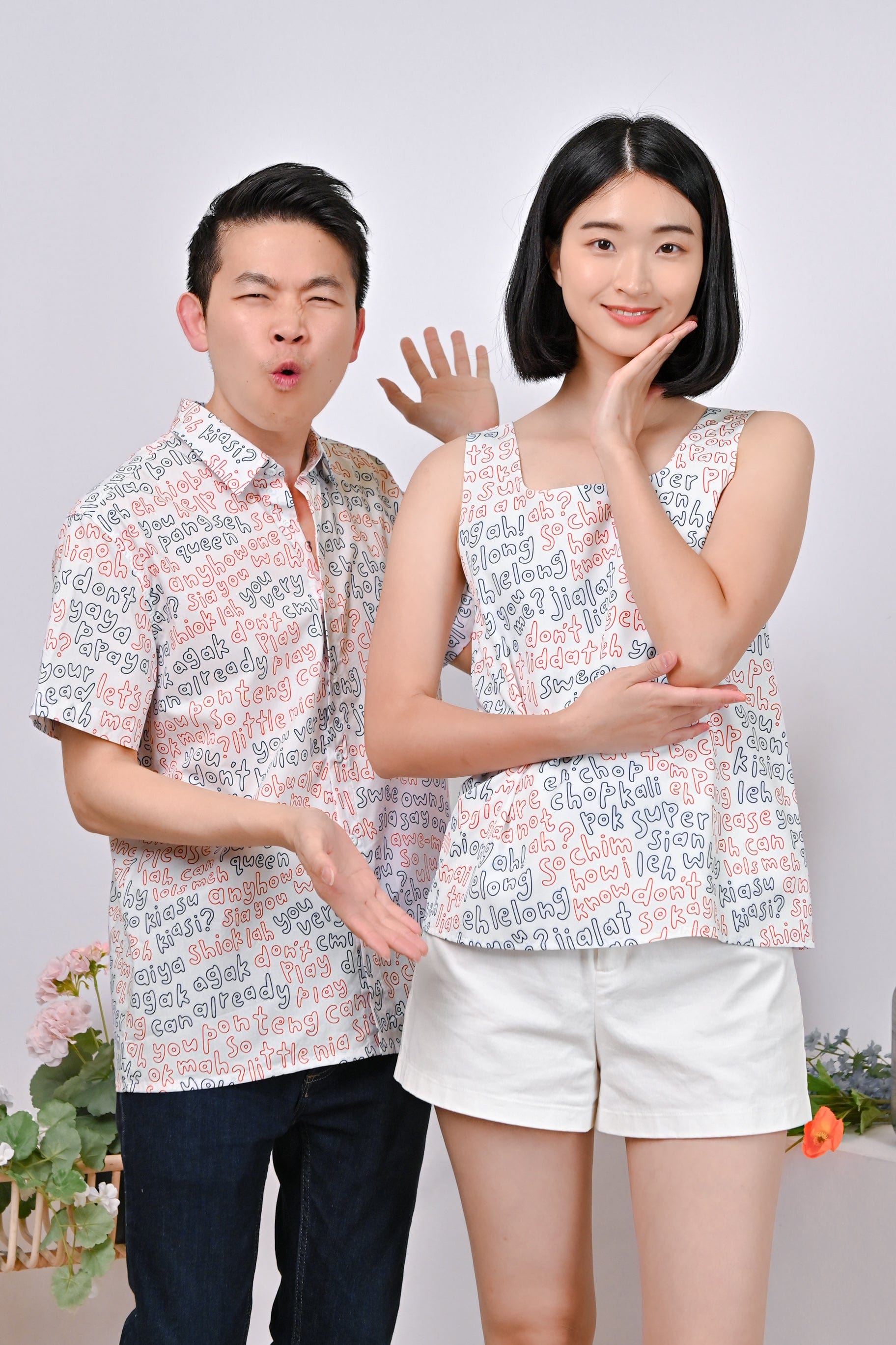 Actual stocks may varyMai Tu Liao! 🙌 Get your hands on our Singlish print pieces, featuring Singlish phrases that never get old! Add some laughter to your wardrobe and your life! ðŸ¤