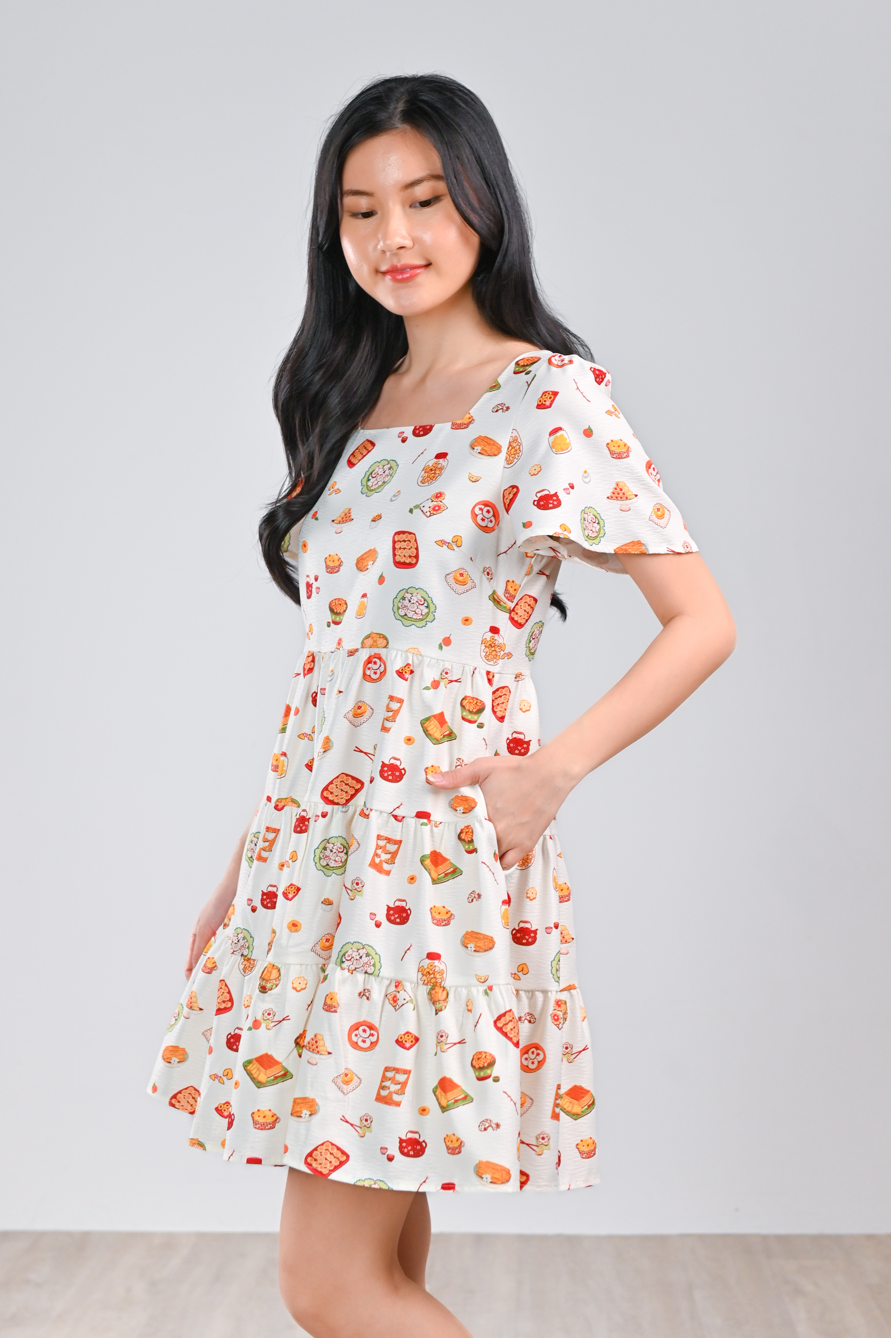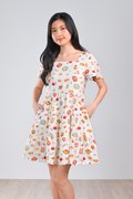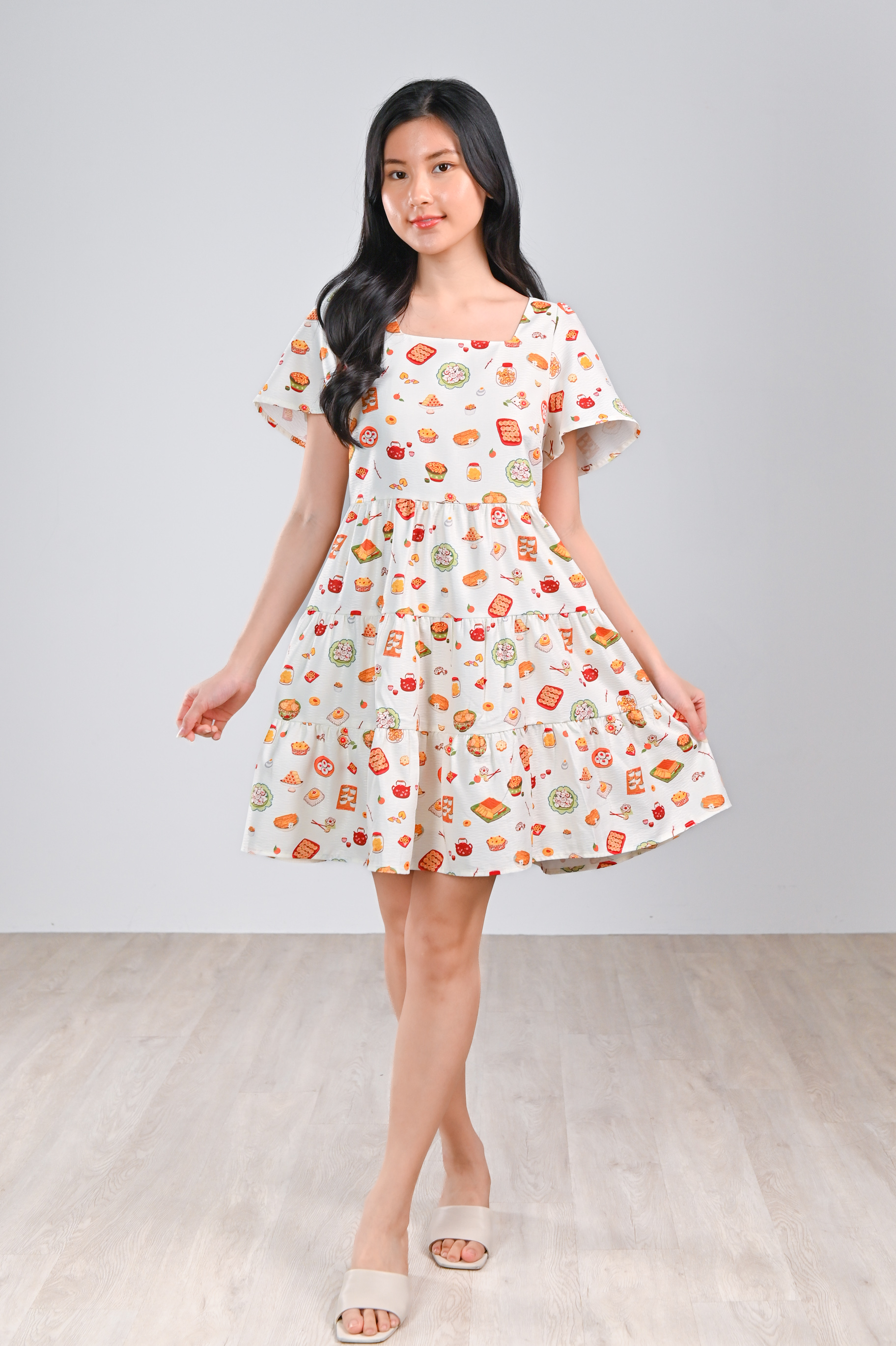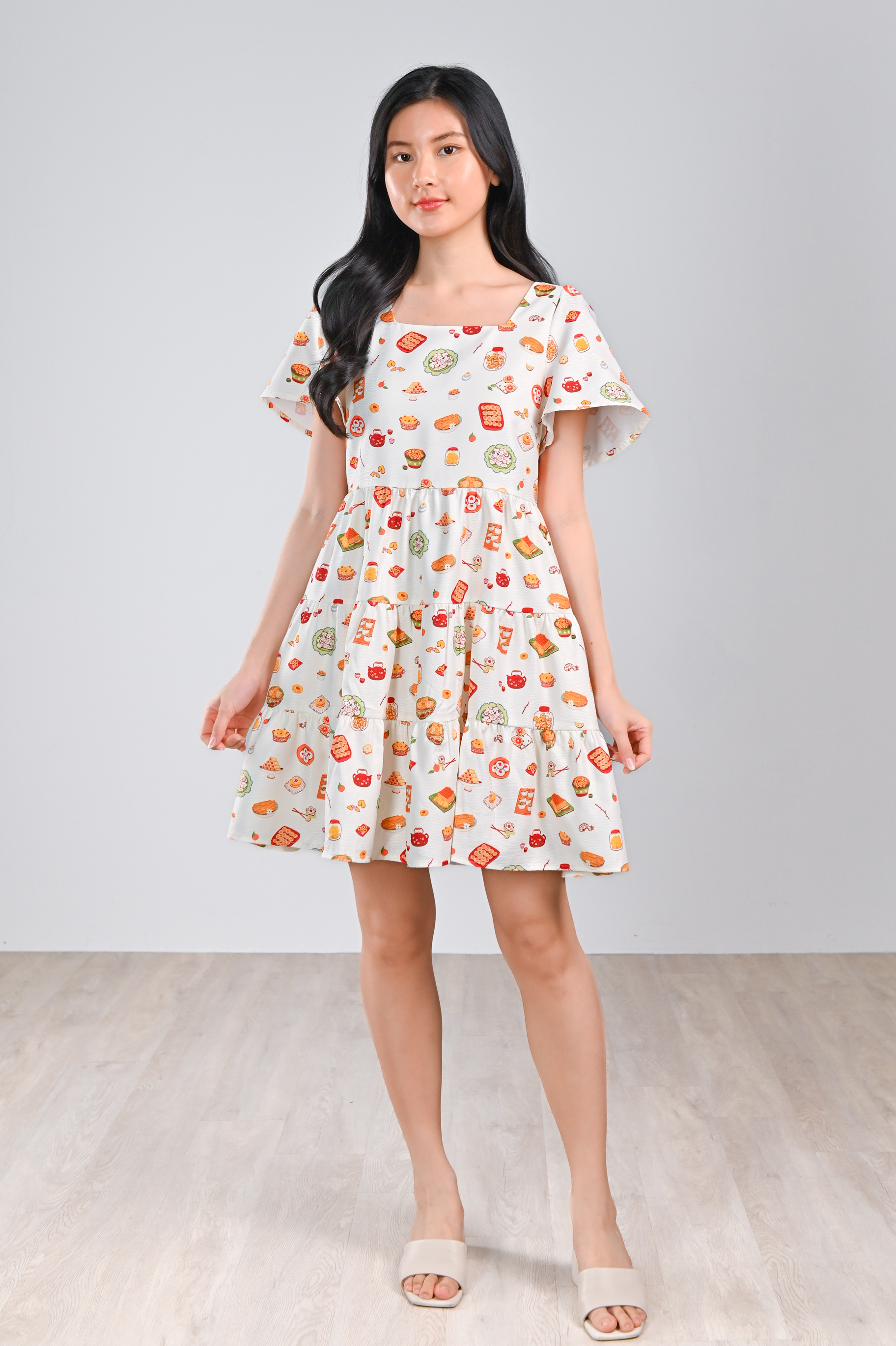 CNY SNACKS CREAM SQUARE-NECK BABYDOLL DRESS