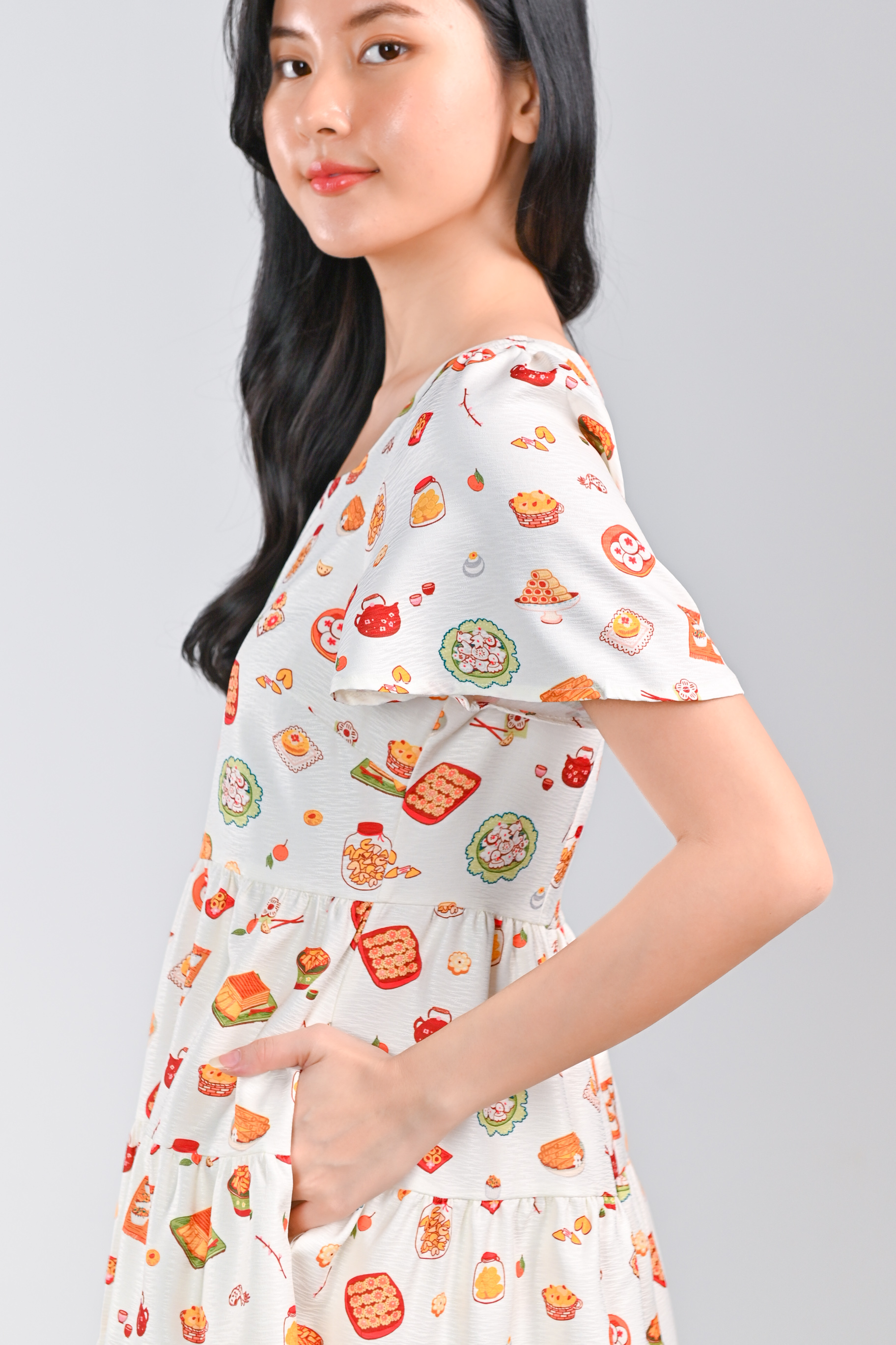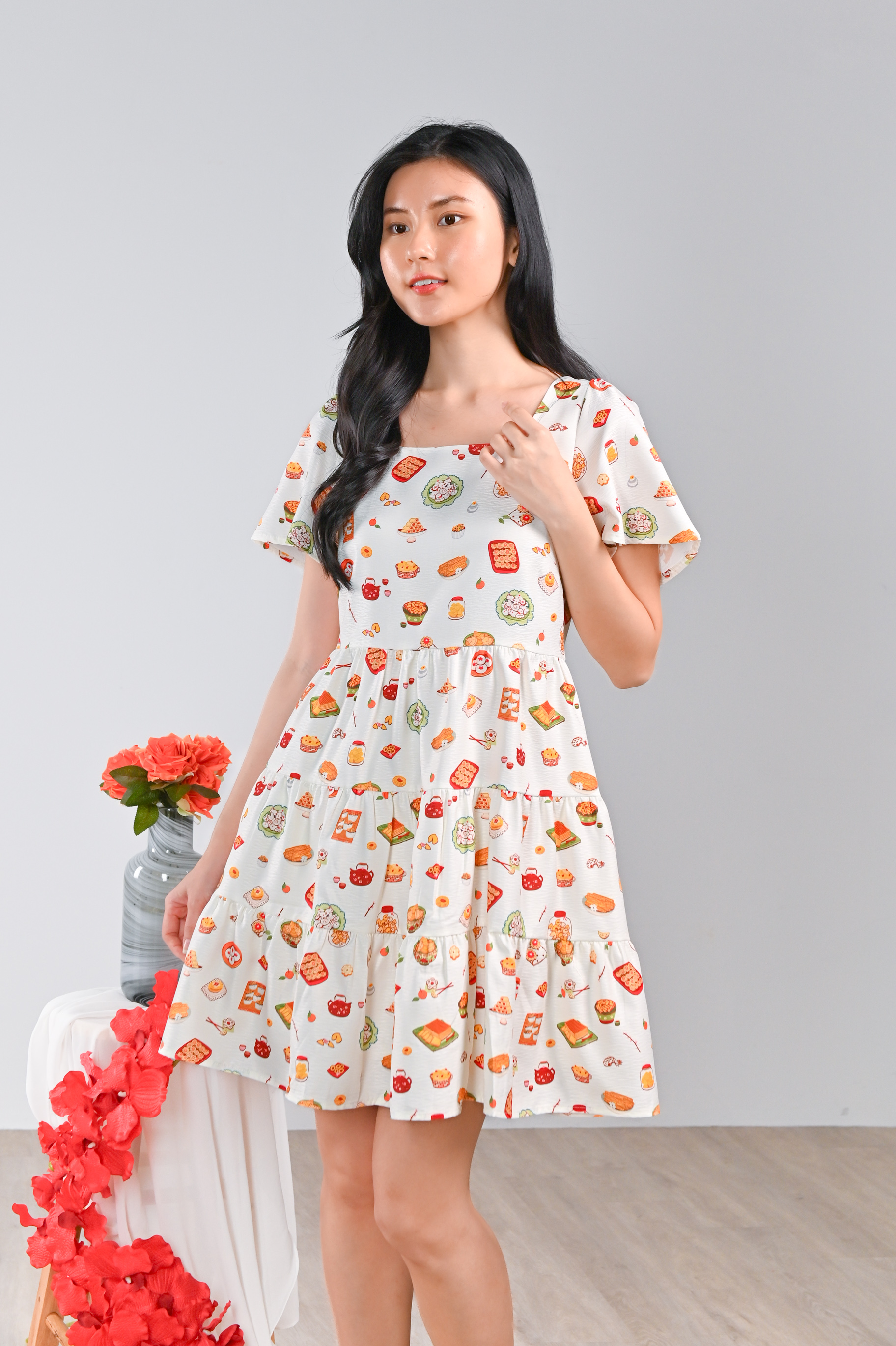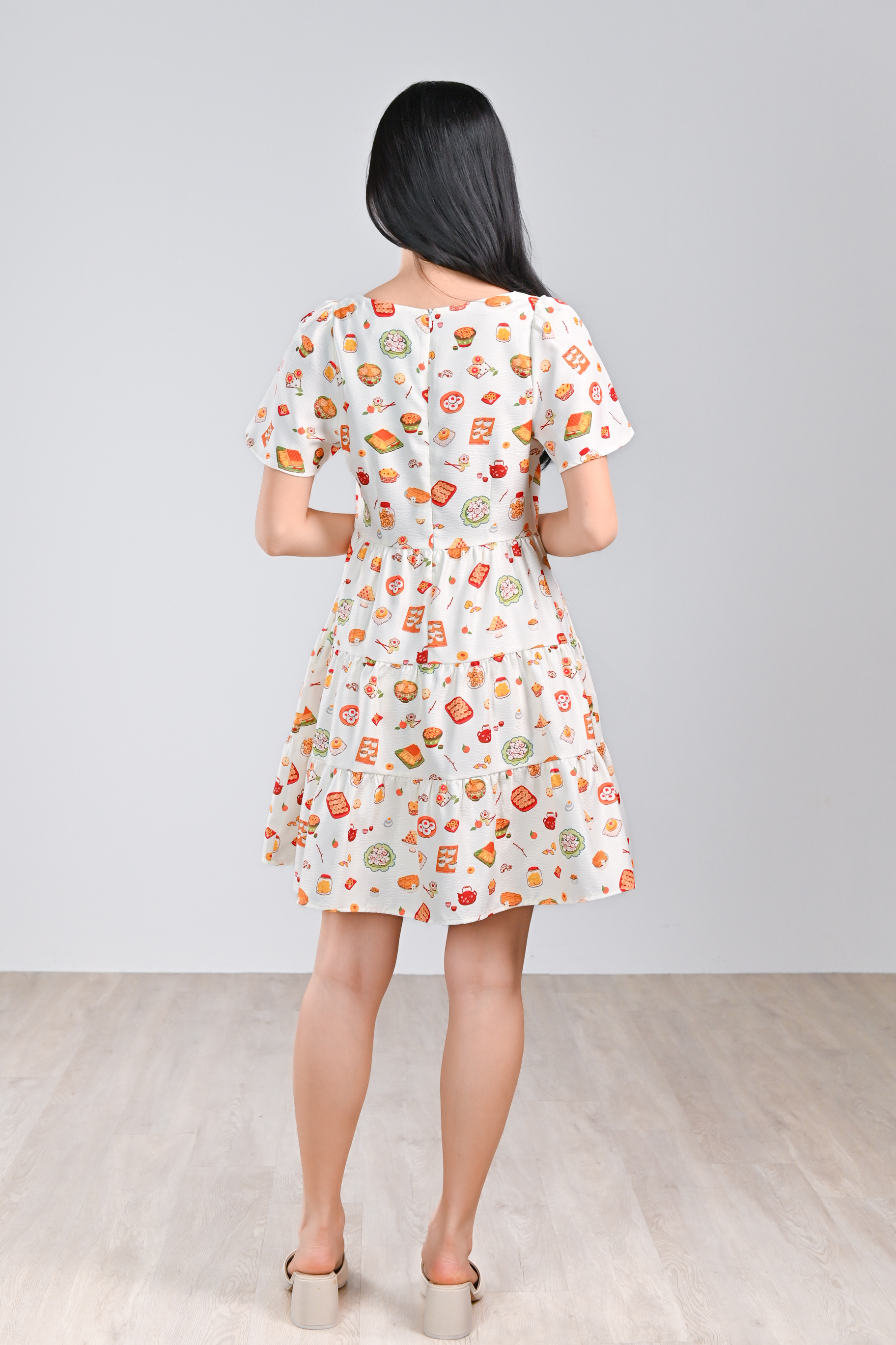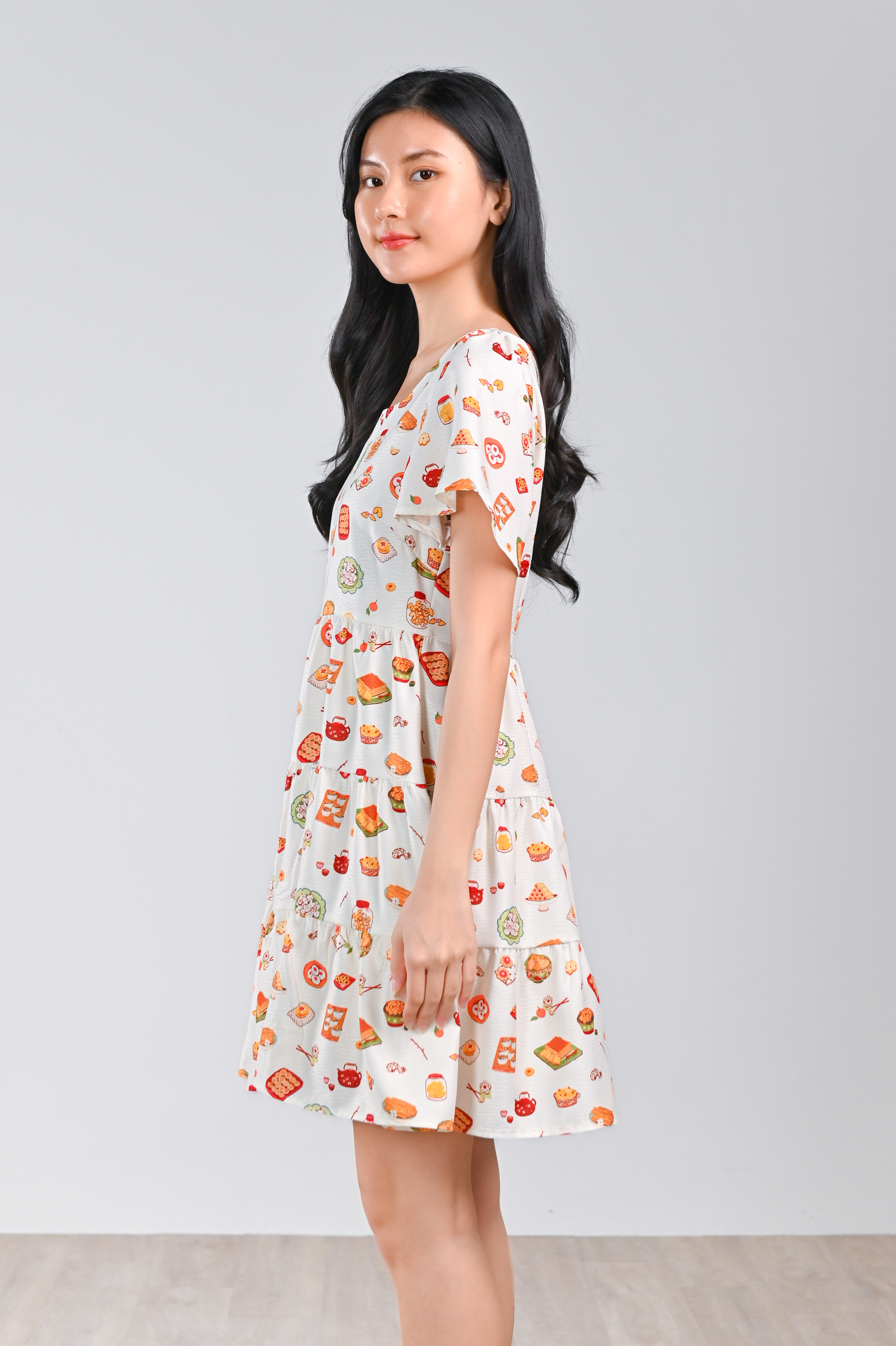 CNY SNACKS CREAM SQUARE-NECK BABYDOLL DRESS