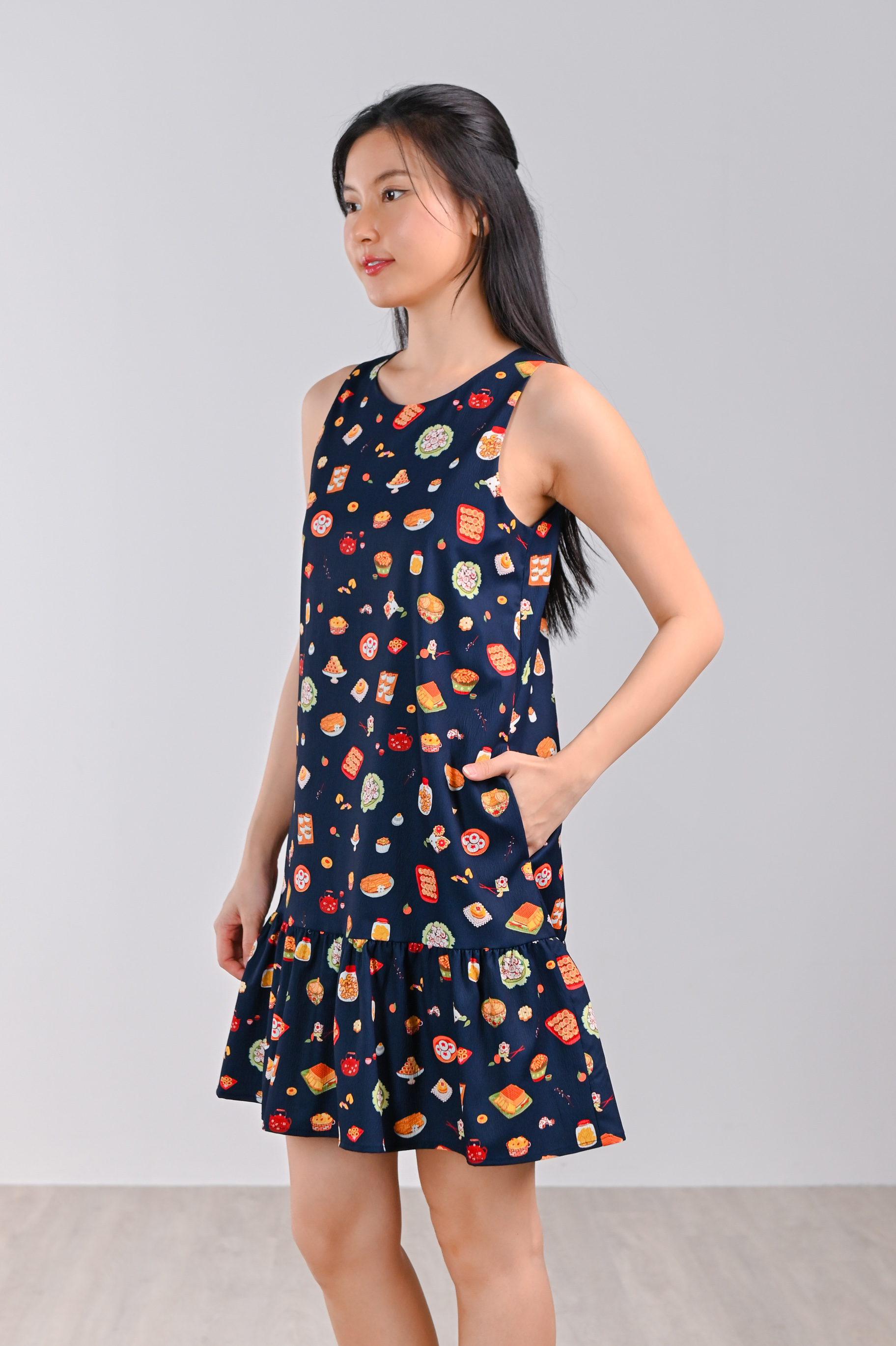 CNY SNACKS NAVY DROPWAIST DRESS