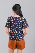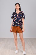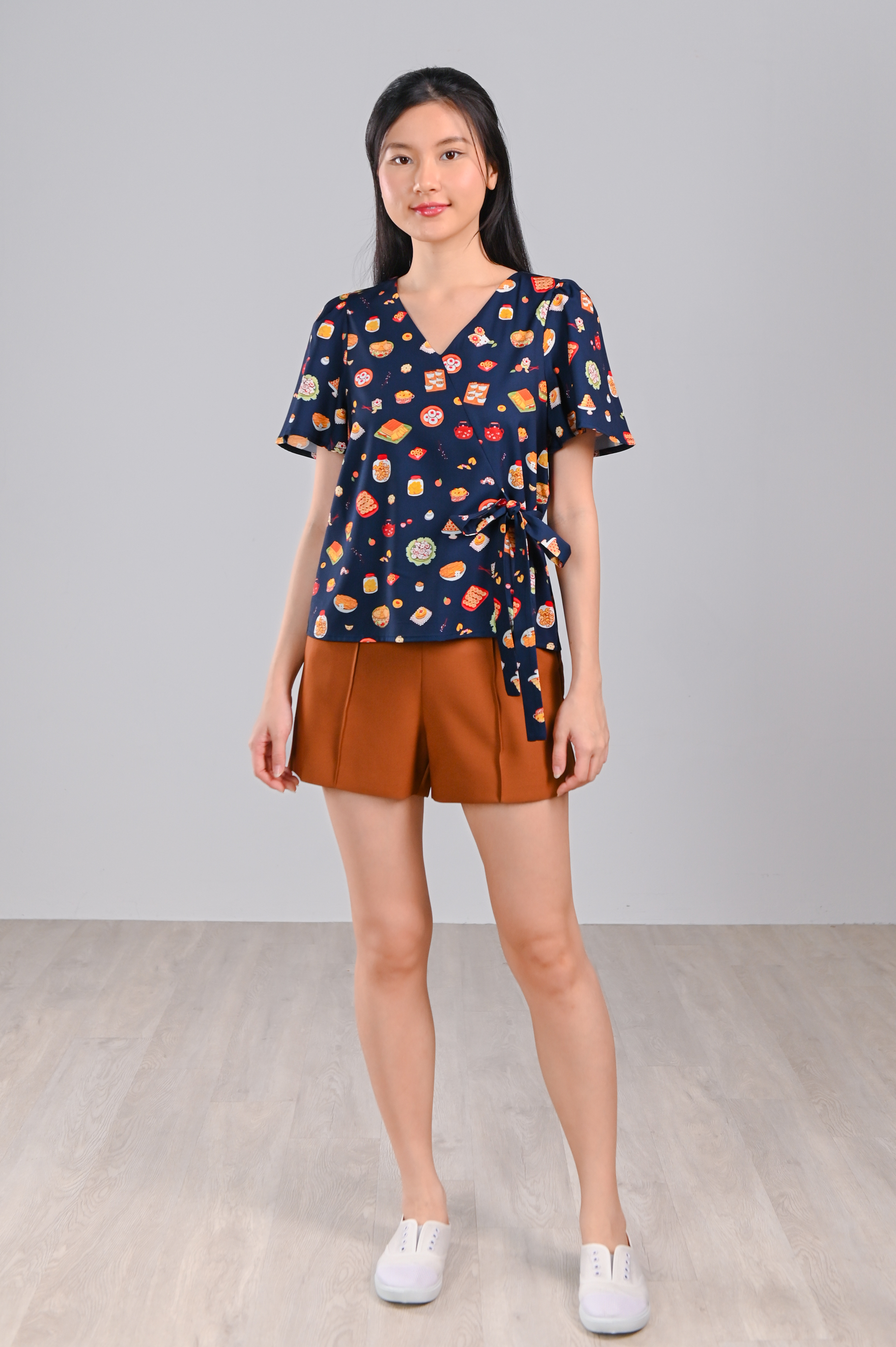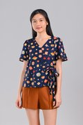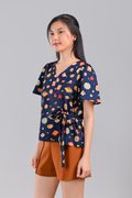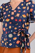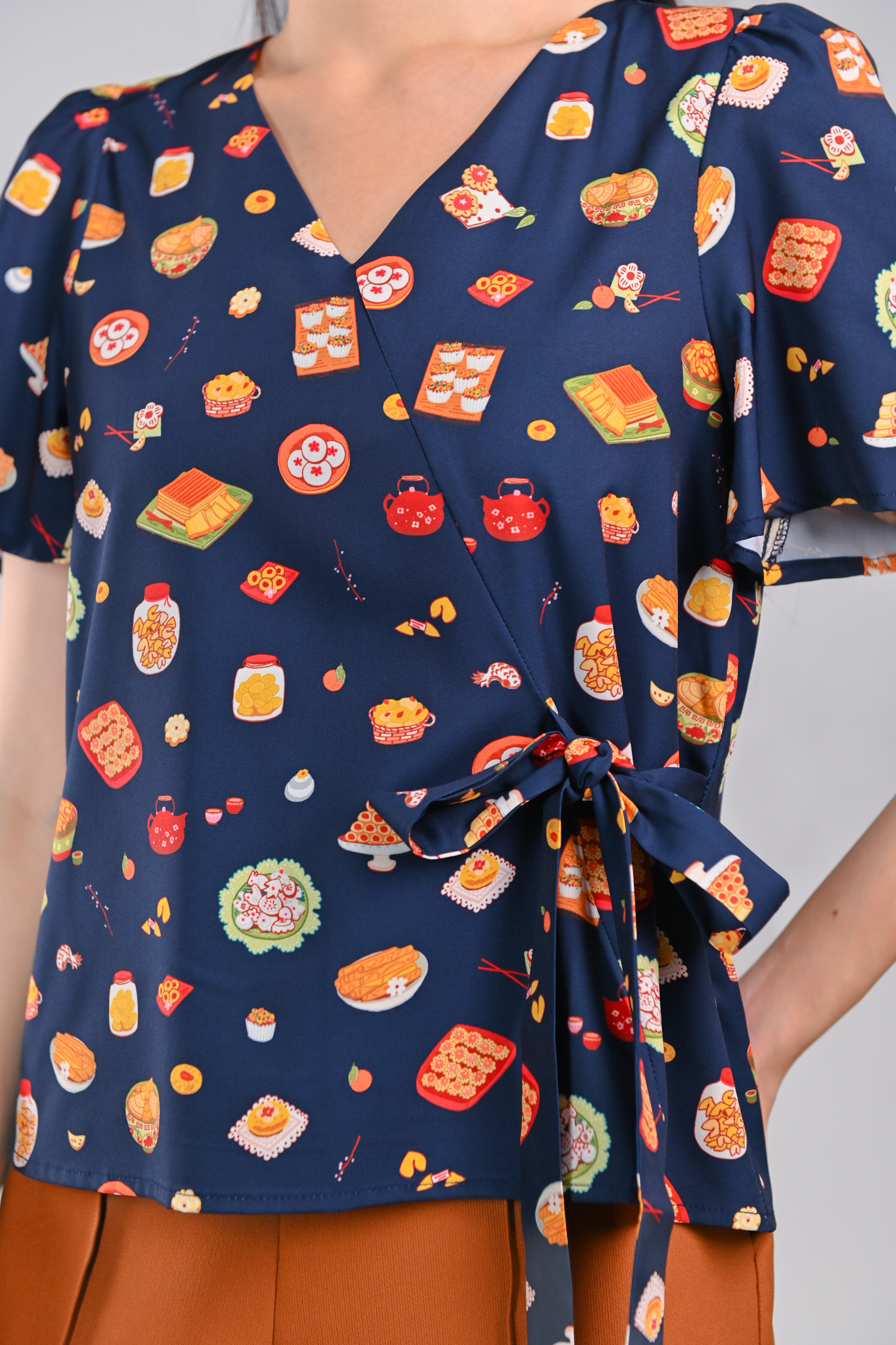 CNY SNACKS NAVY SLEEVED TIE-SASH TOP