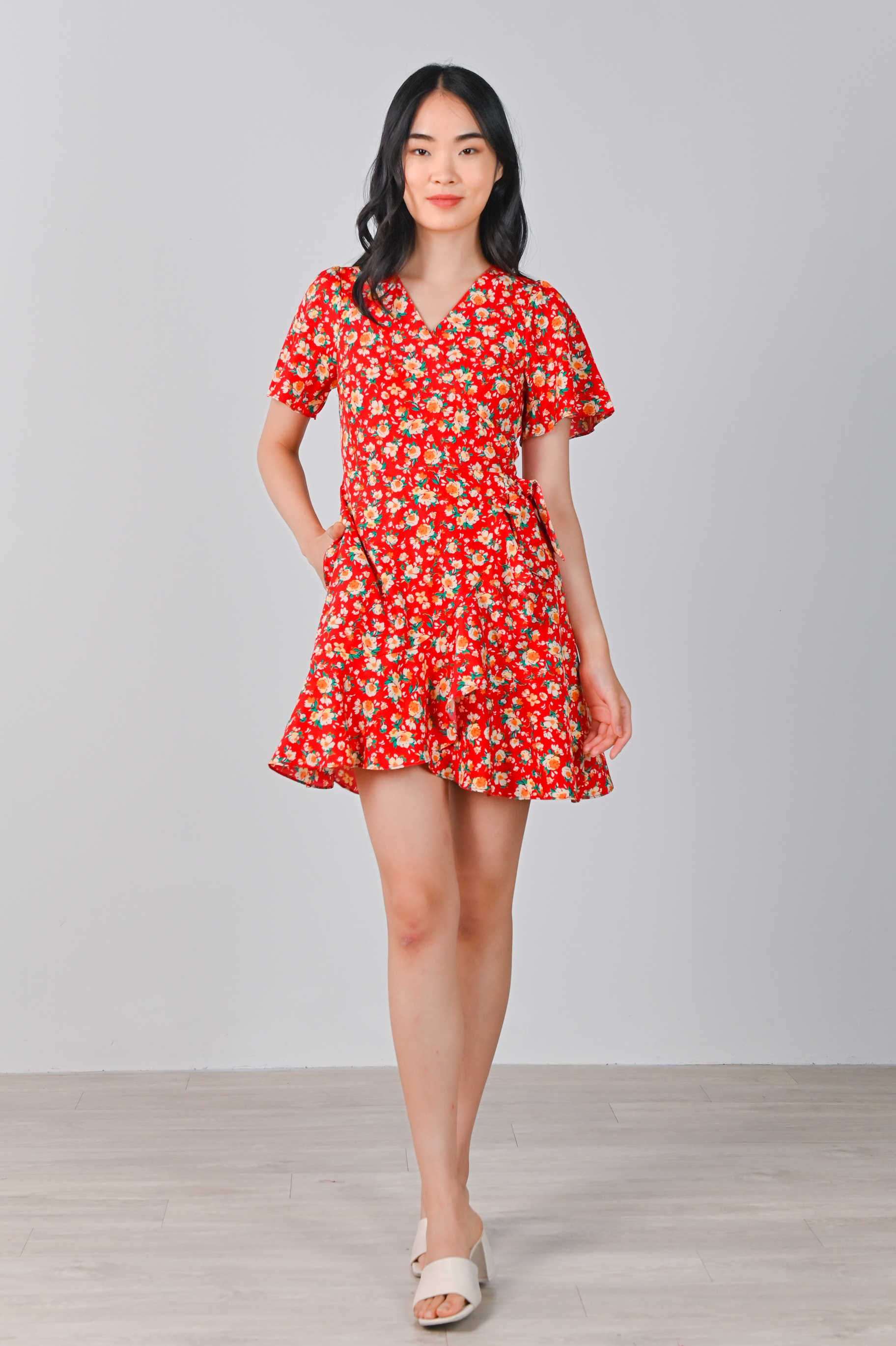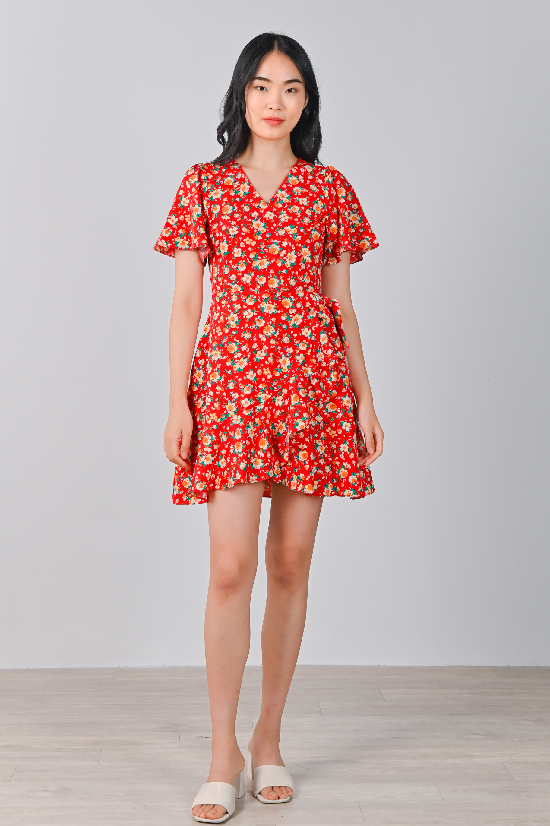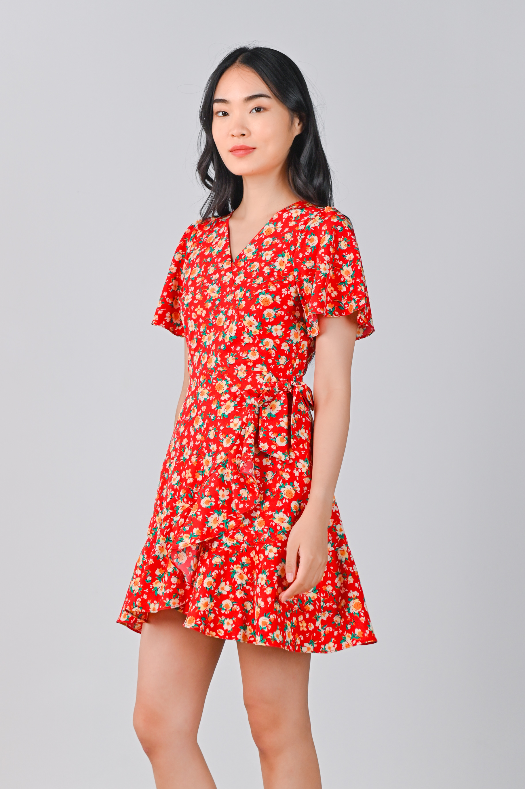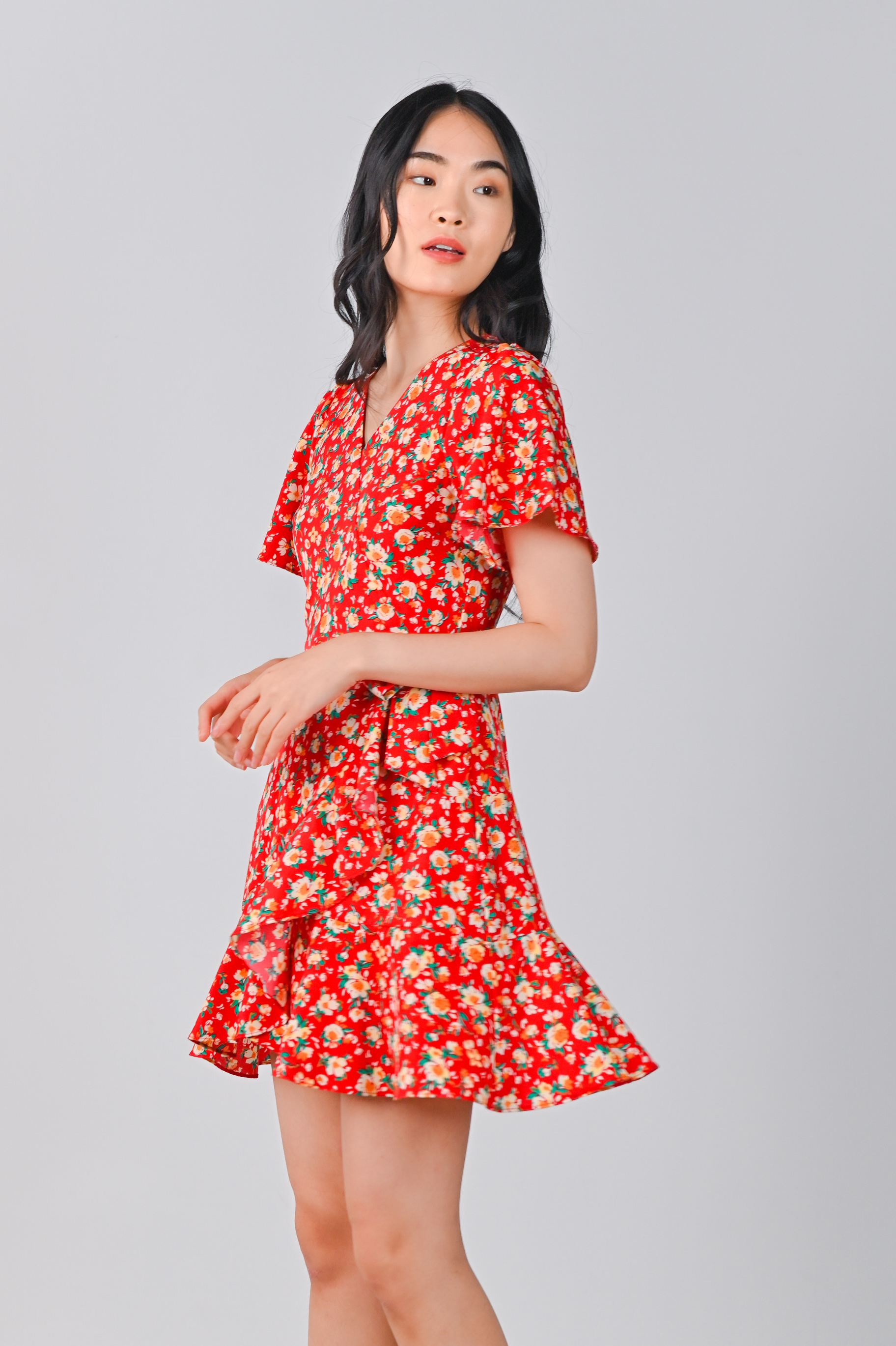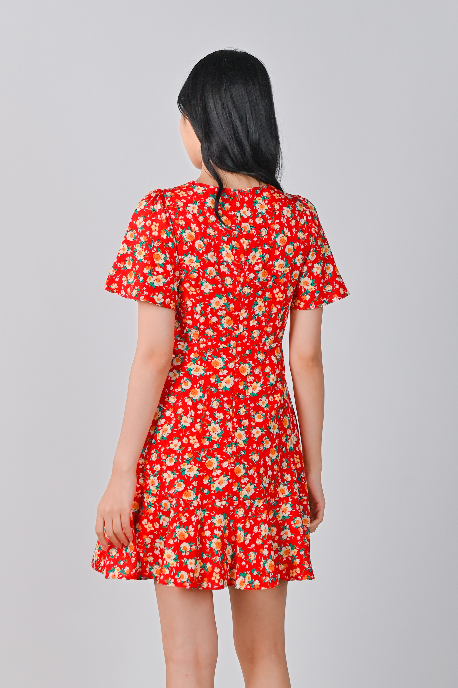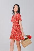 COOPER RUFFLE DRESS-ROMPER IN RED FLORAL