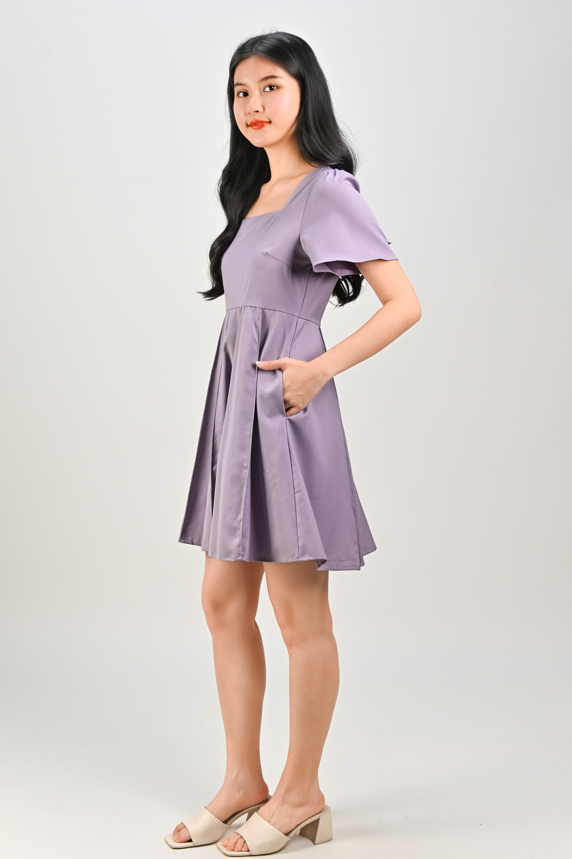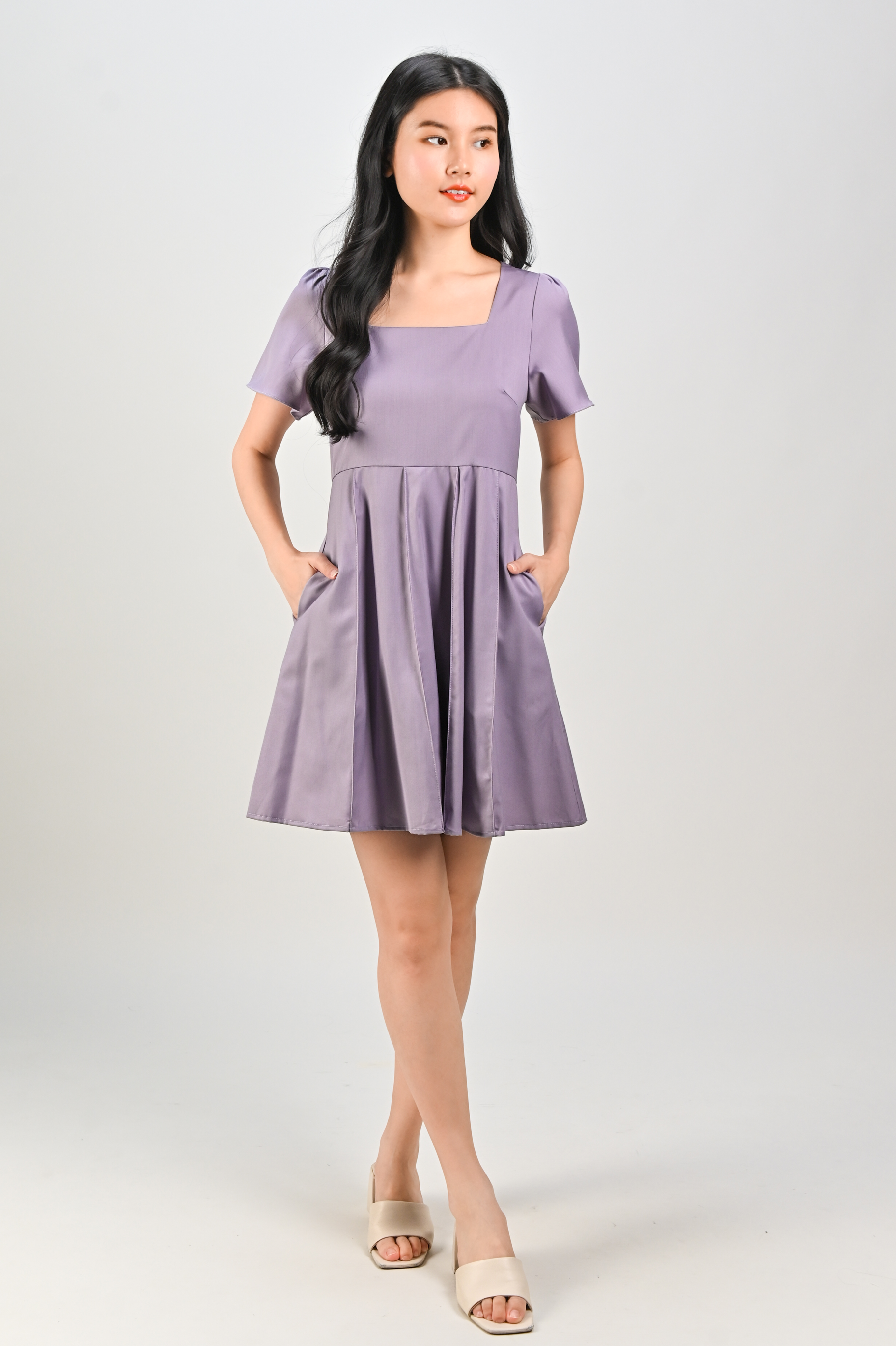 CORABELLE PANELLED DRESS-ROMPER IN LILAC