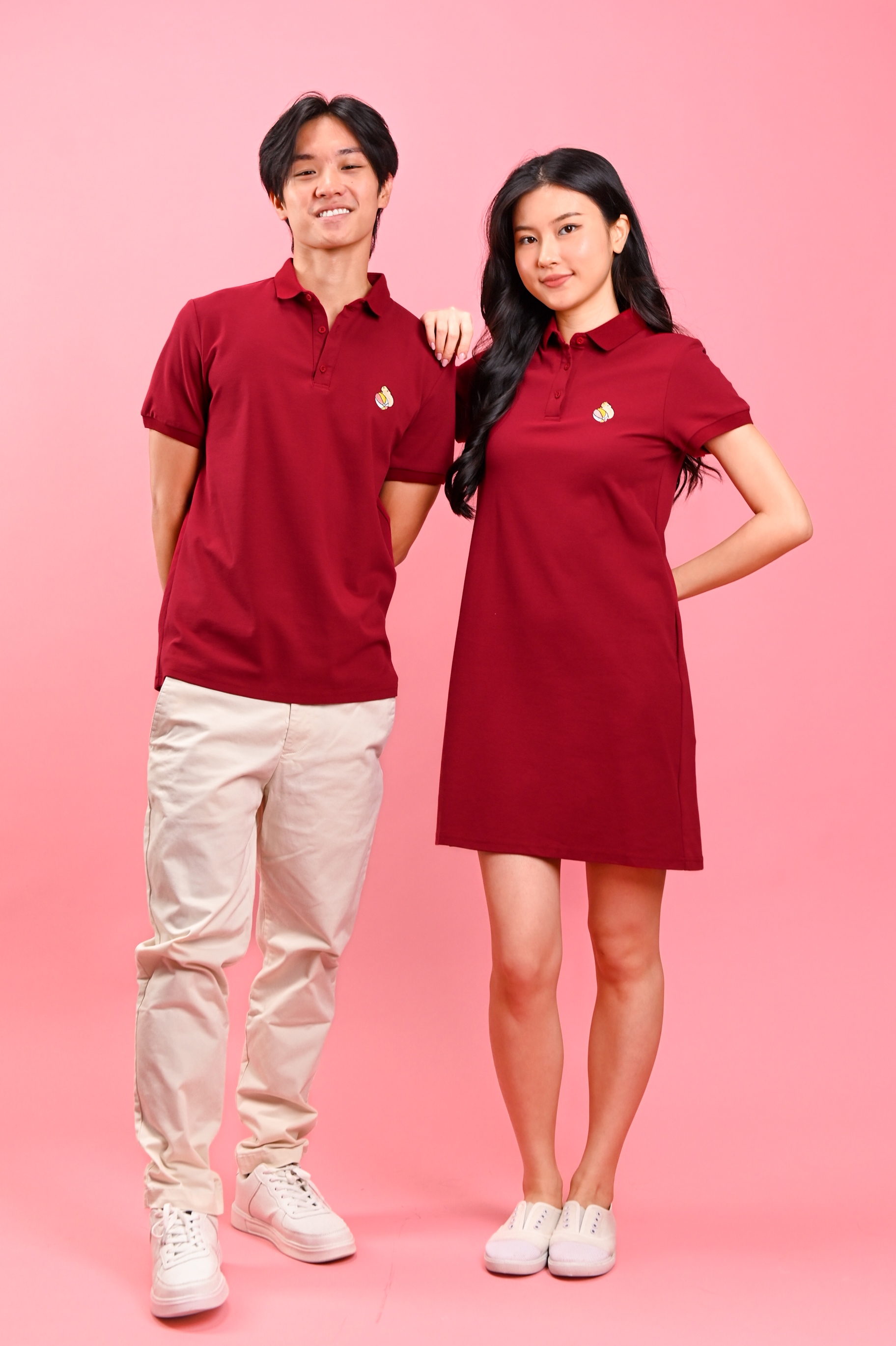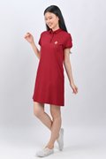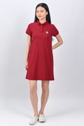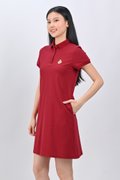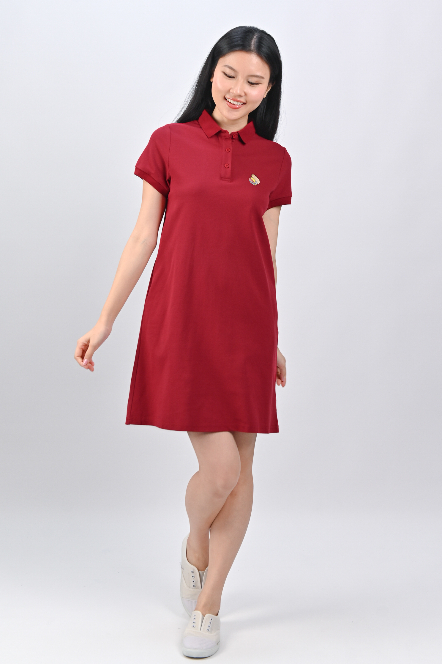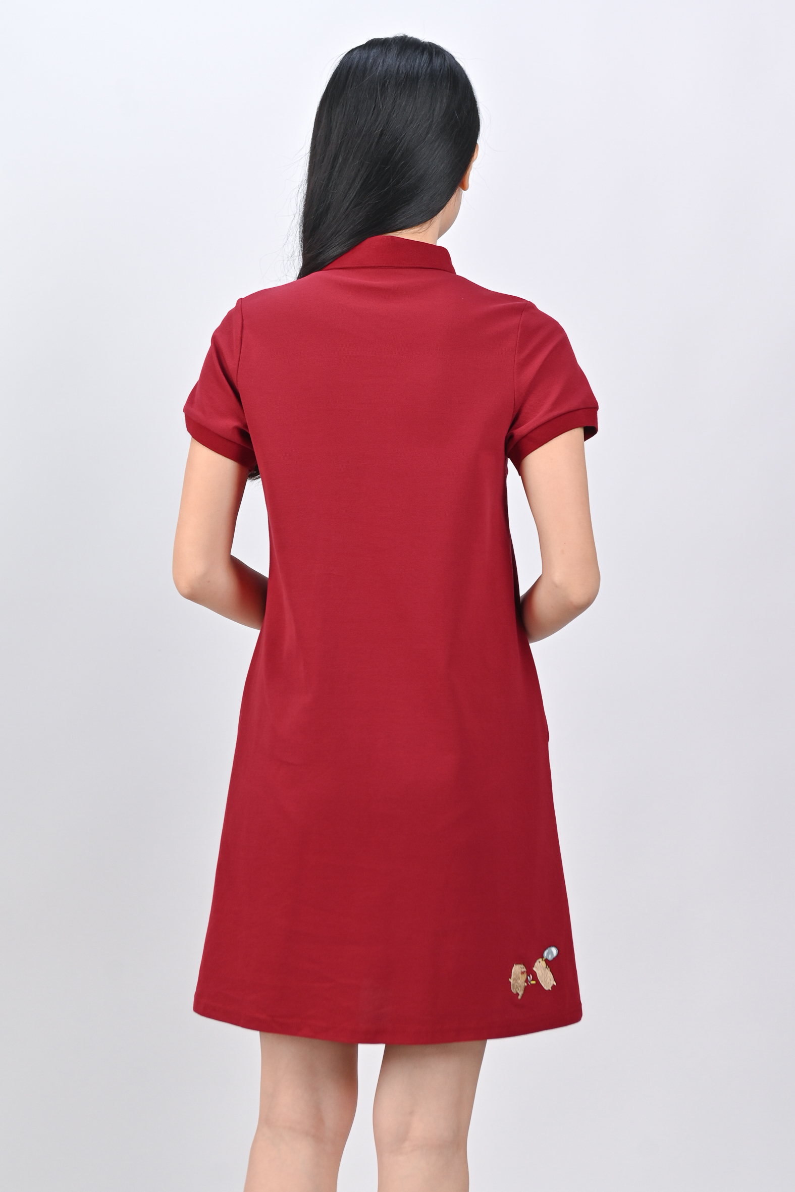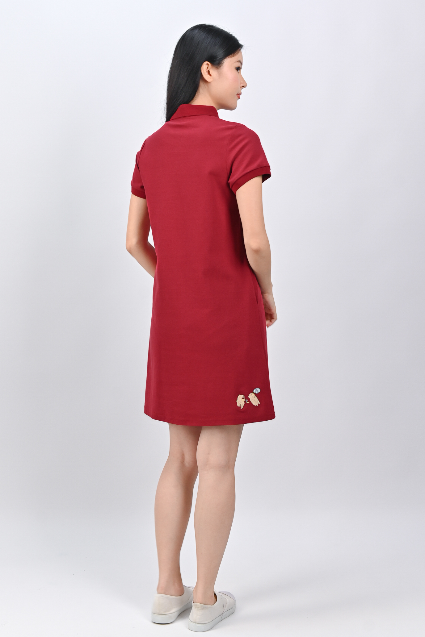 CUTE CAPYBARA EMB. RED POLO DRESS