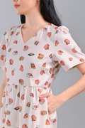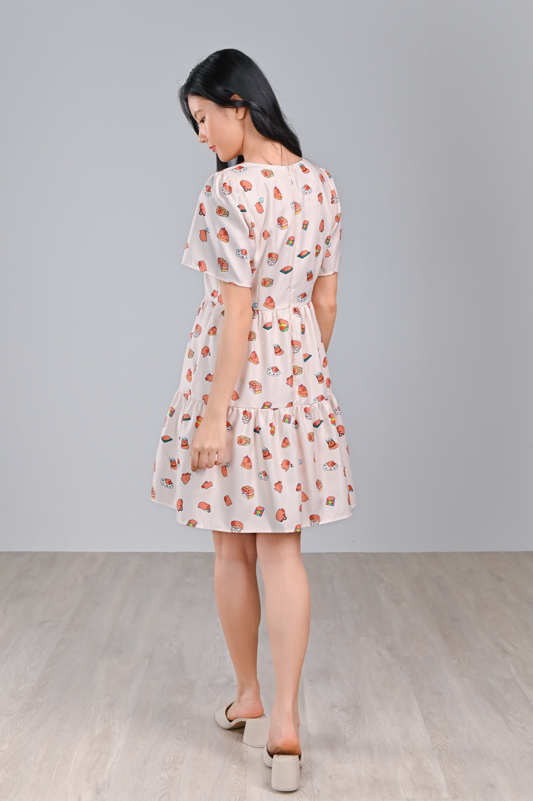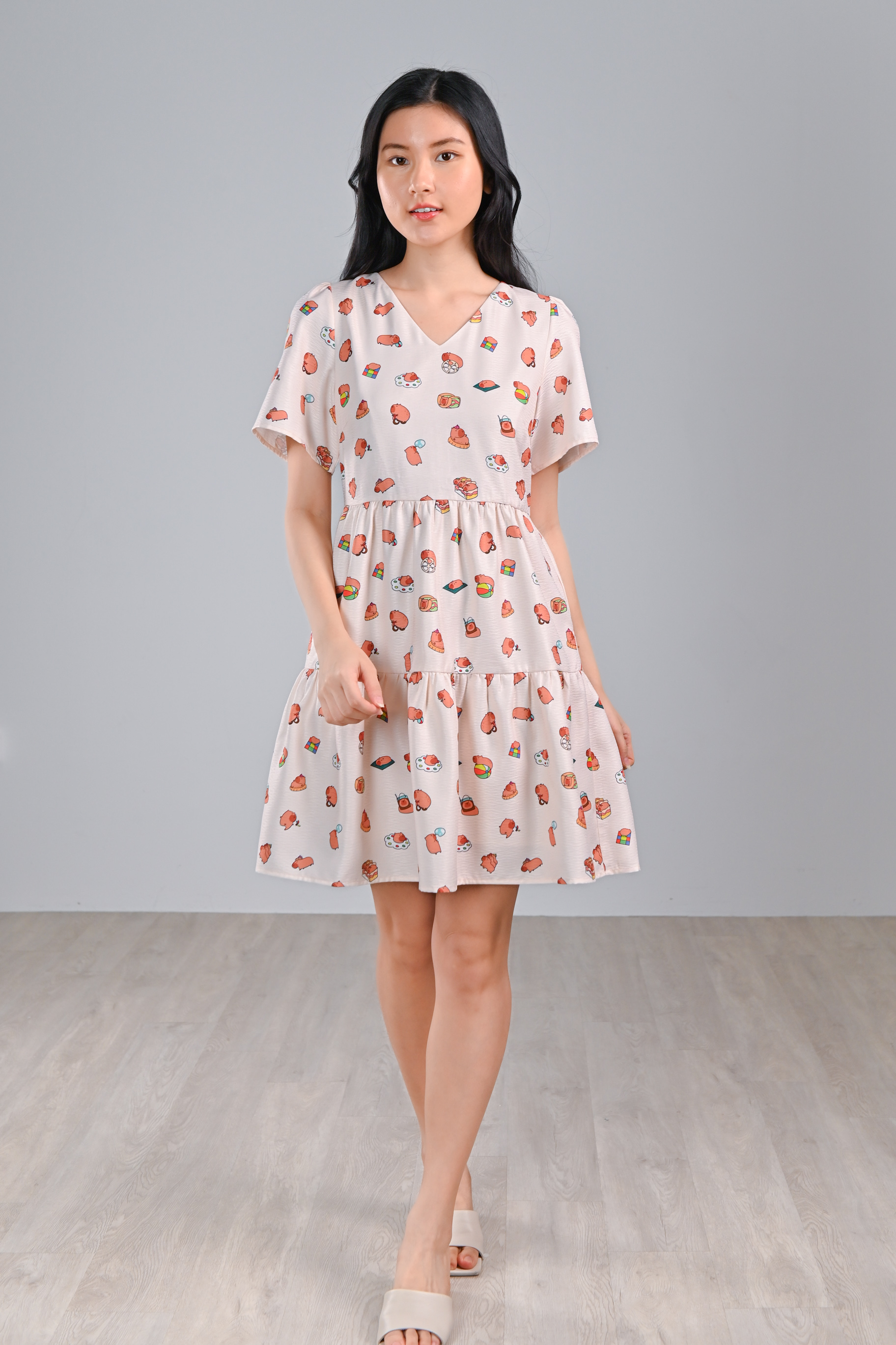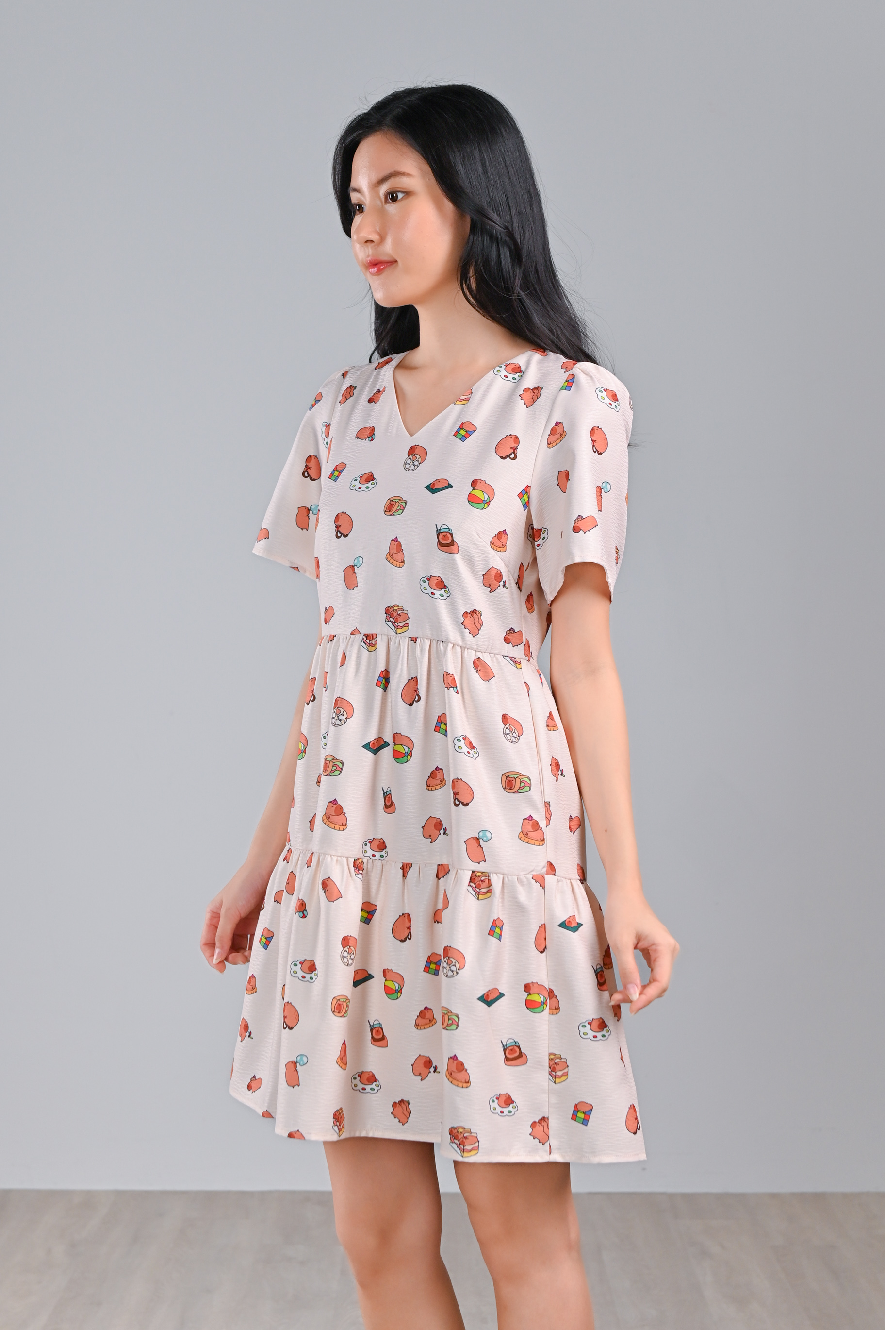 CUTE CAPYBARA V-NECK BABYDOLL DRESS