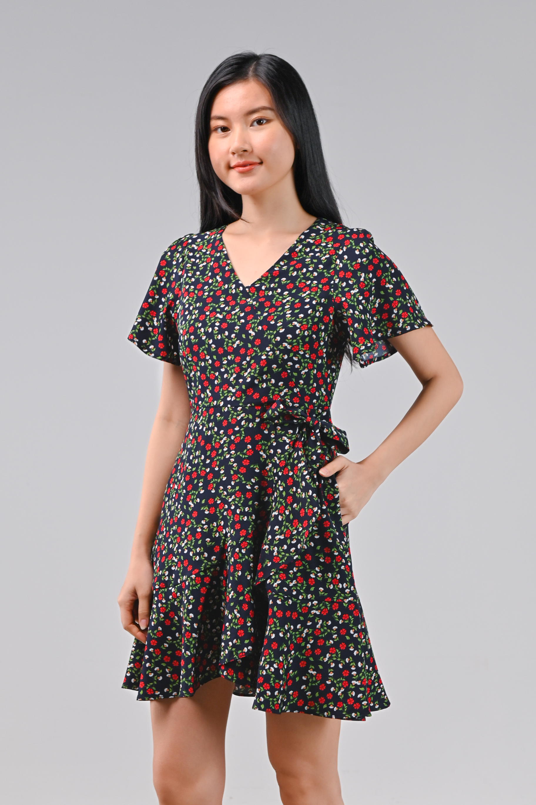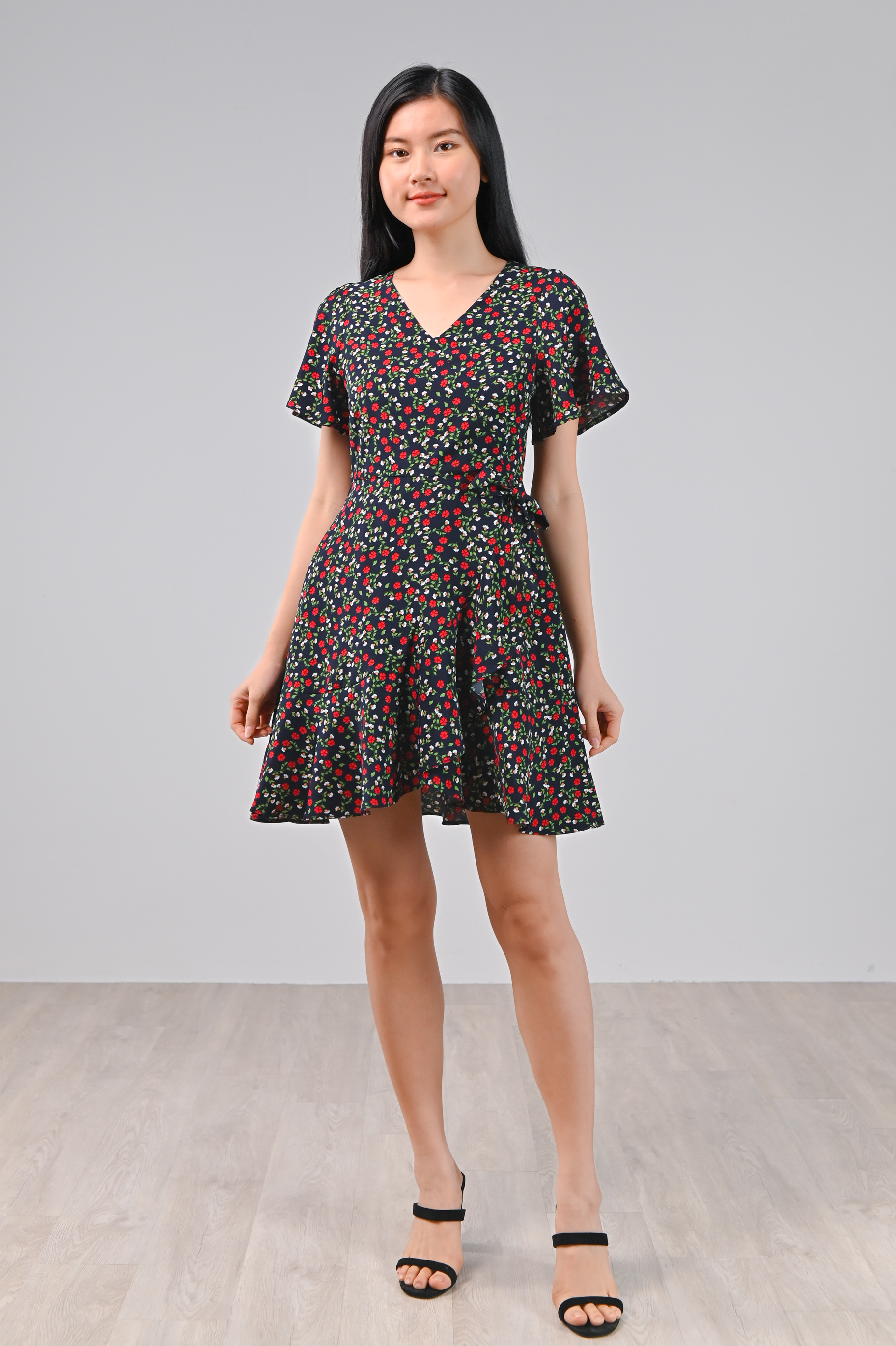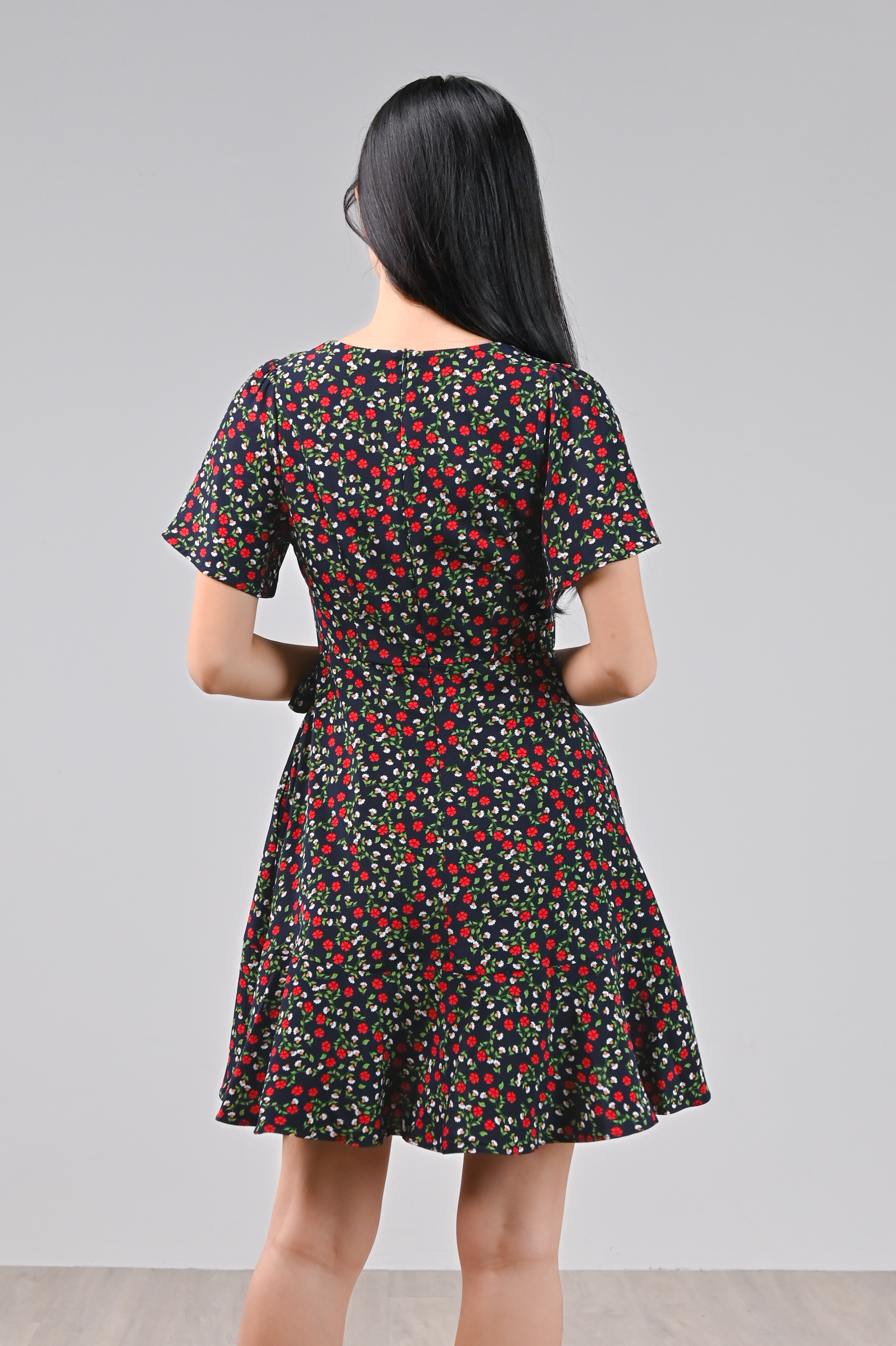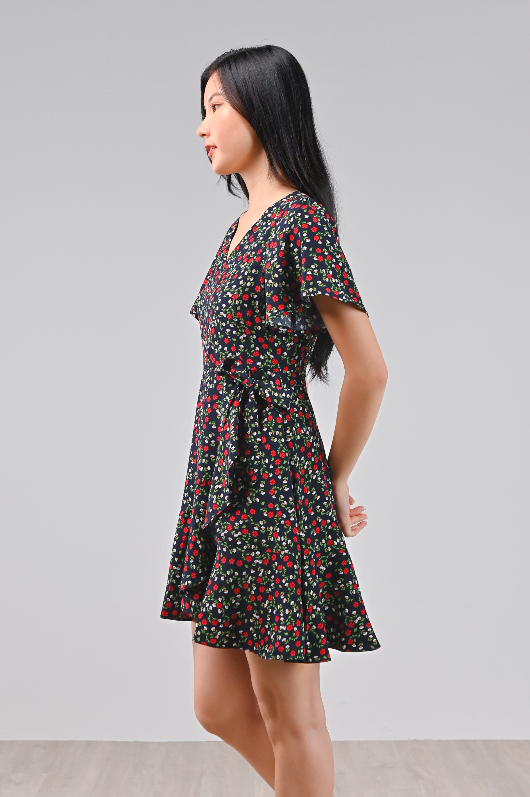 DALLIE FLORAL RUFFLE DRESS-ROMPER IN NAVY