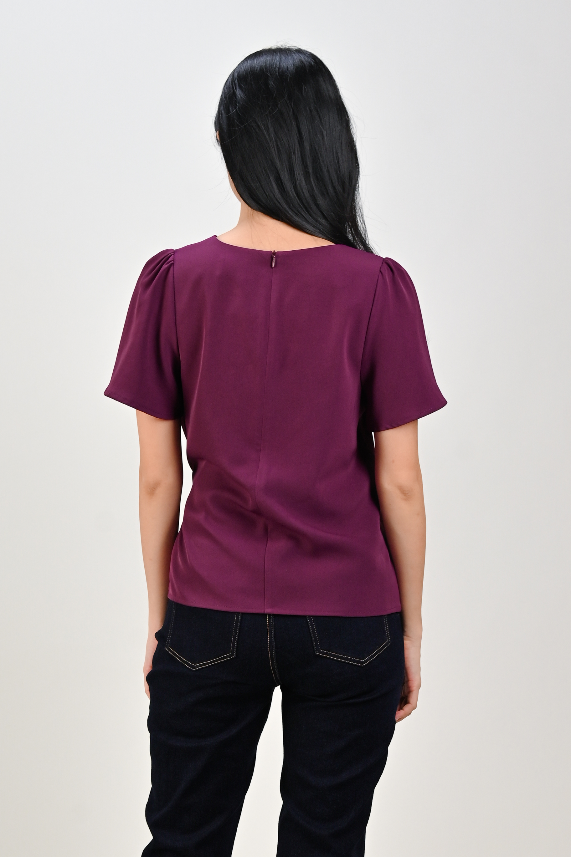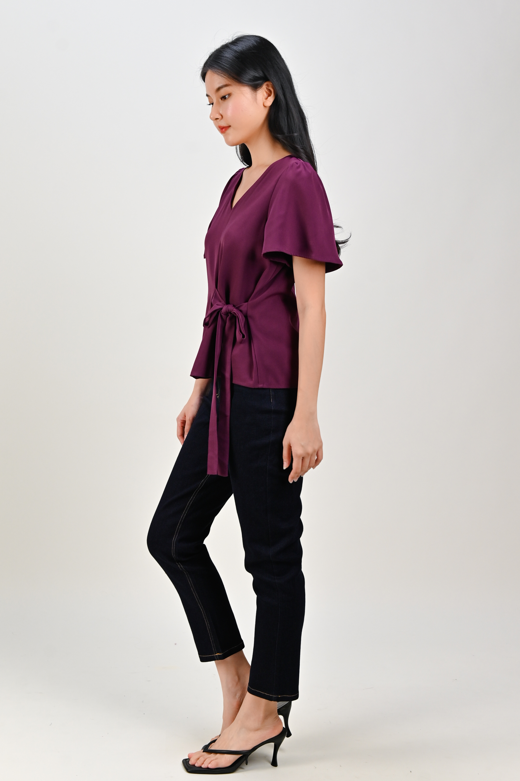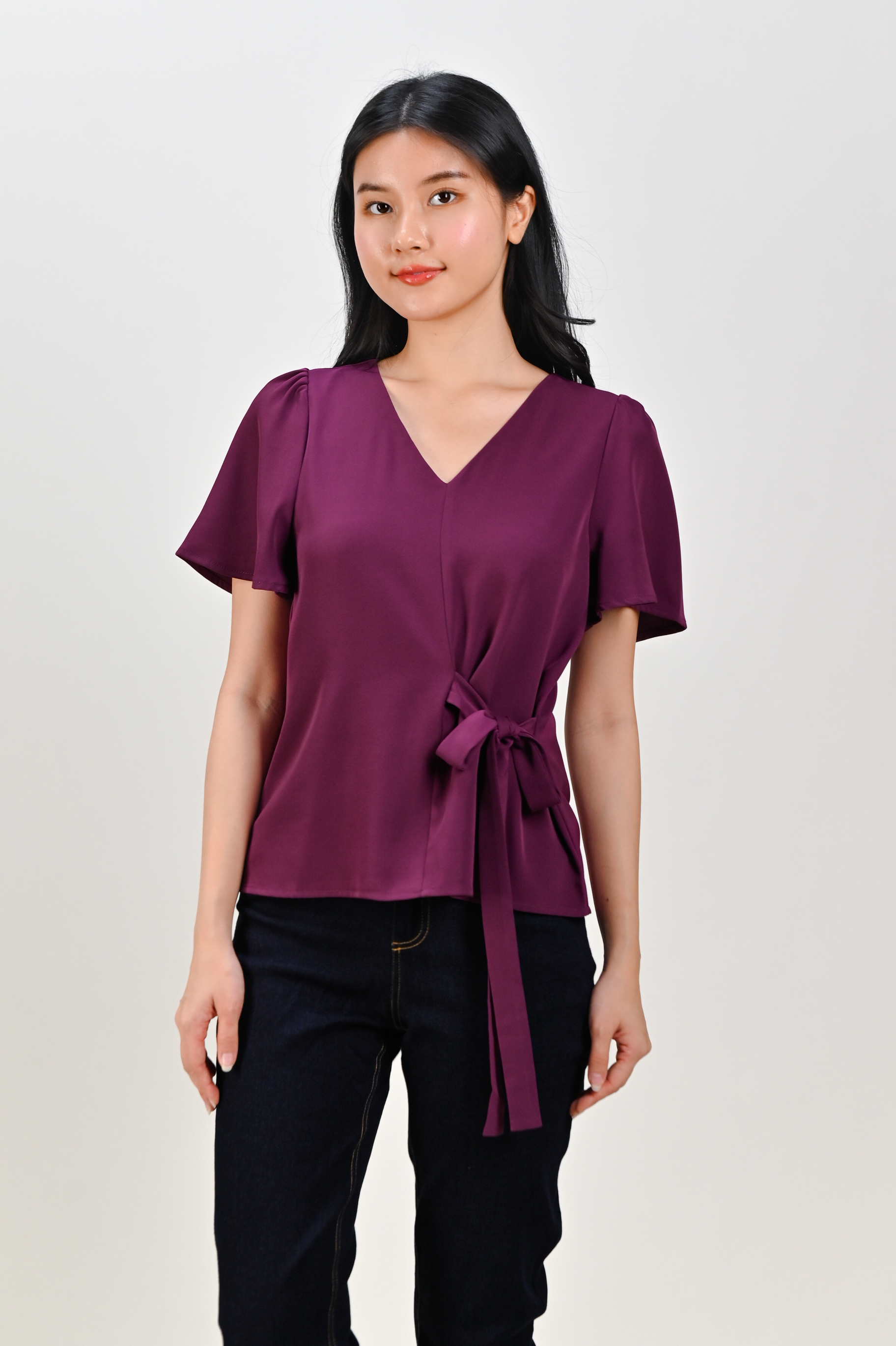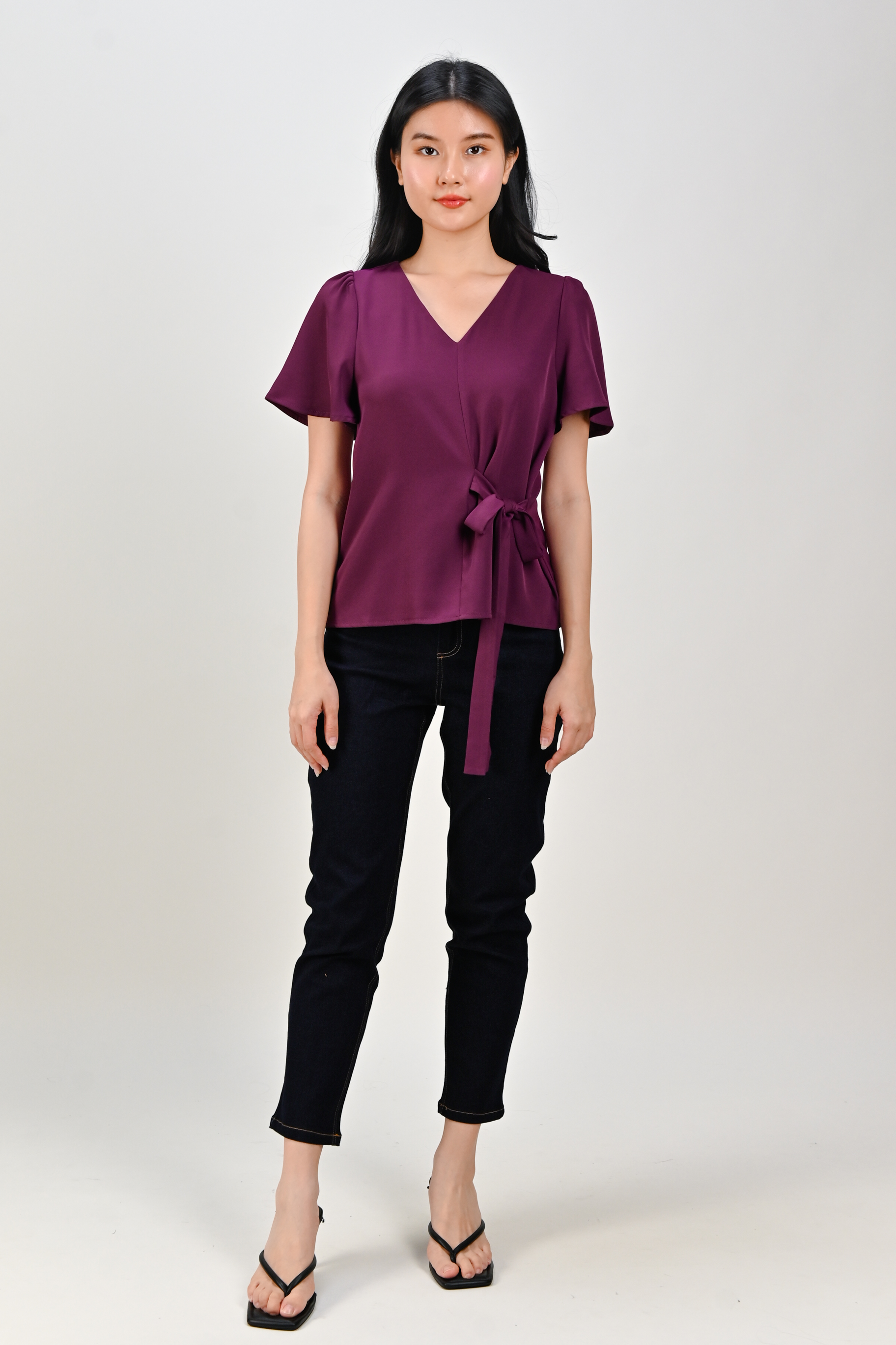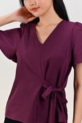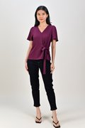 DEXIE SLEEVED TIE-SASH TOP IN MAROON