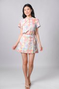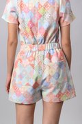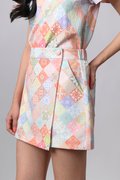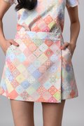 DIAMOND VINTAGE TILES ELASTIC-WAIST SKORTS