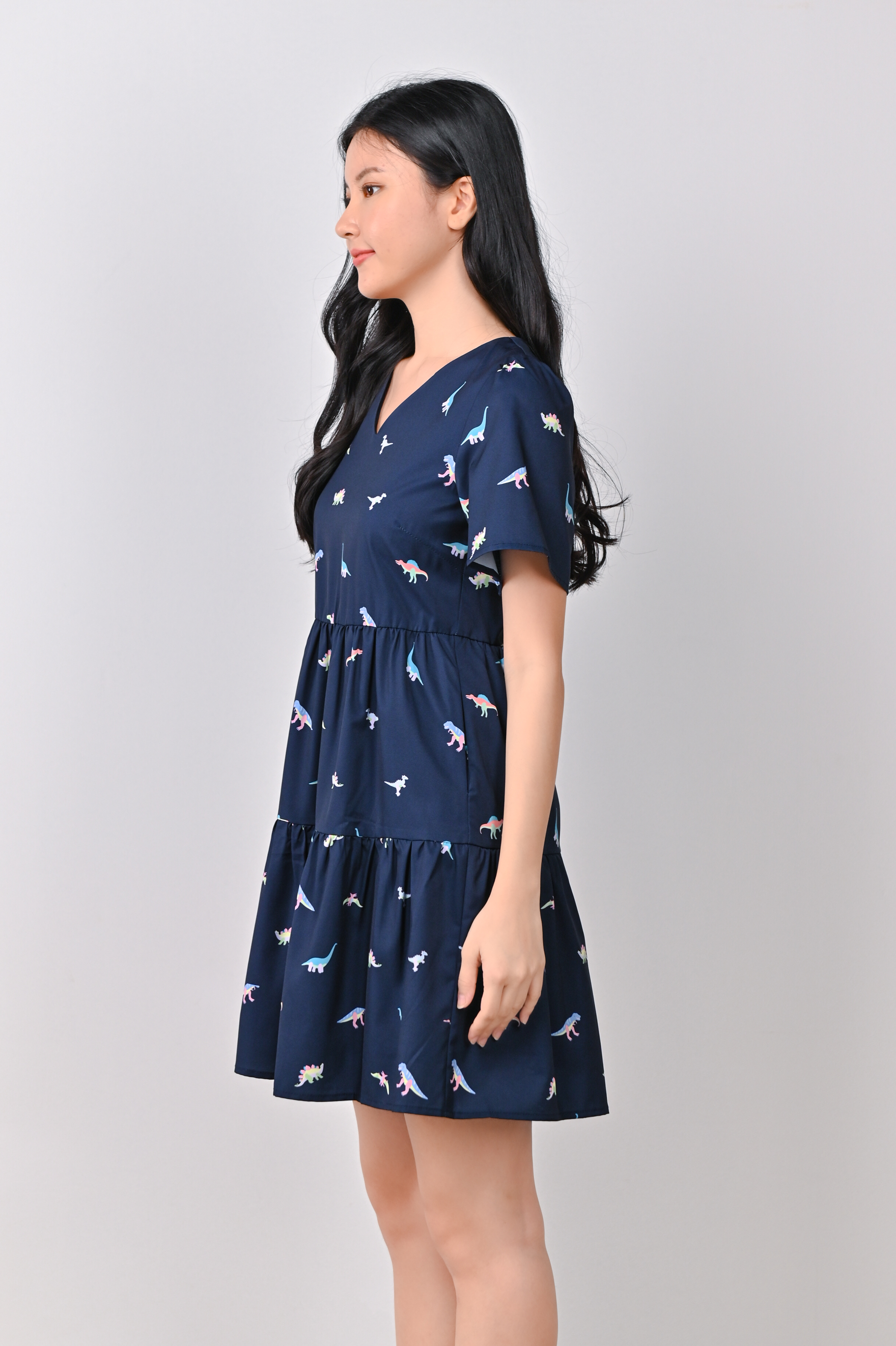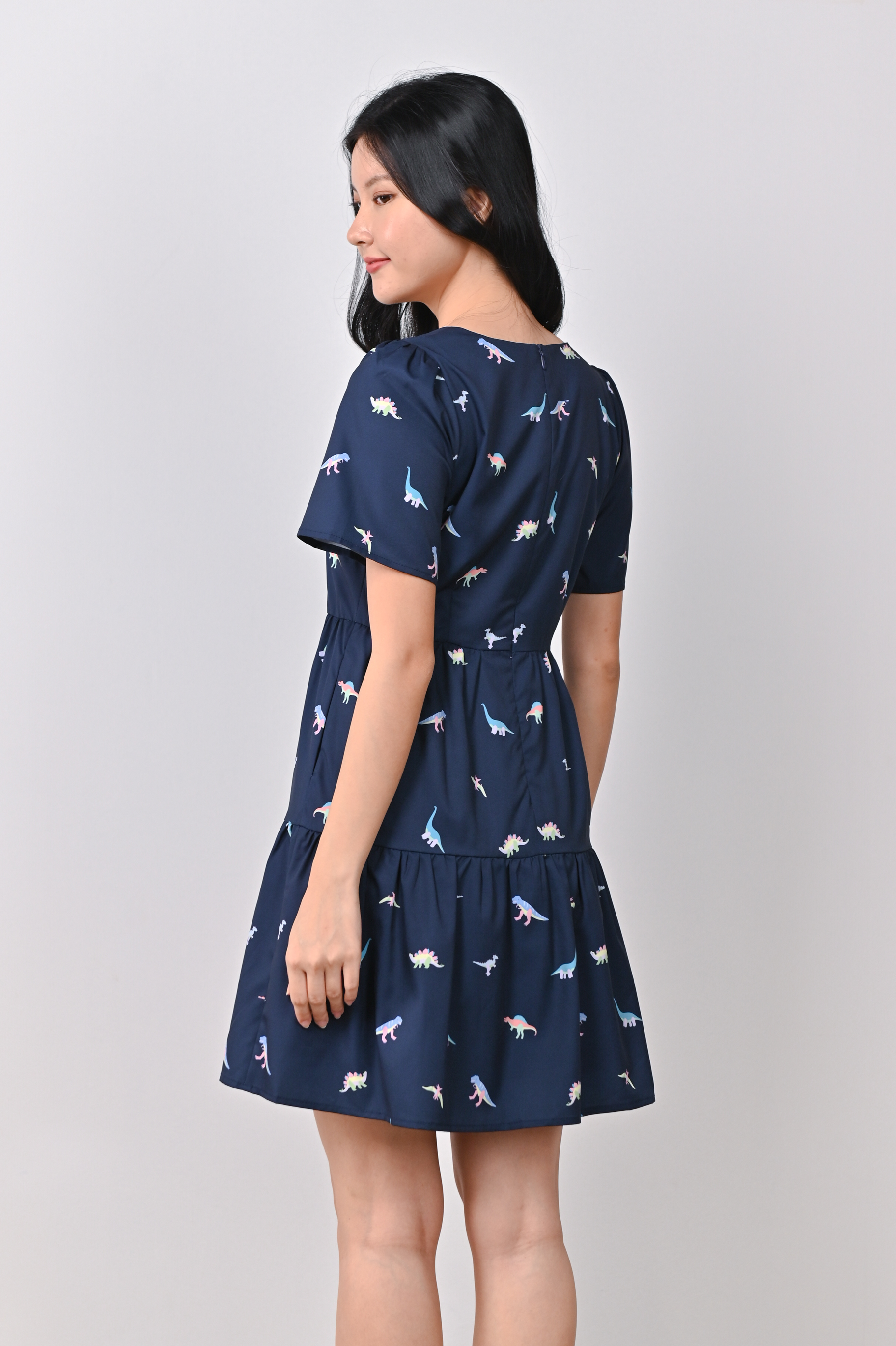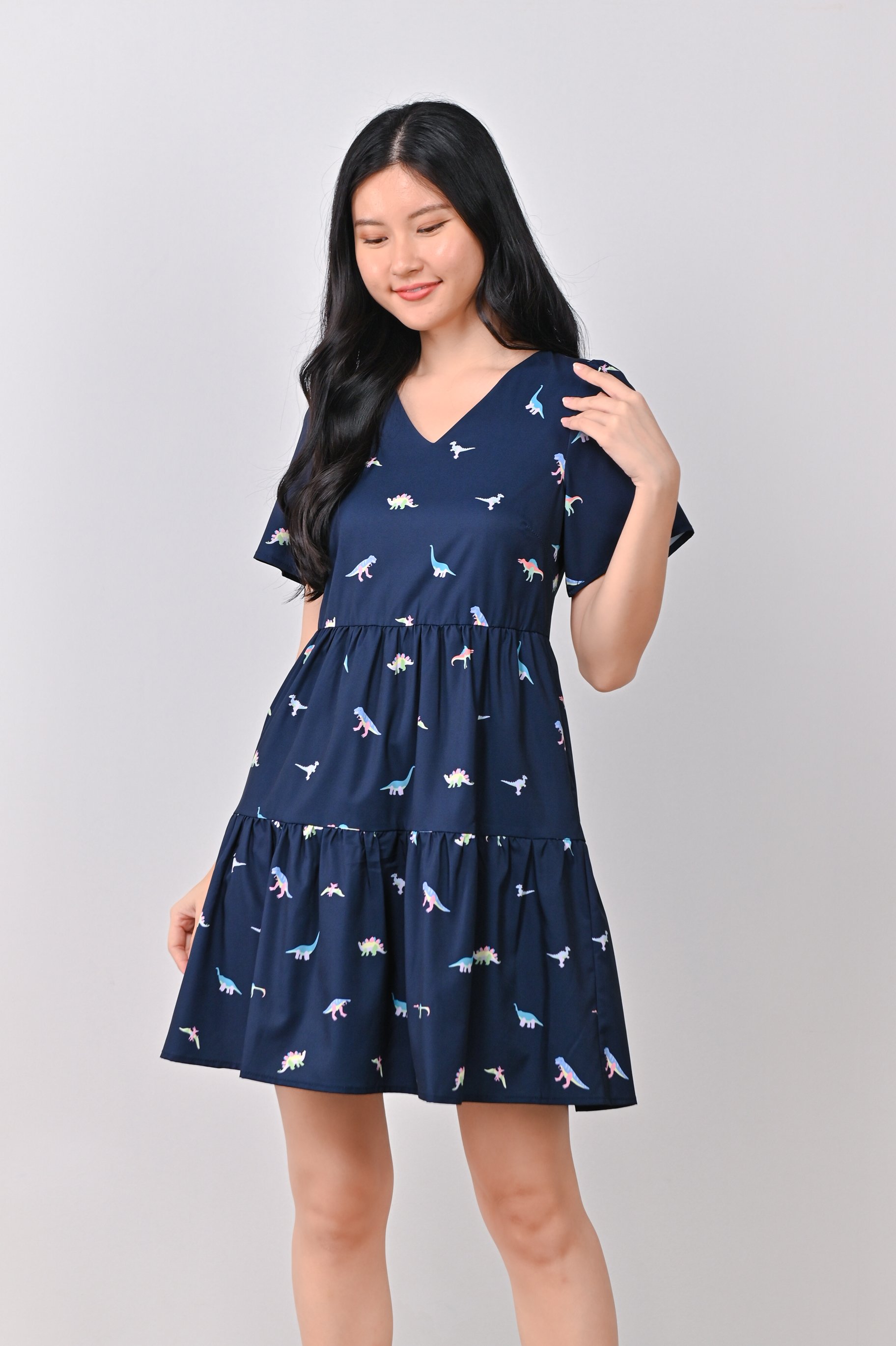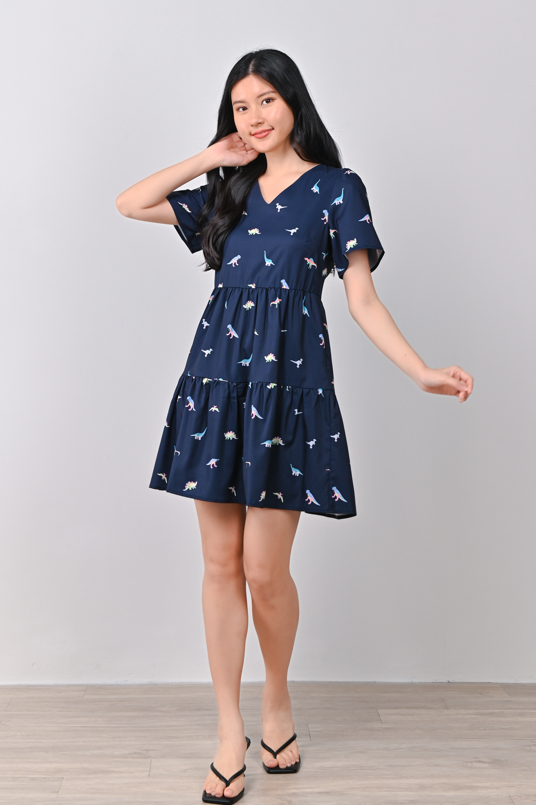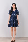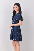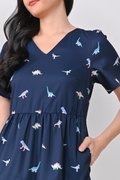 DINO PRINTED BABYDOLL DRESS IN NAVY