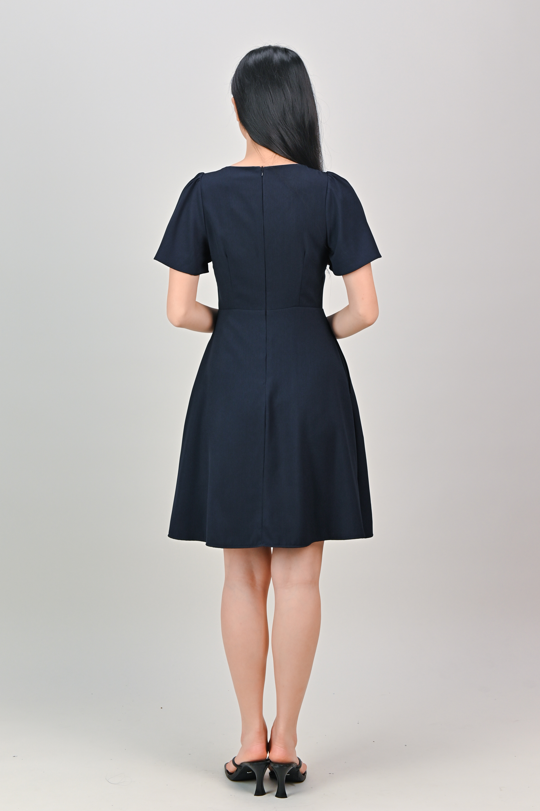 - Concealed back zip