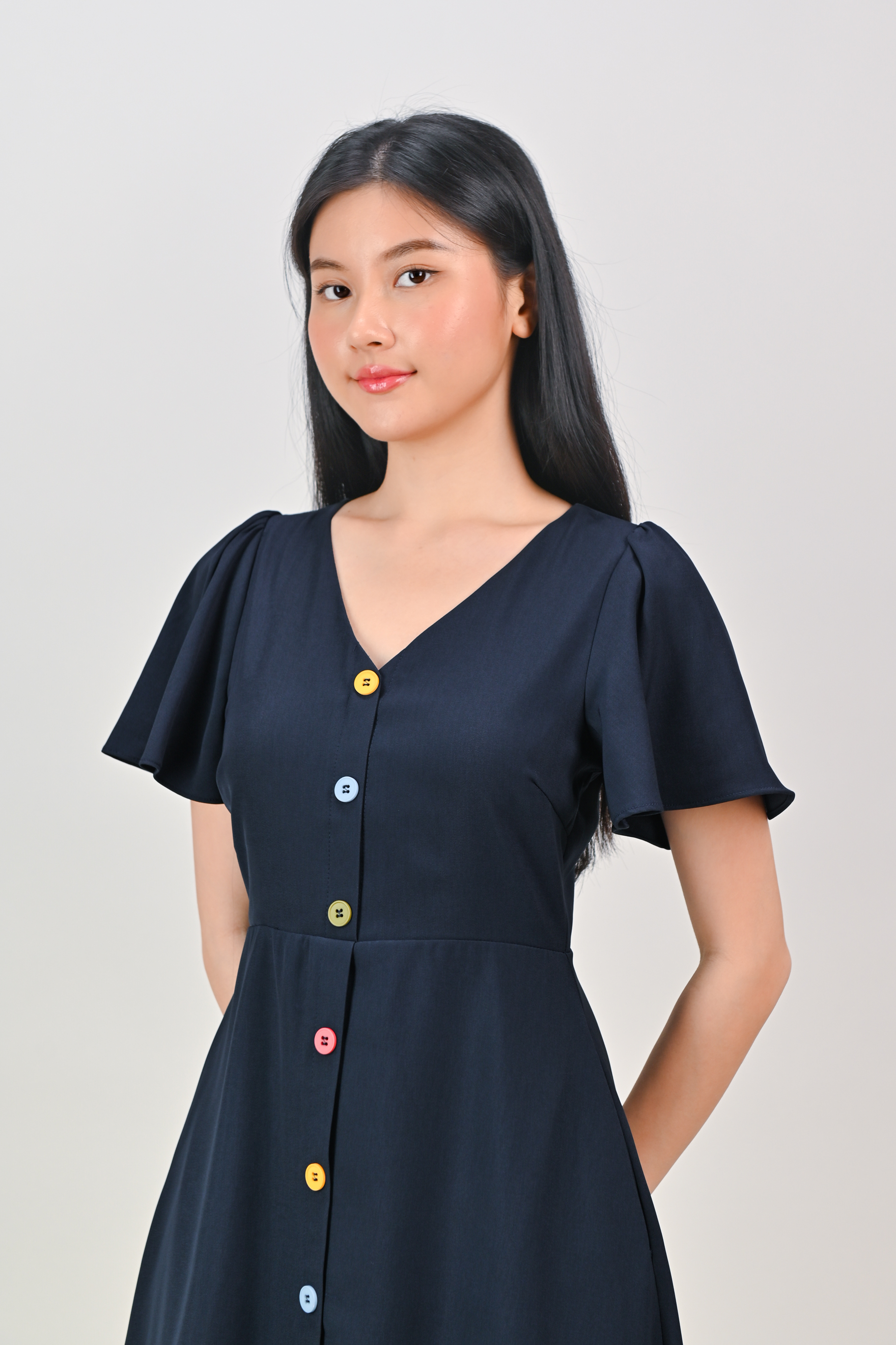 Actual stocks may varyColourful buttons deserve their moment! 🎨 Our Durie Colourful-Button Dress is pure joy in dress form! 🩷