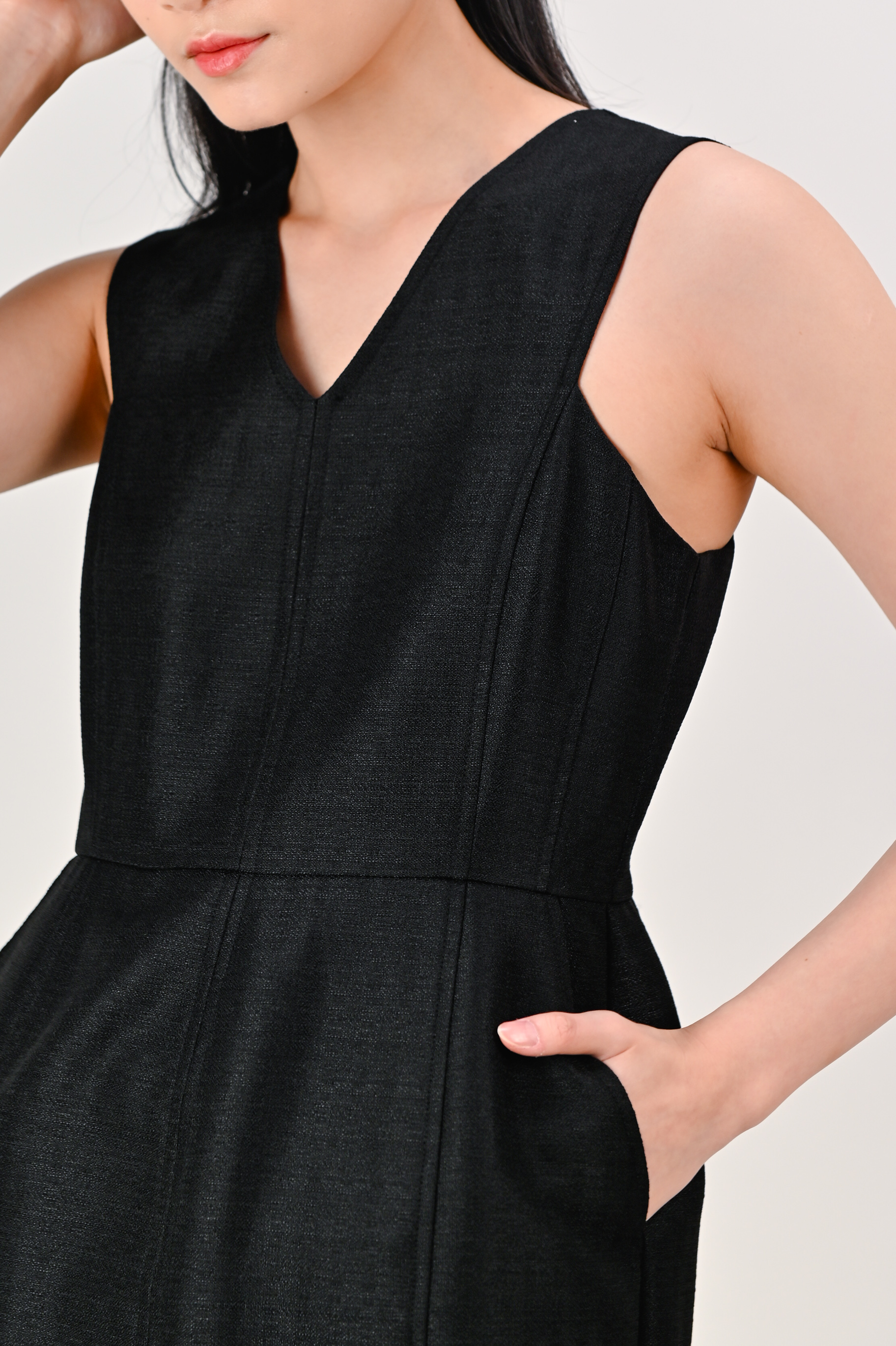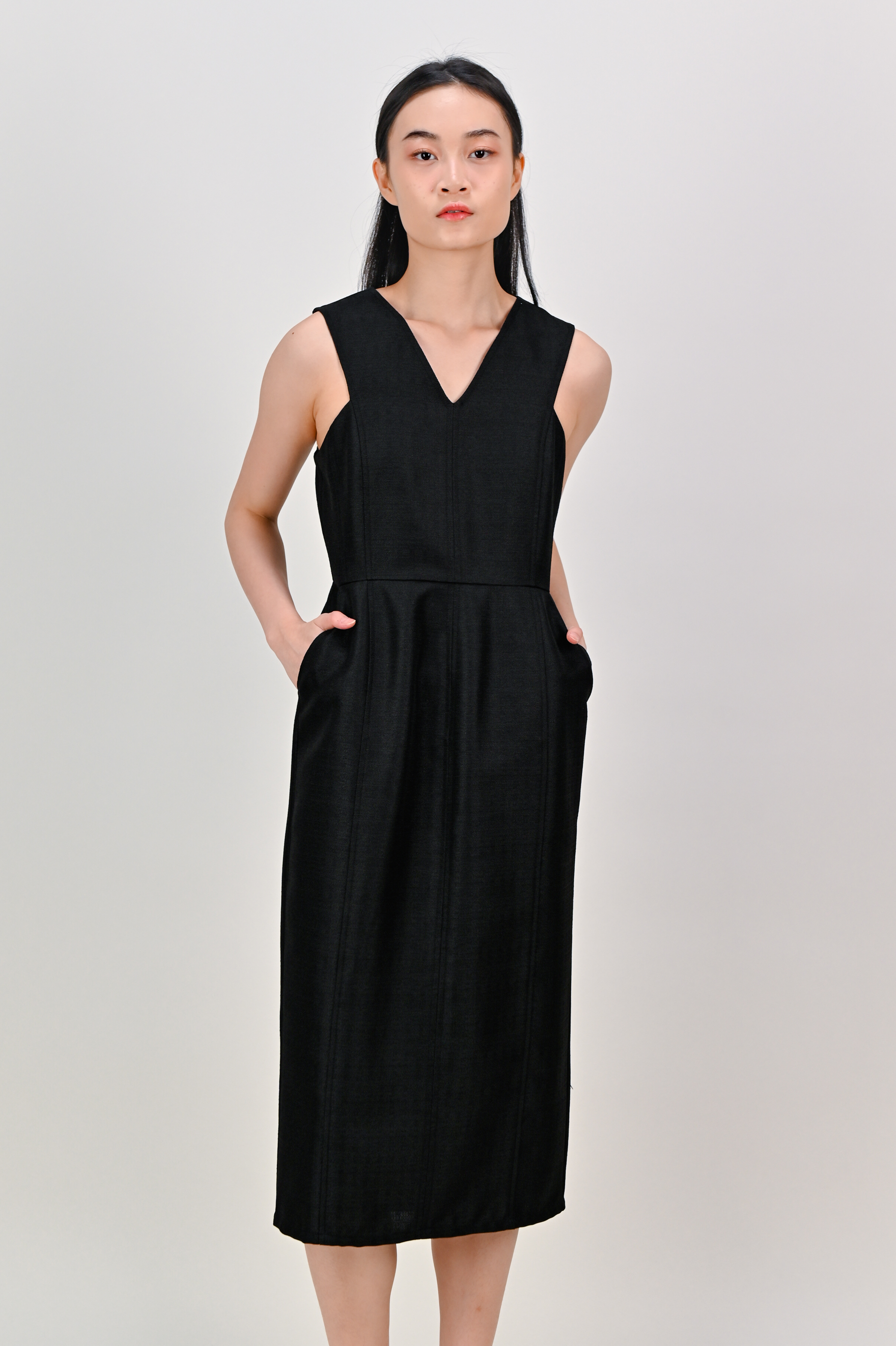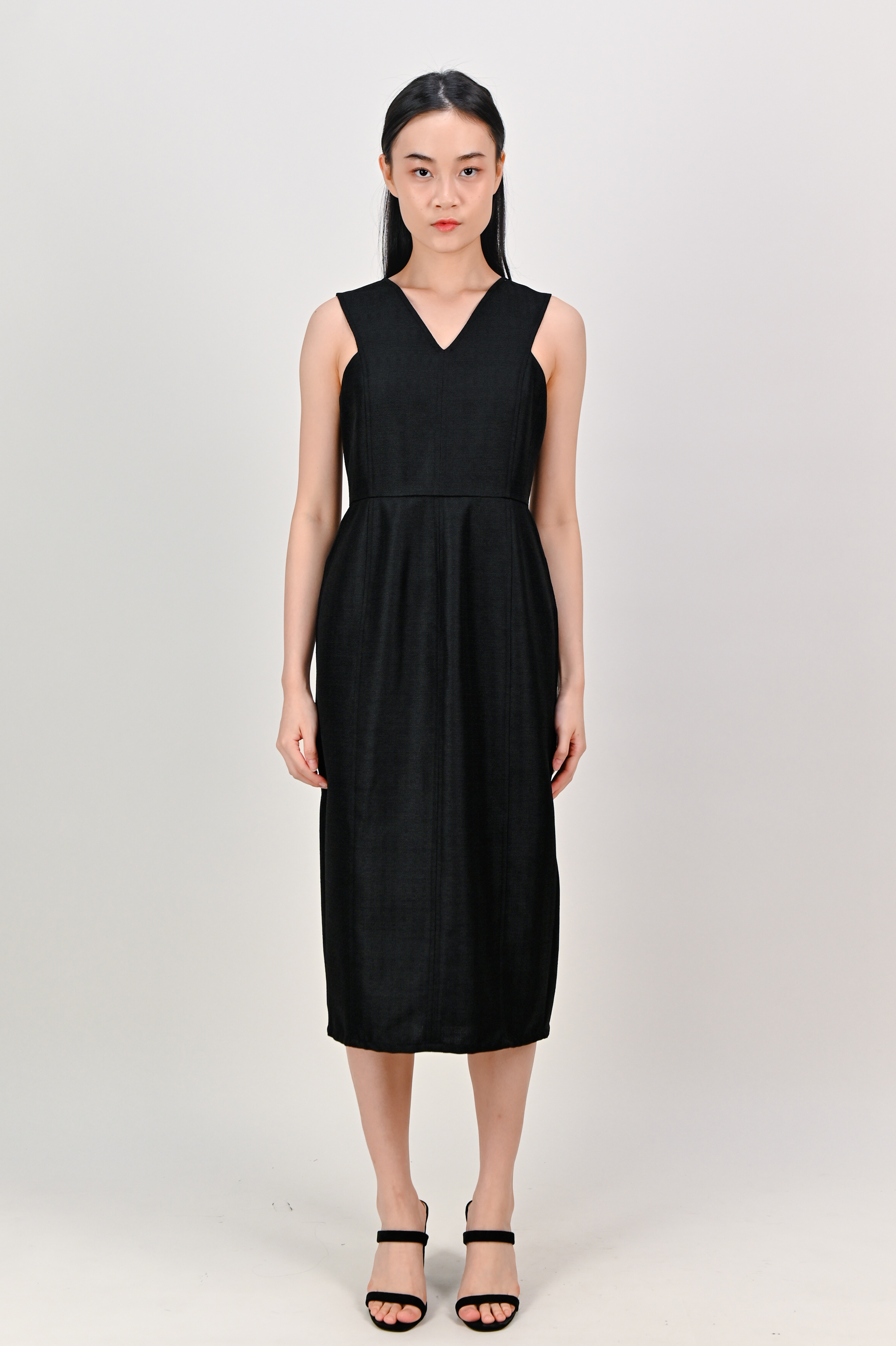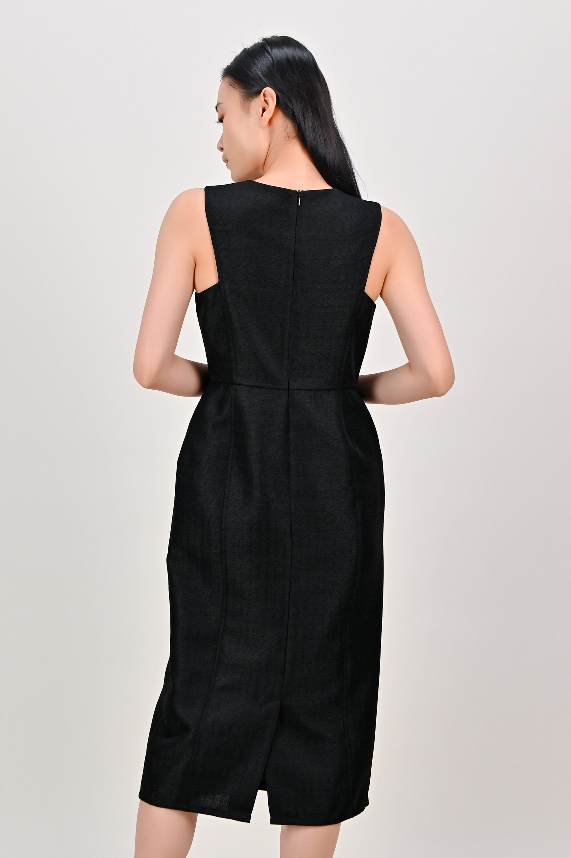 EIRLYS SLEEVELESS PANELLED DRESS IN BLACK