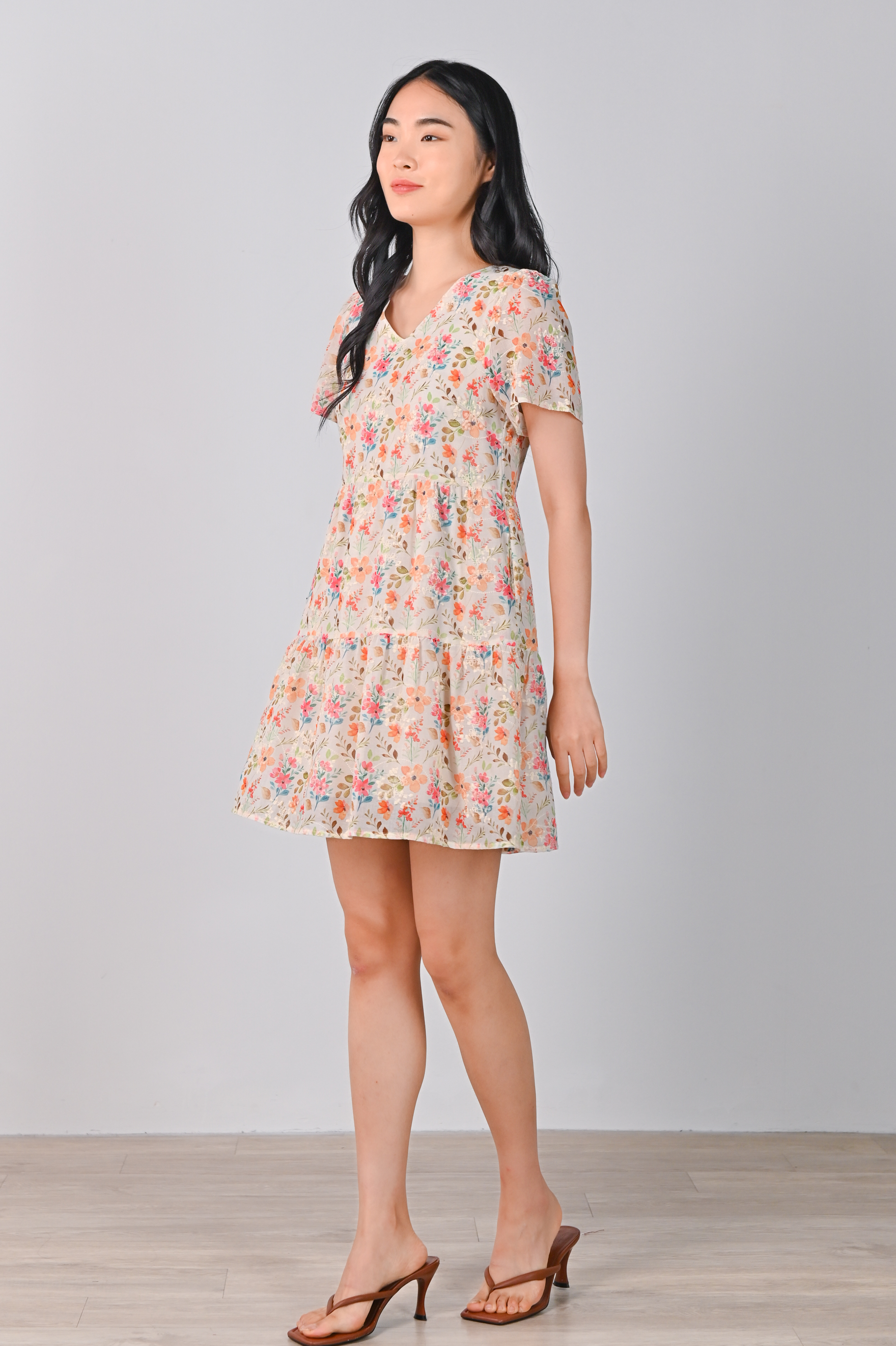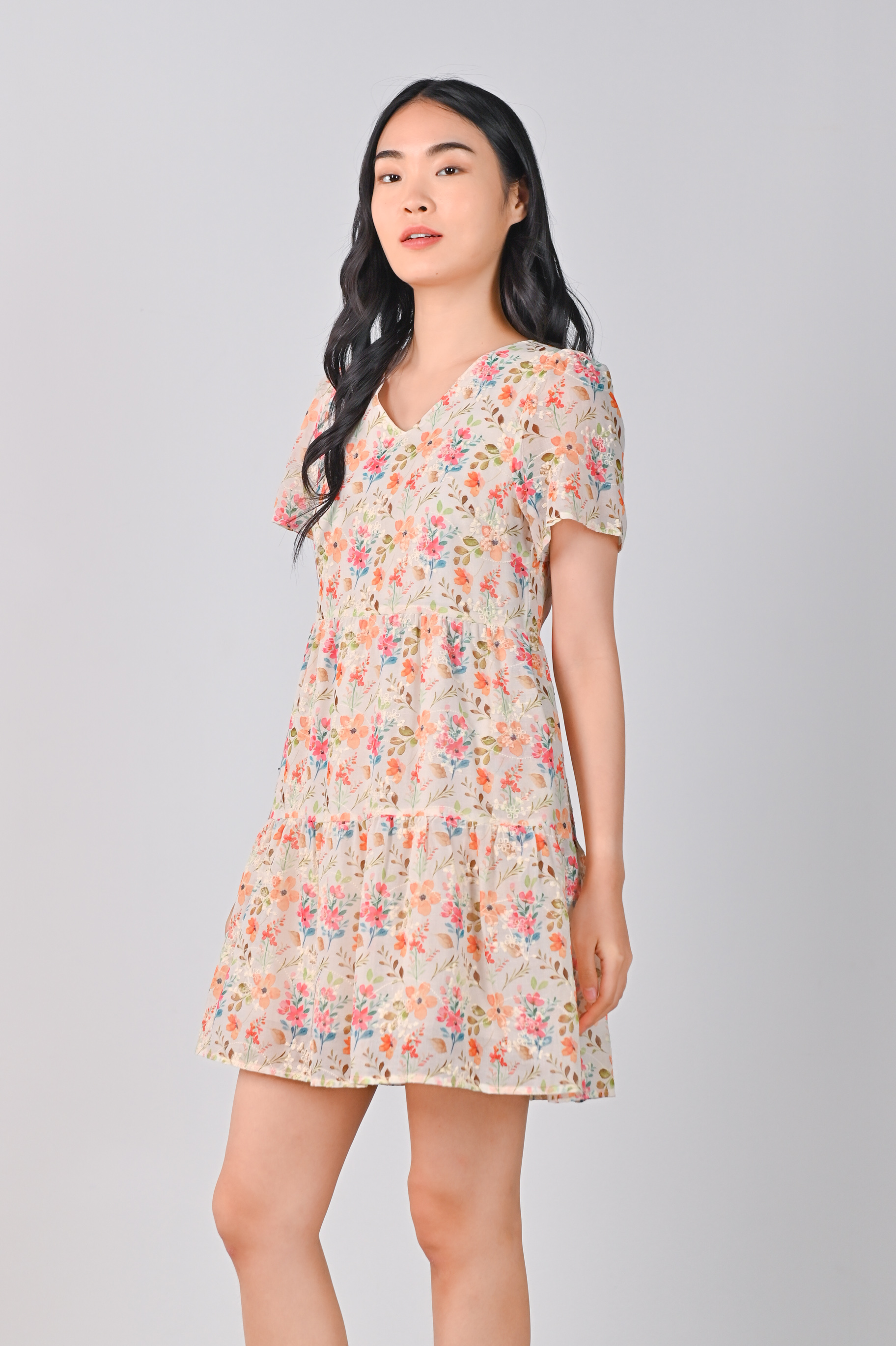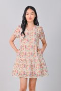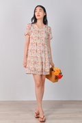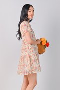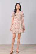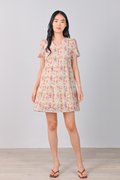 ELISA ORANGE FLORAL V-NECK BABYDOLL DRESS