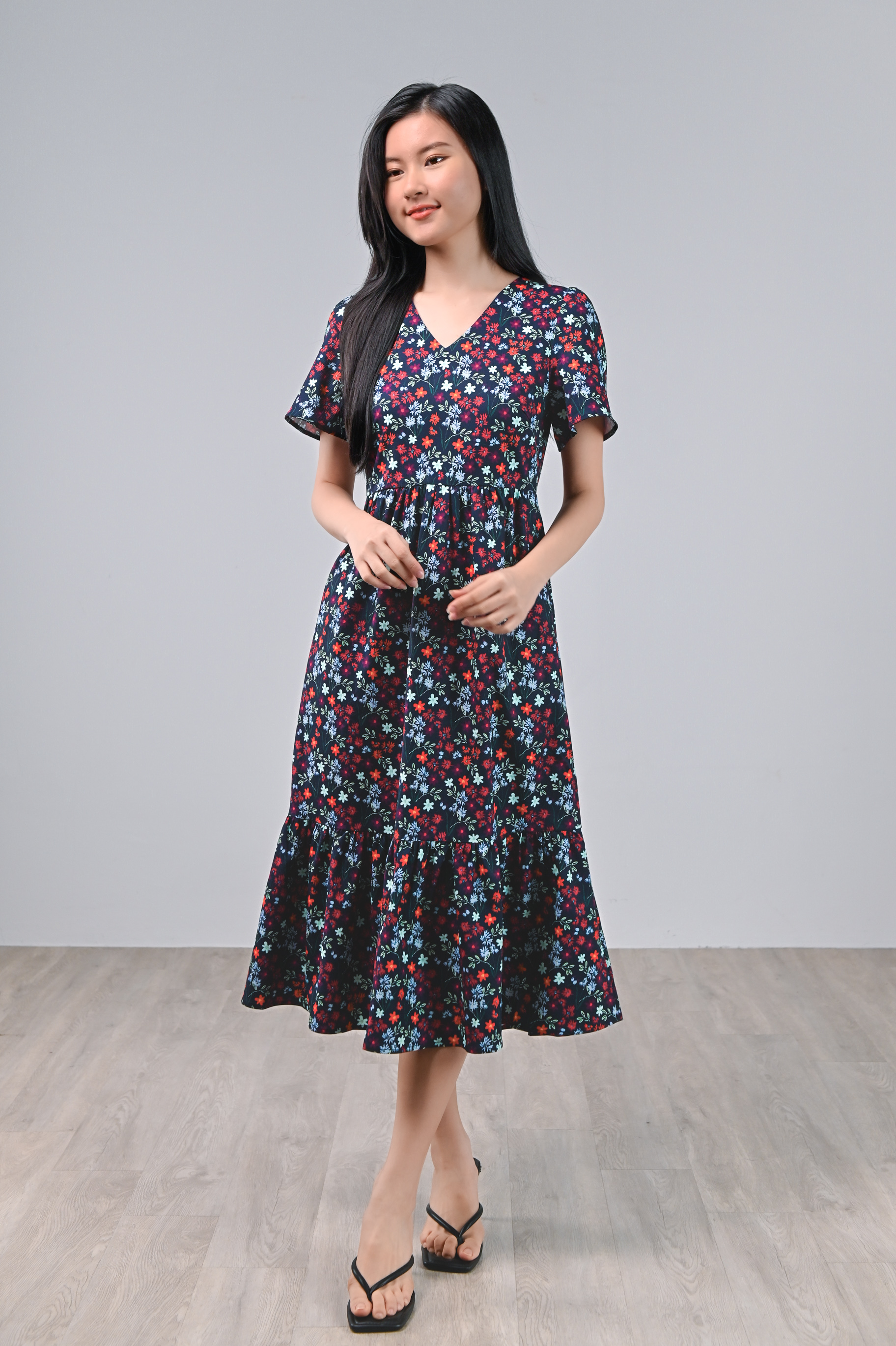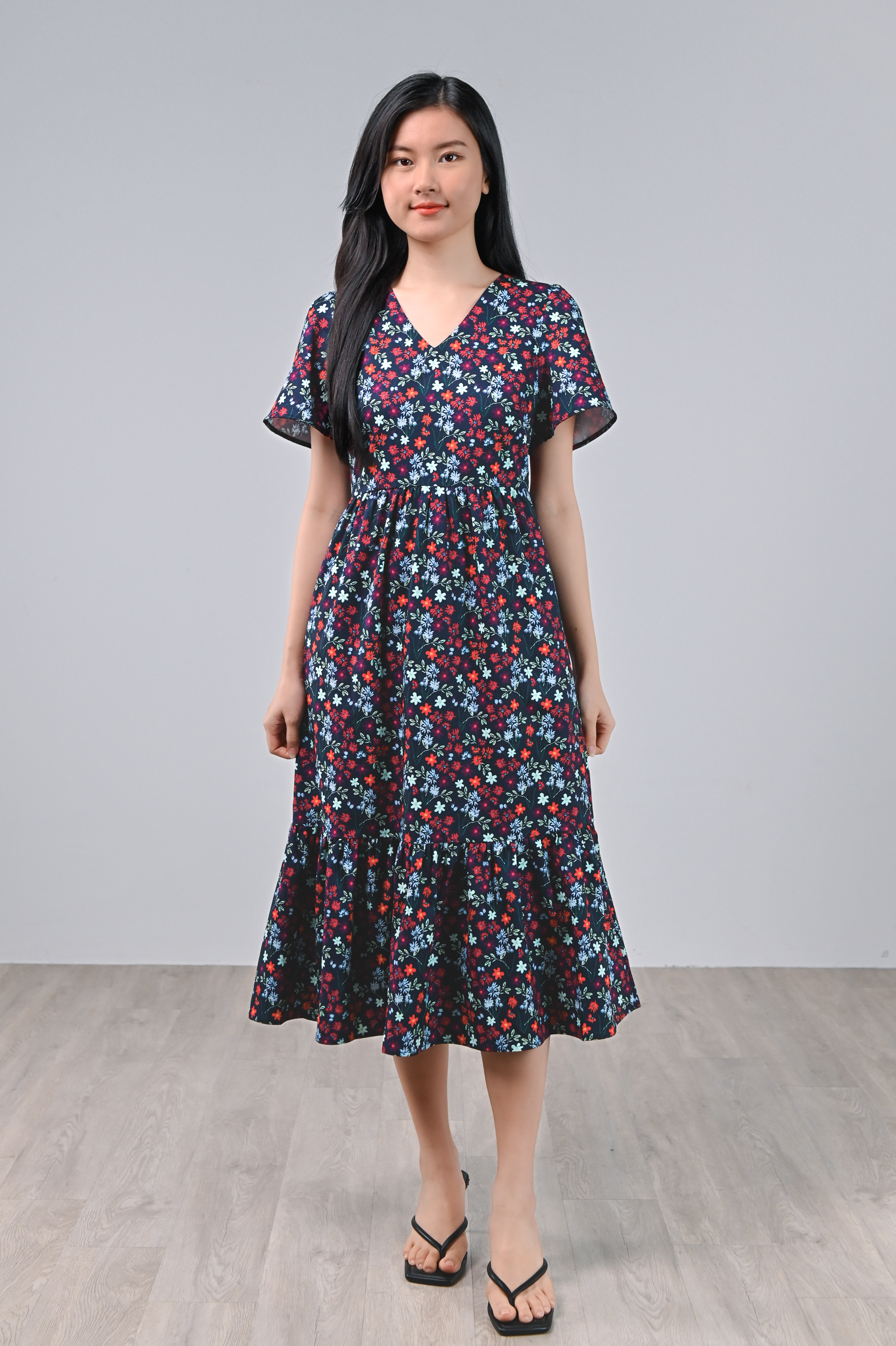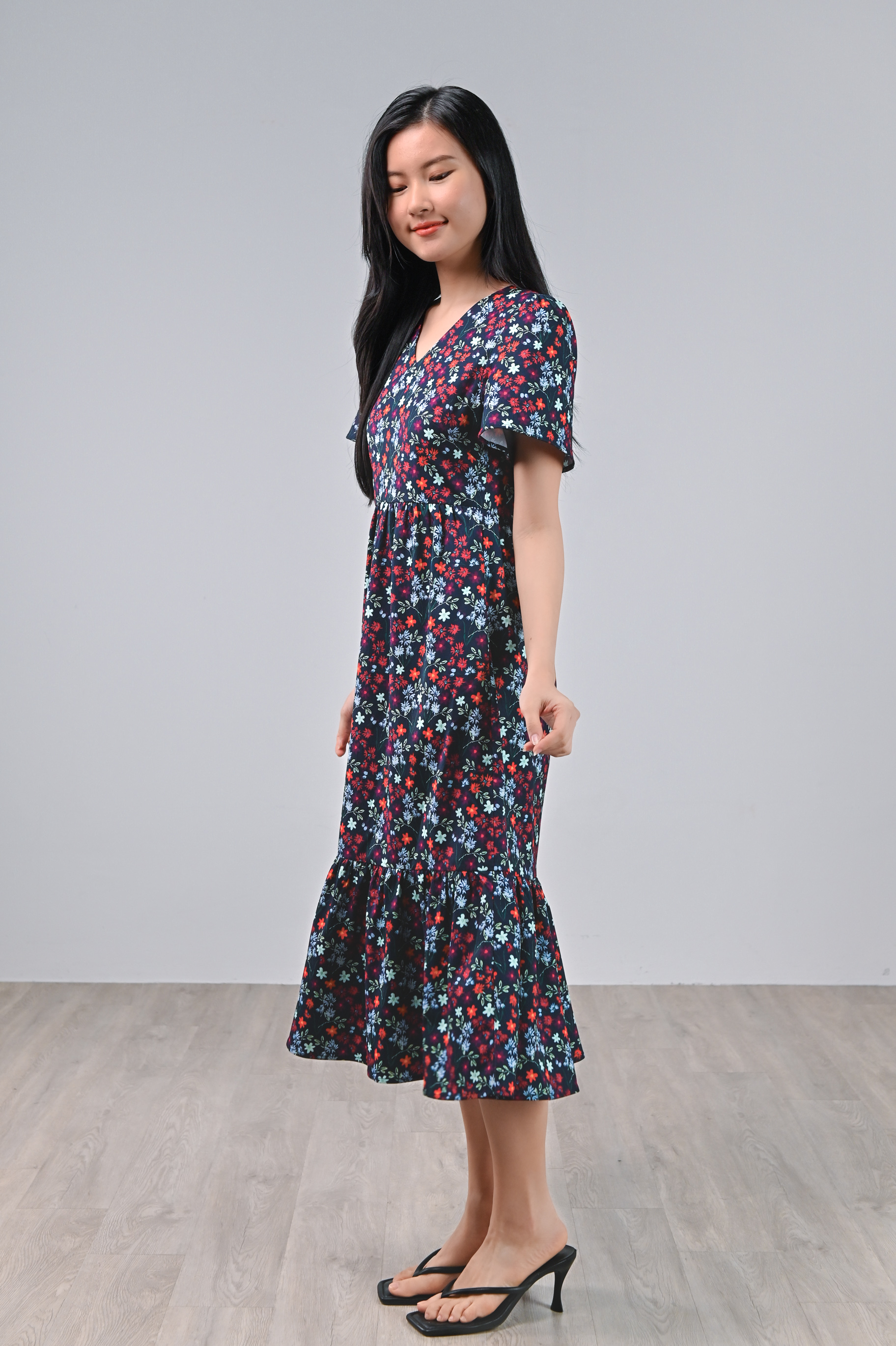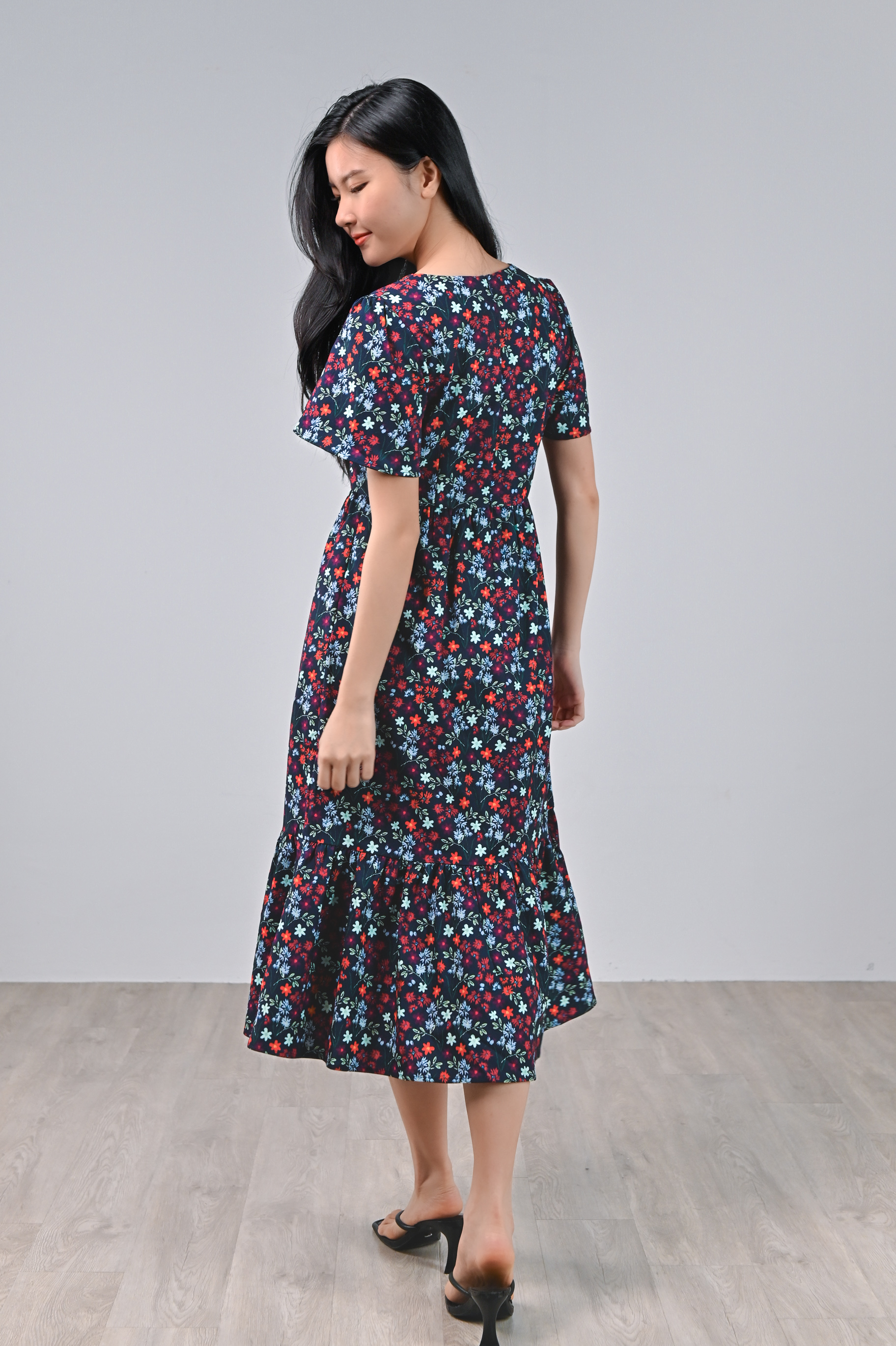 ELYSIAN BLOOMS SLEEVED TIERED MIDI DRESS