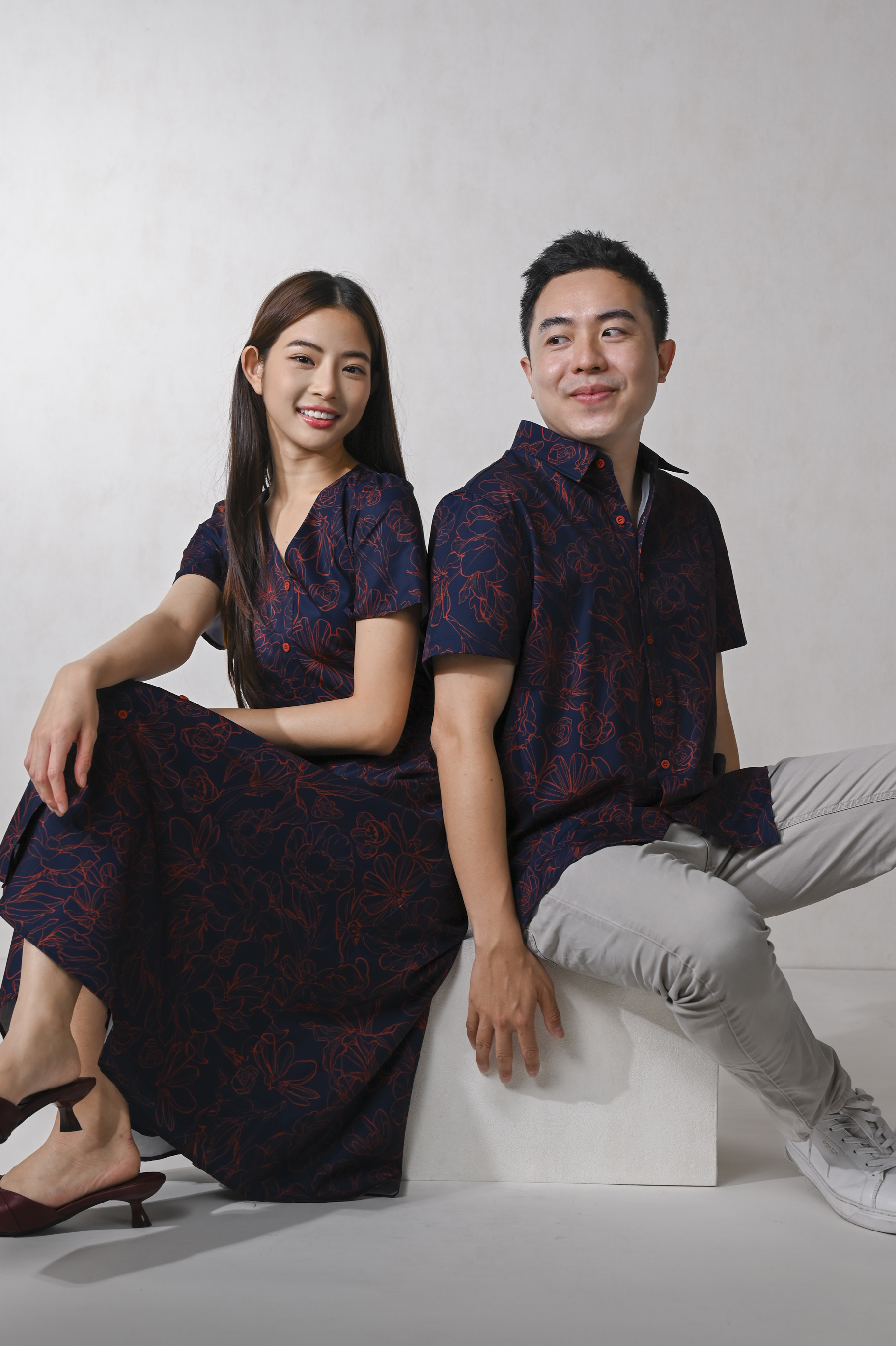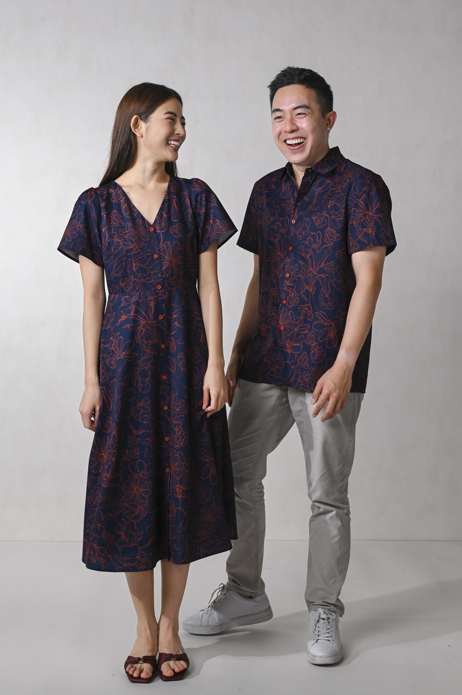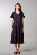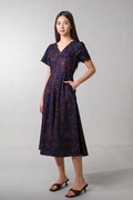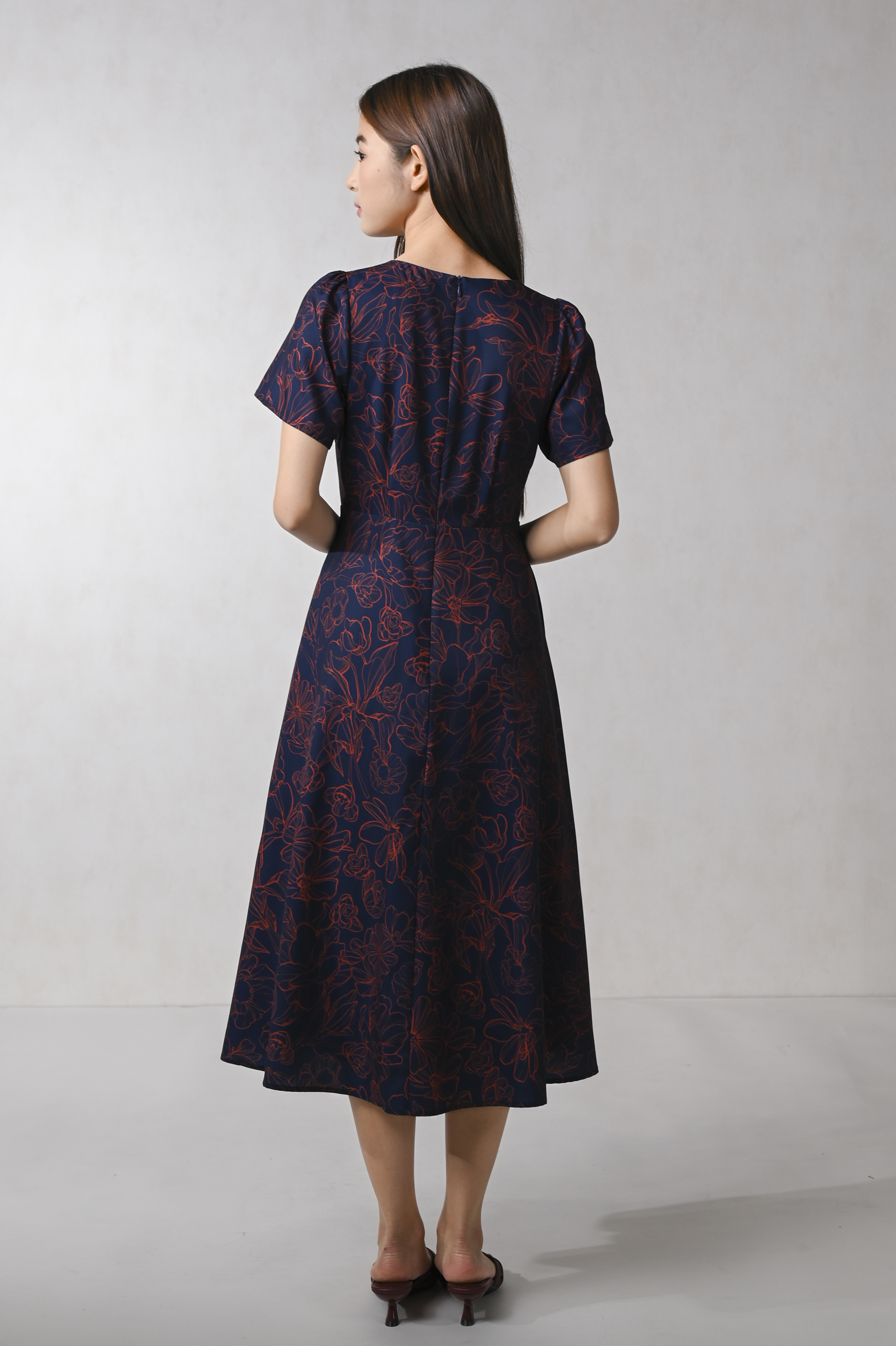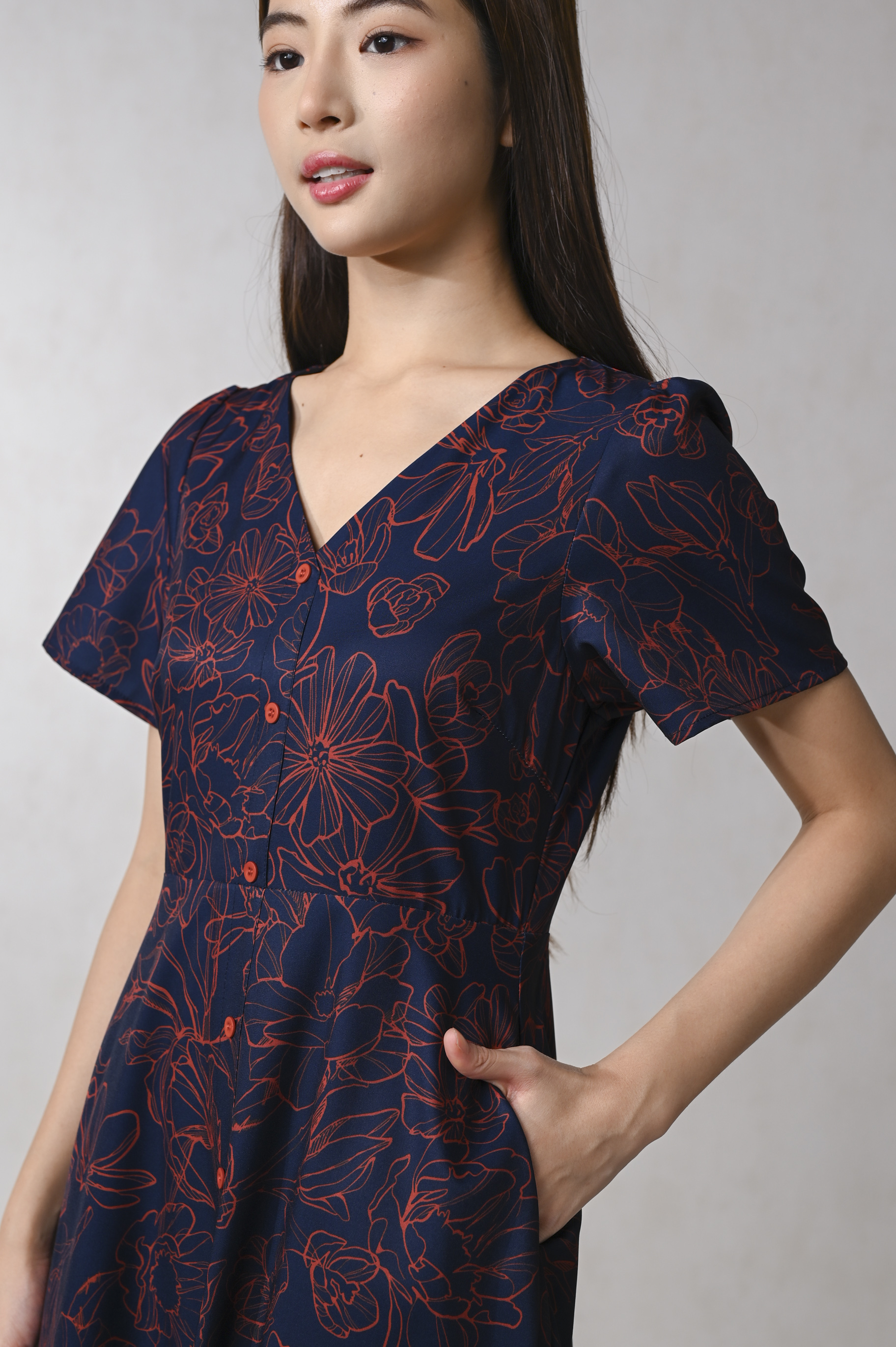 EMBER GLOW SLEEVED BUTTON MIDI DRESS