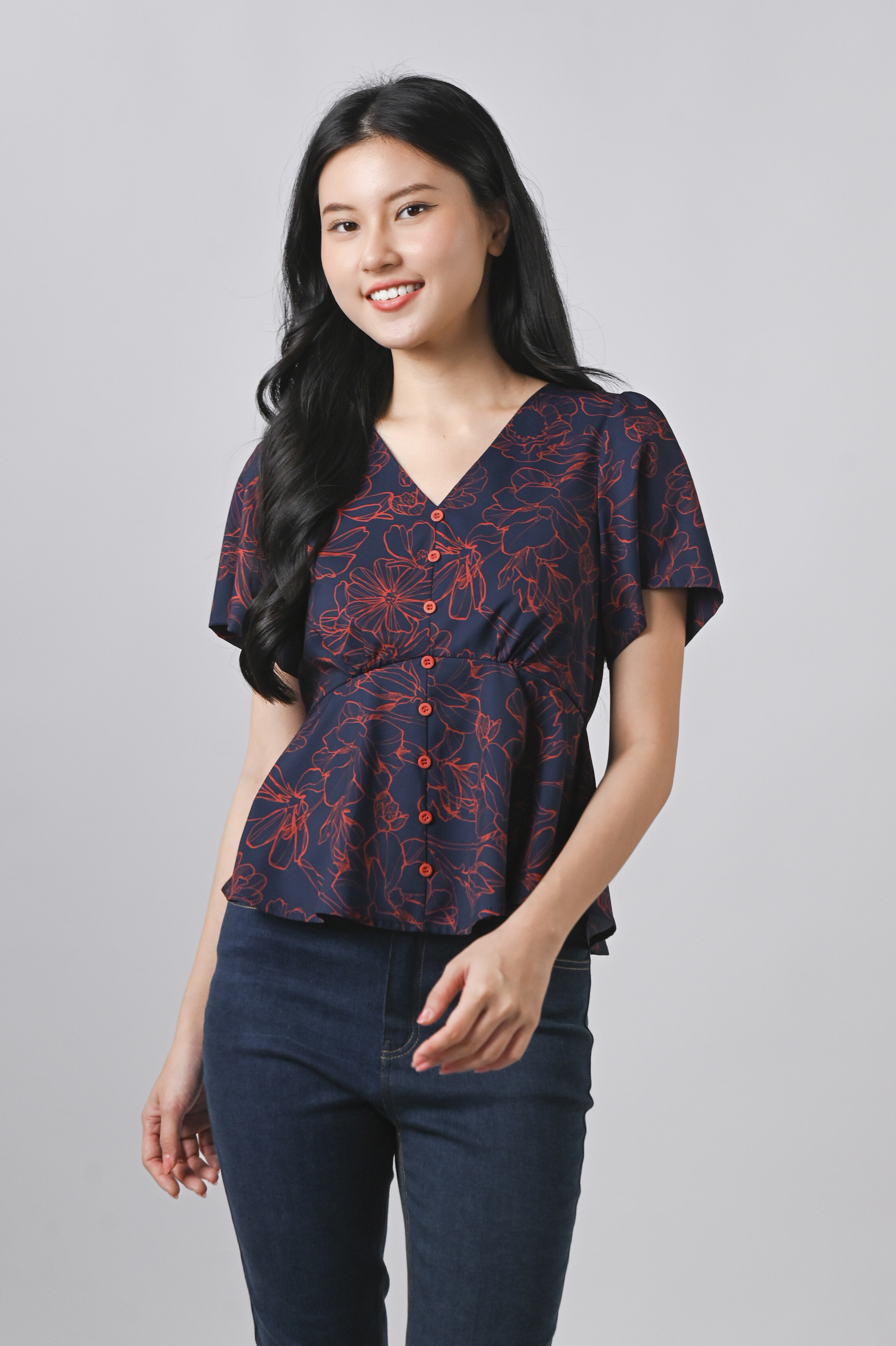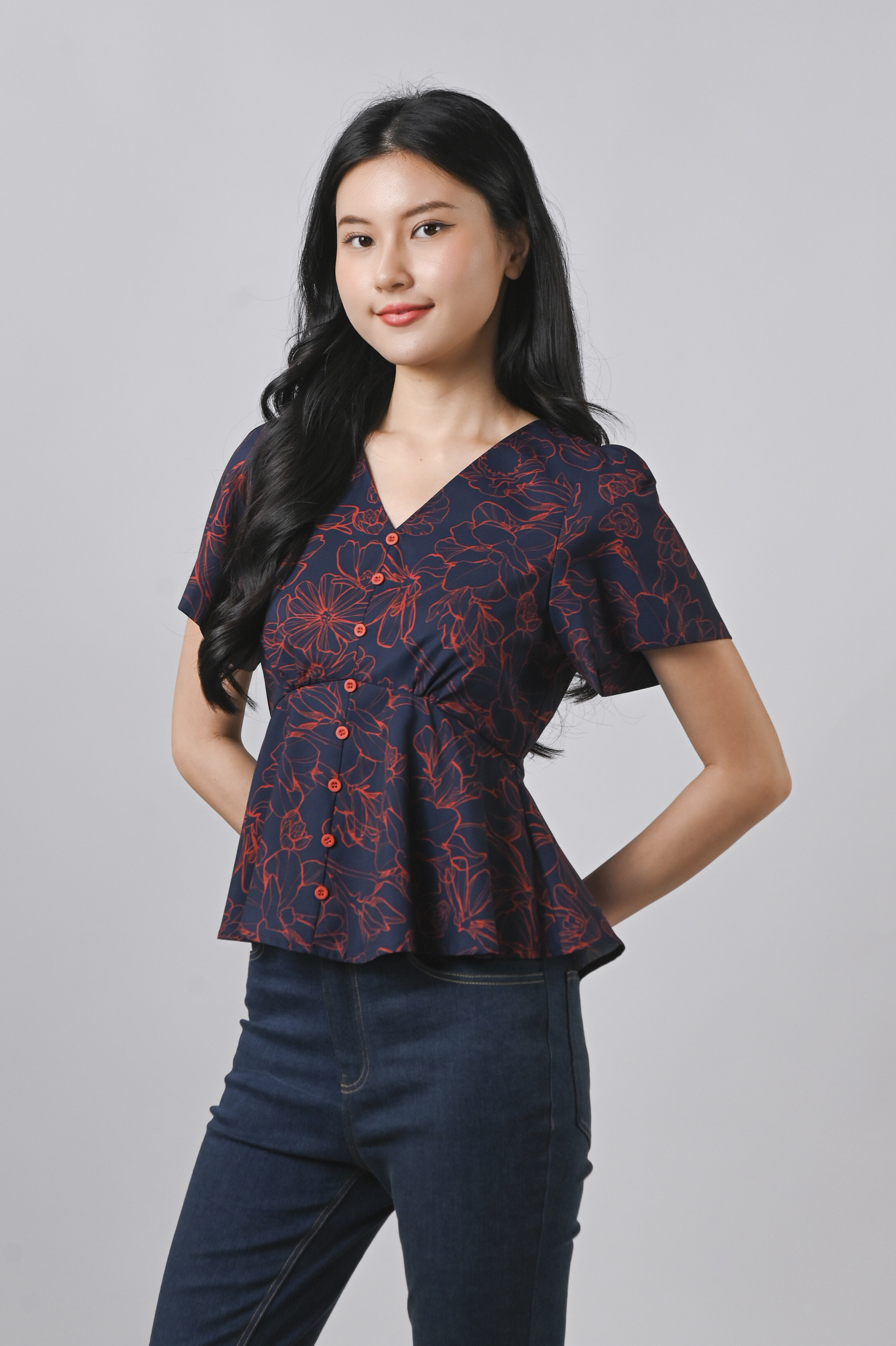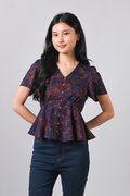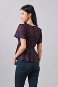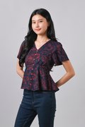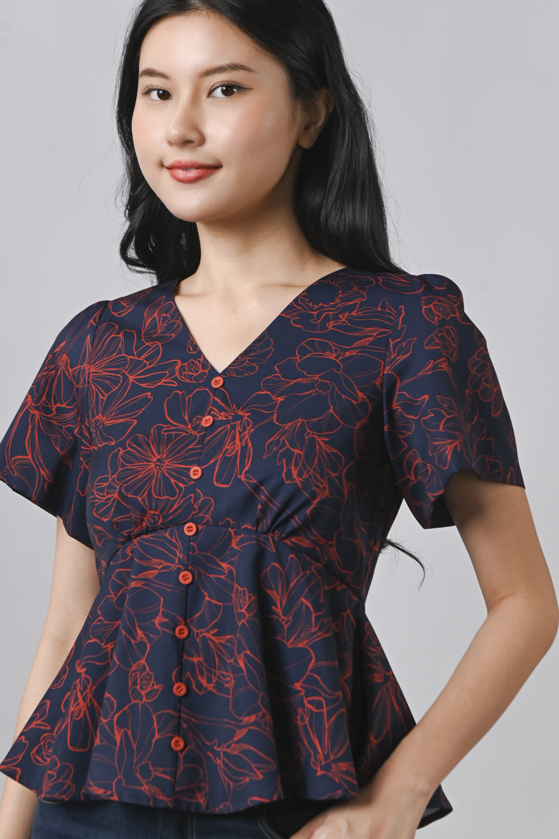 EMBER GLOW SLEEVED BUTTON PEPLUM TOP