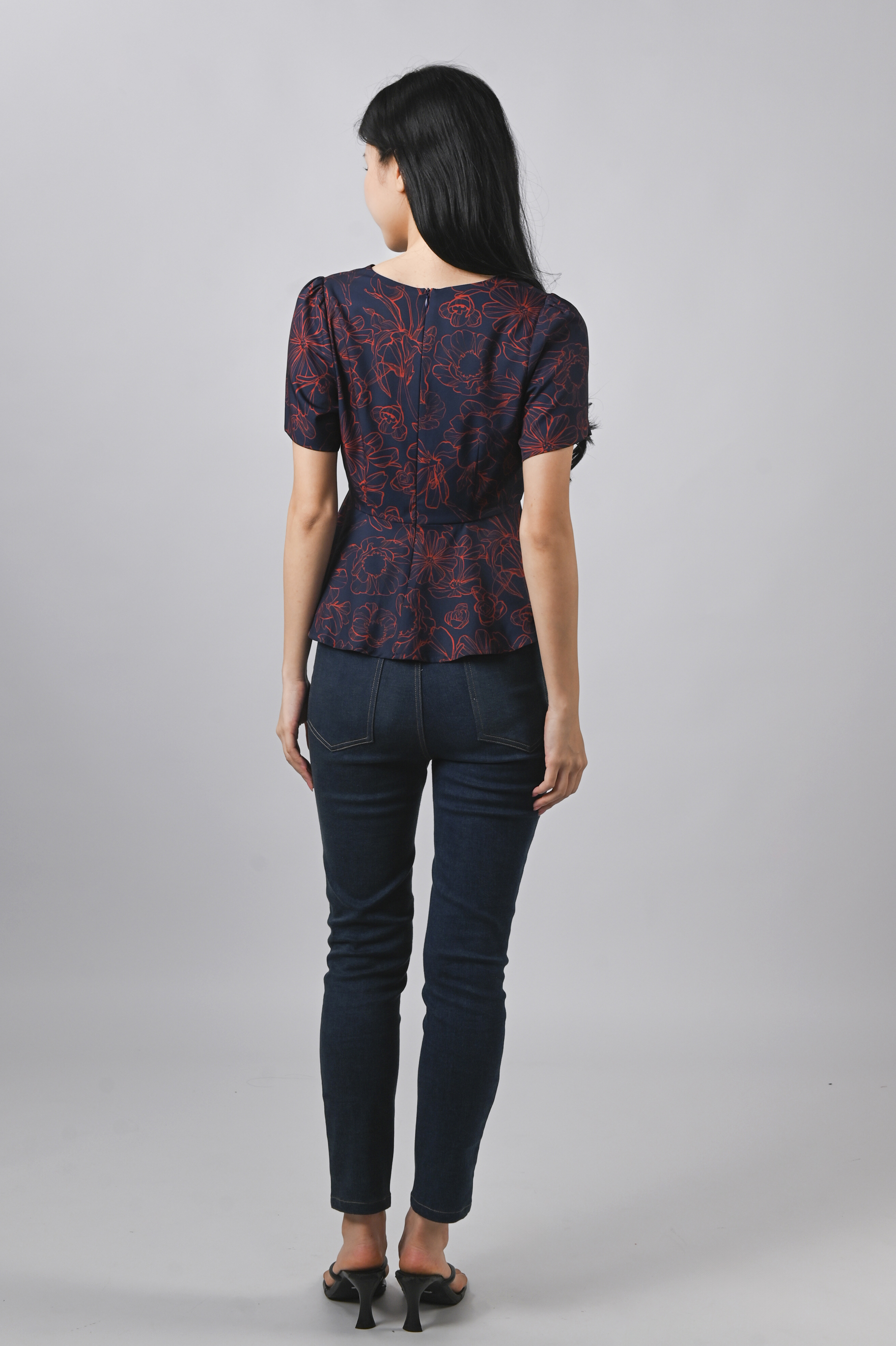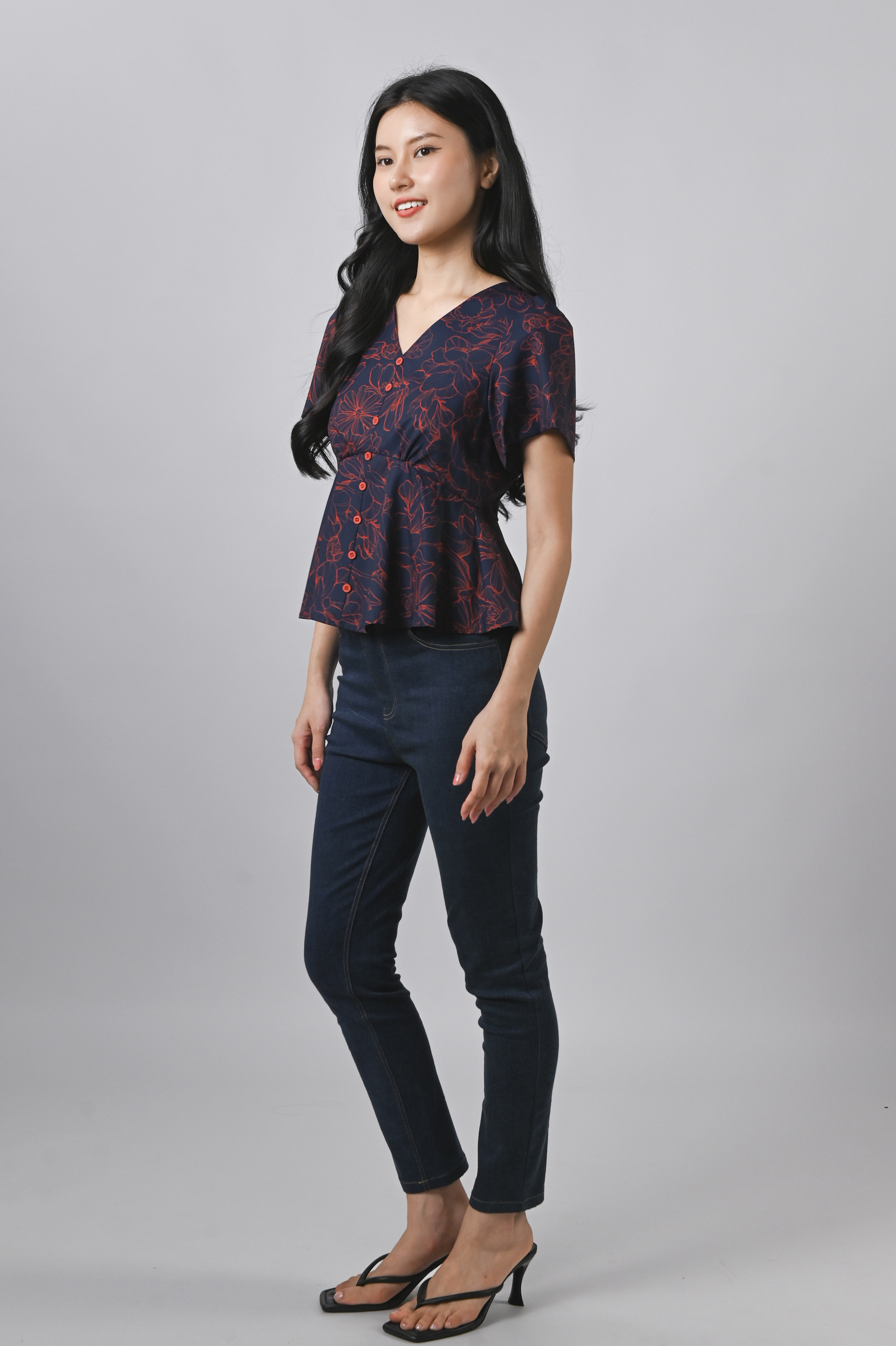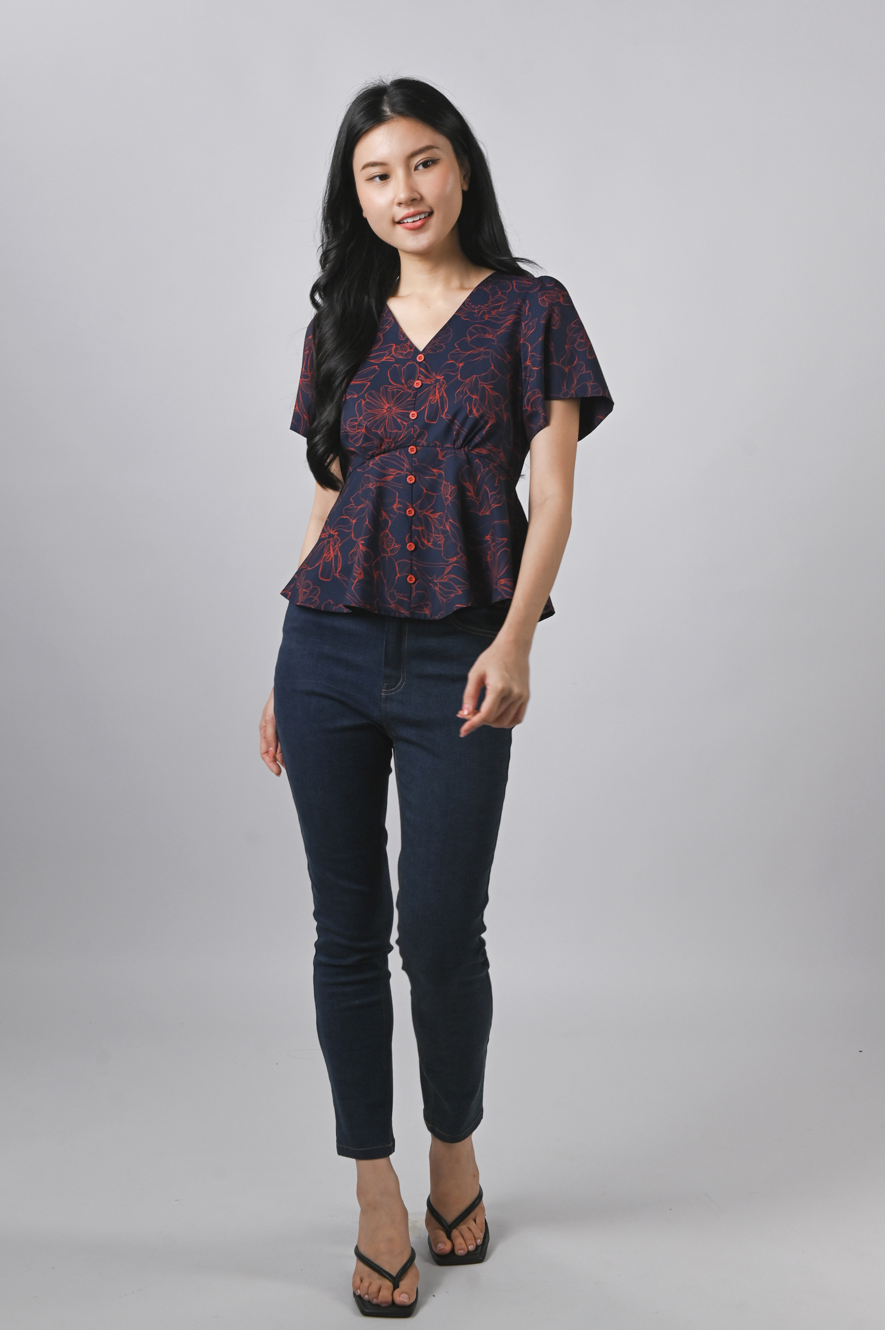 EMBER GLOW SLEEVED BUTTON PEPLUM TOP