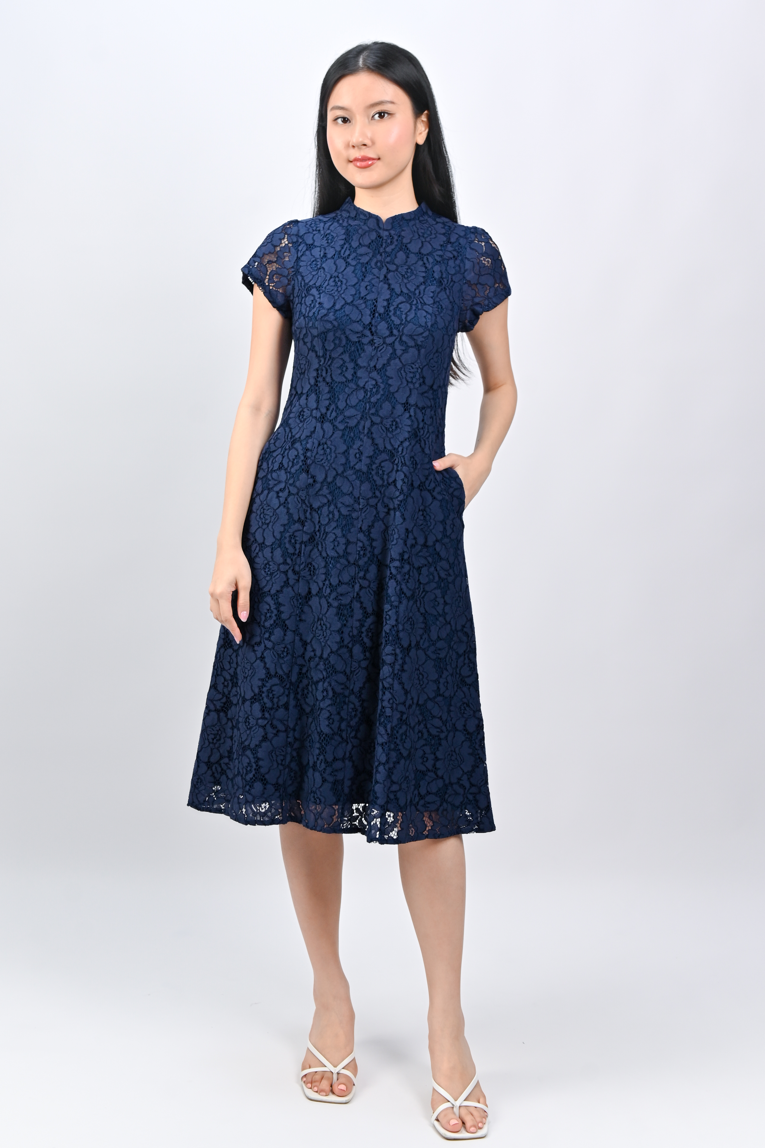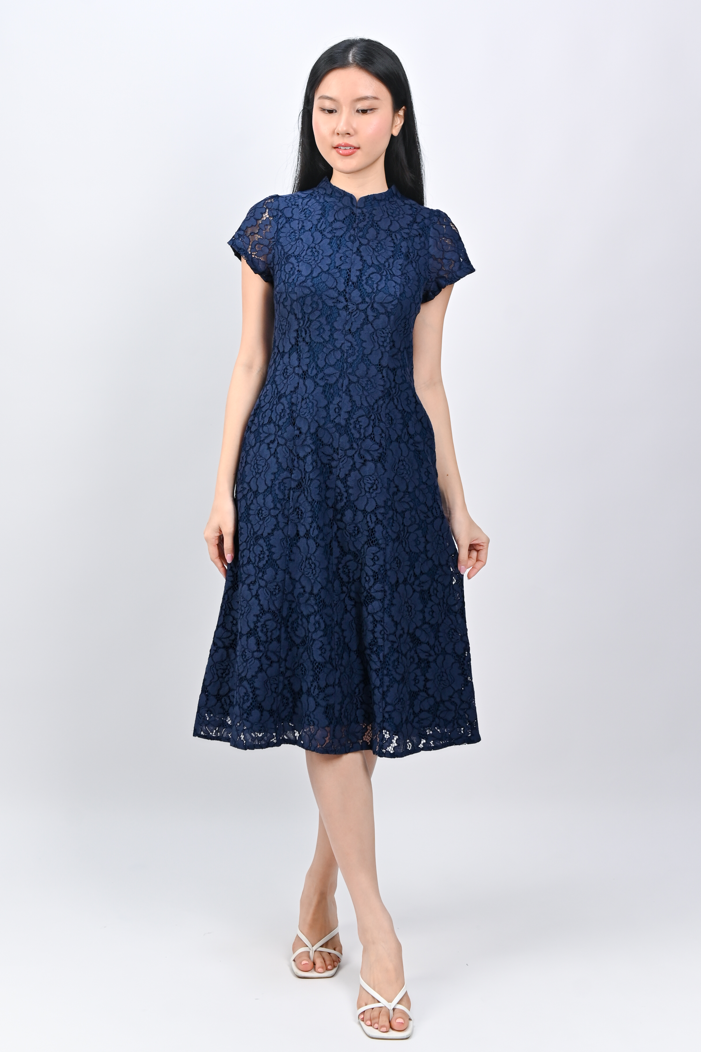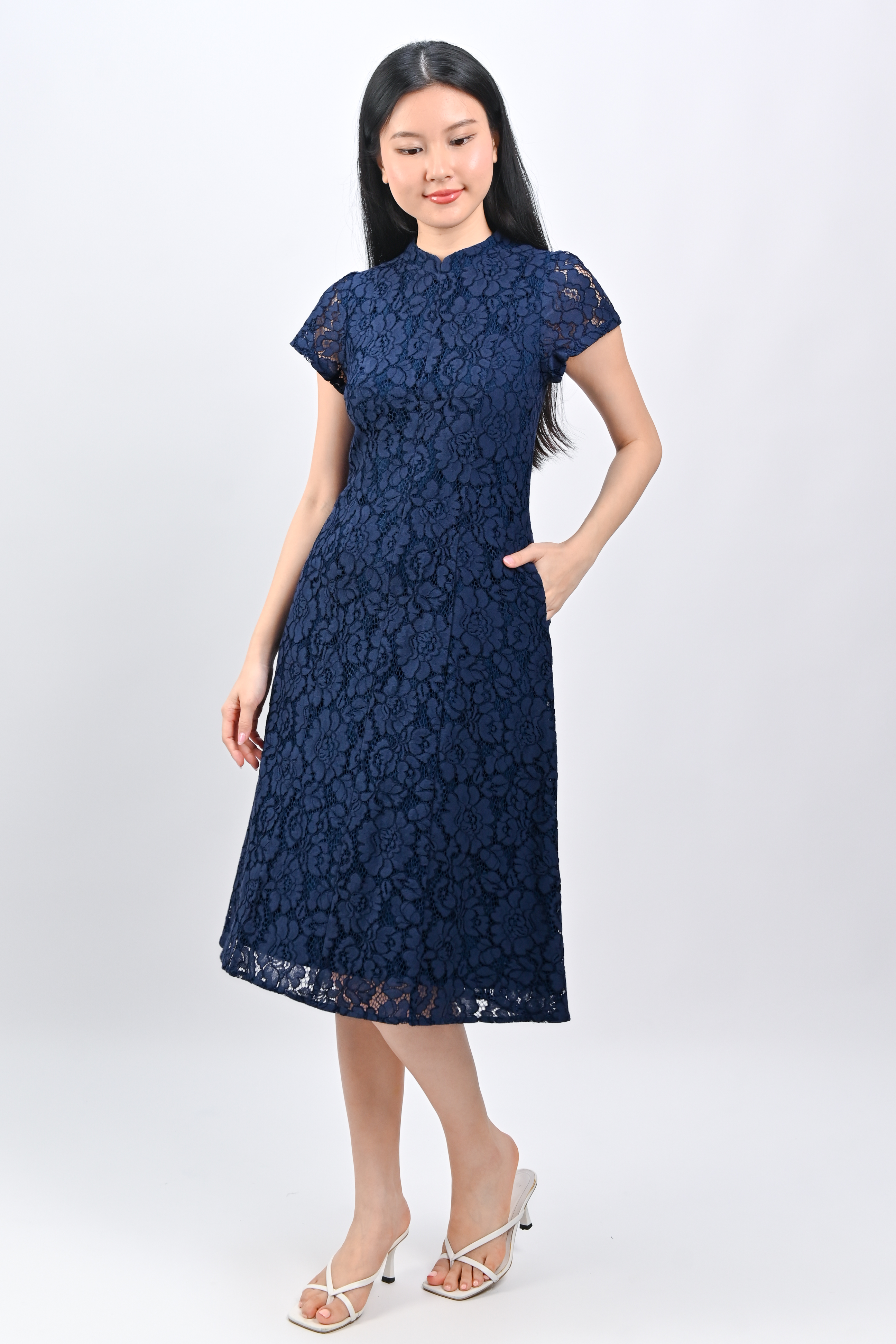 ENCI NAVY LACE SLEEVED CHEONGSAM DRESS