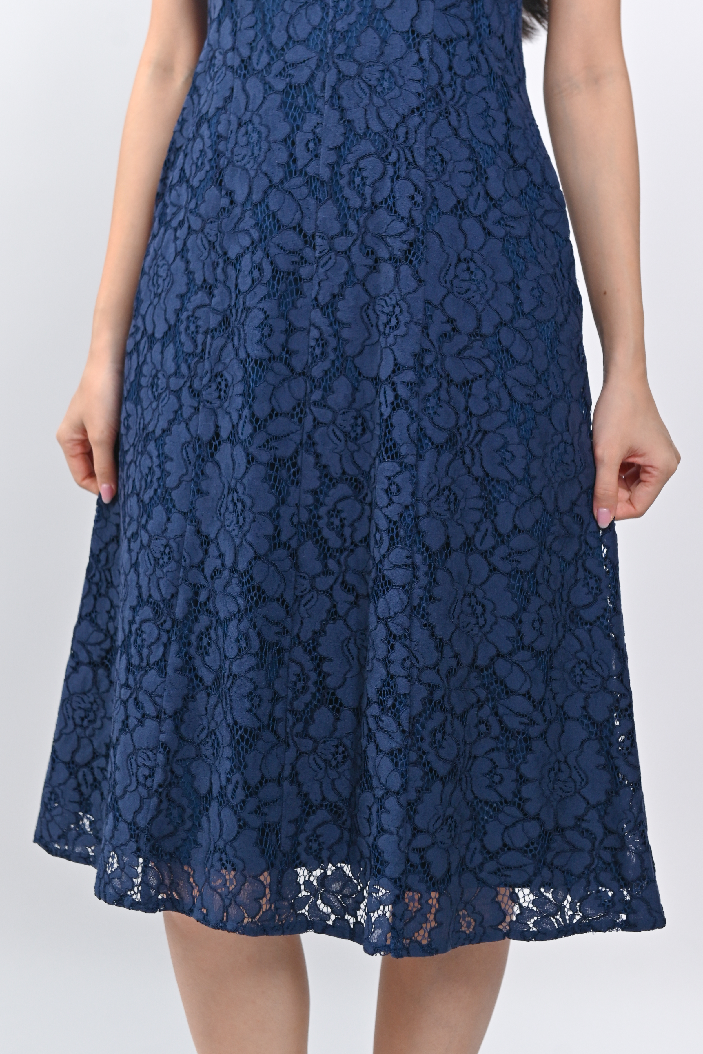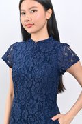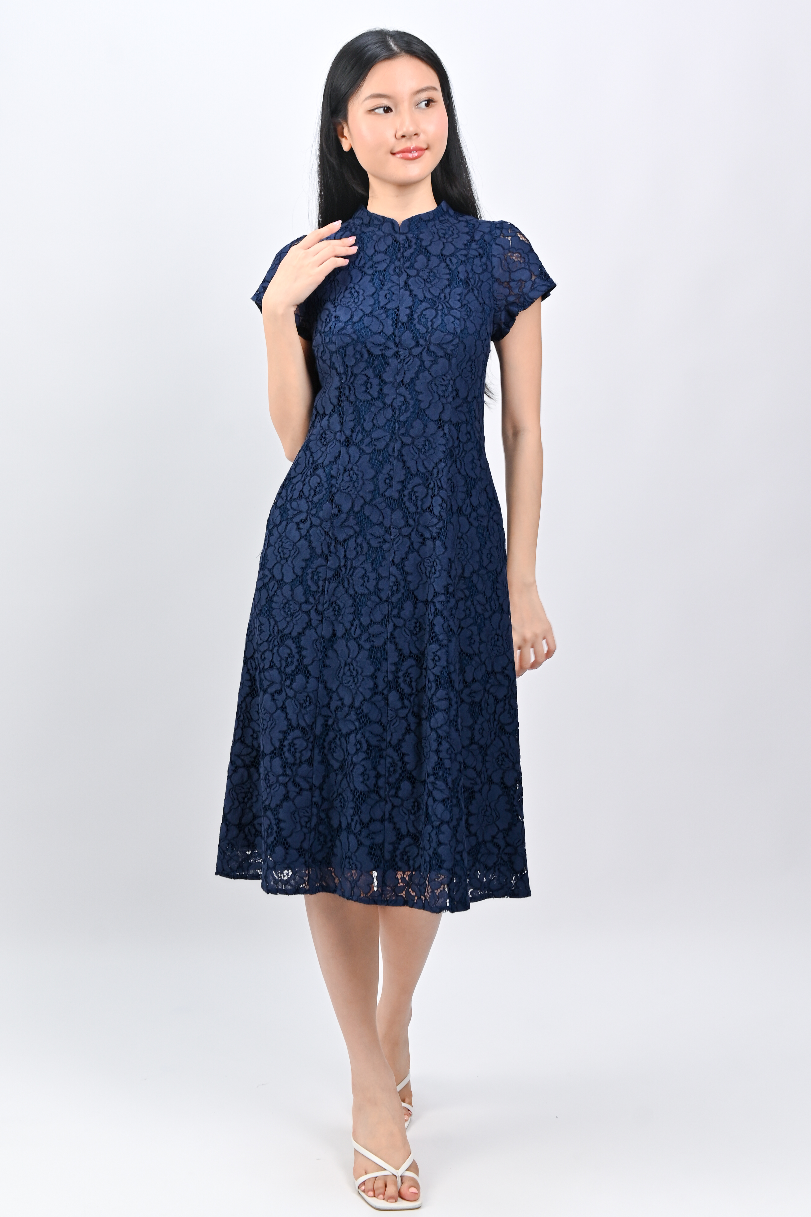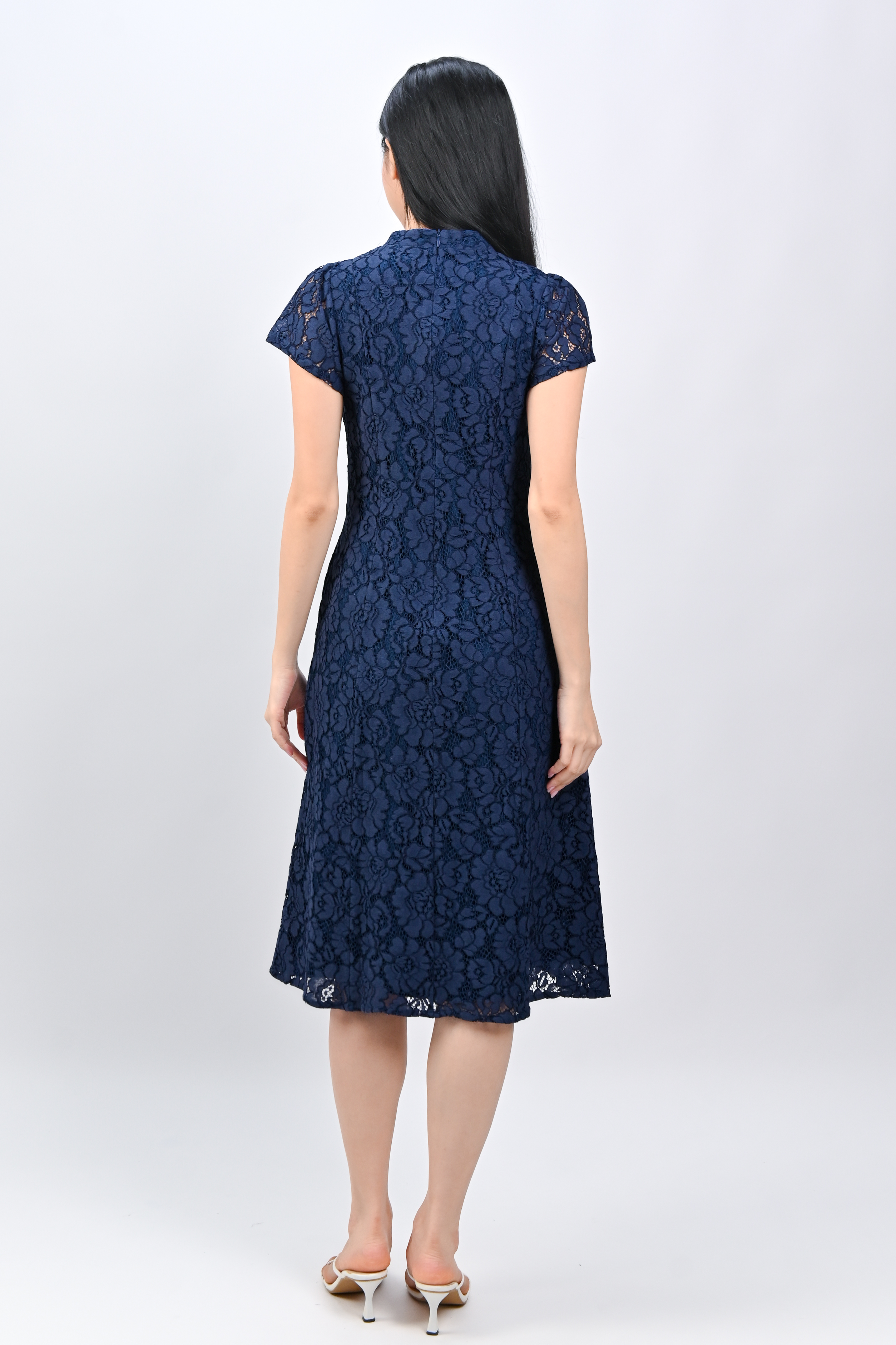 ENCI NAVY LACE SLEEVED CHEONGSAM DRESS