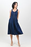 EVANGELYS DENIM-LOOK ZIPPER DRESS IN DARK BLUE