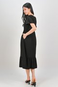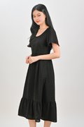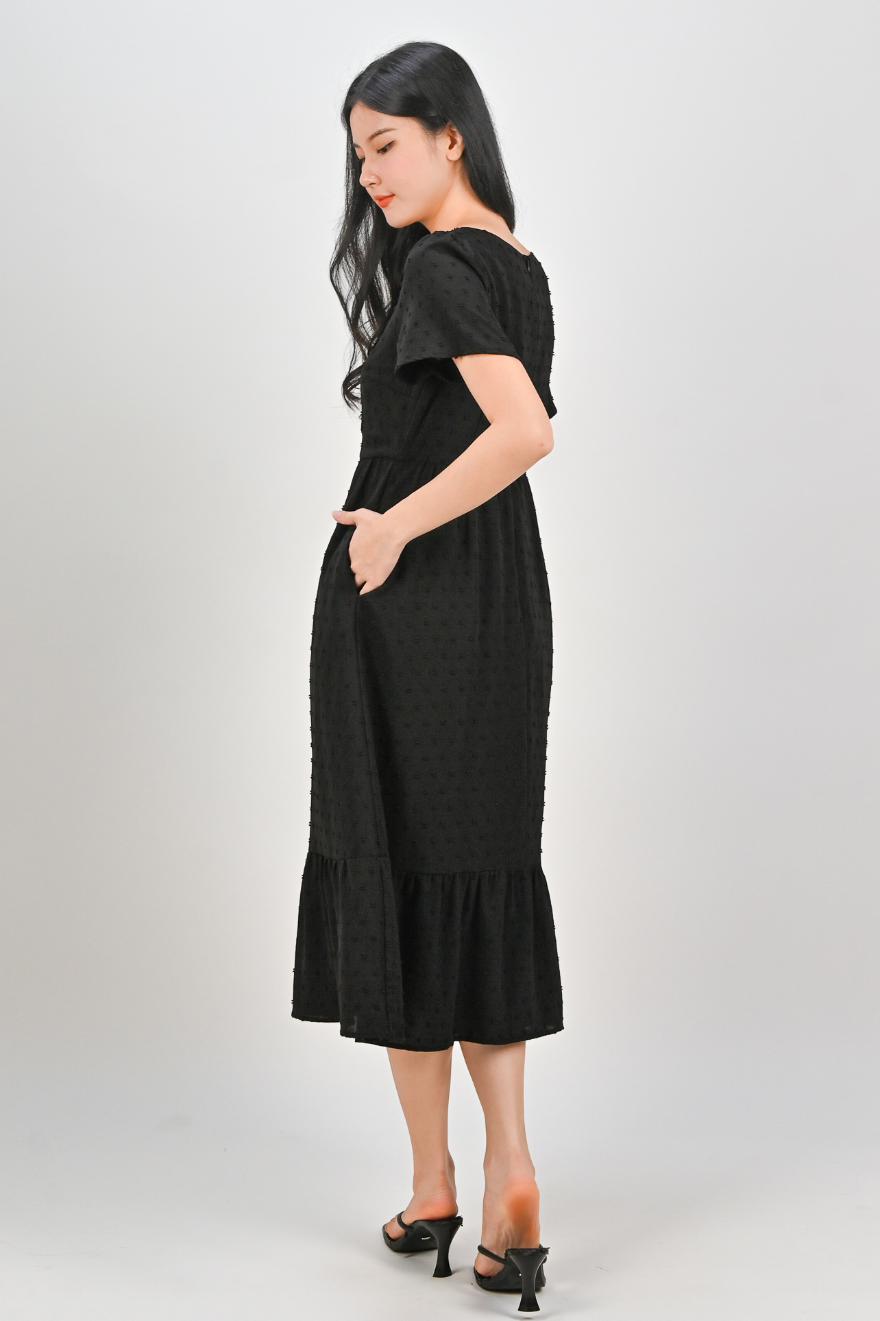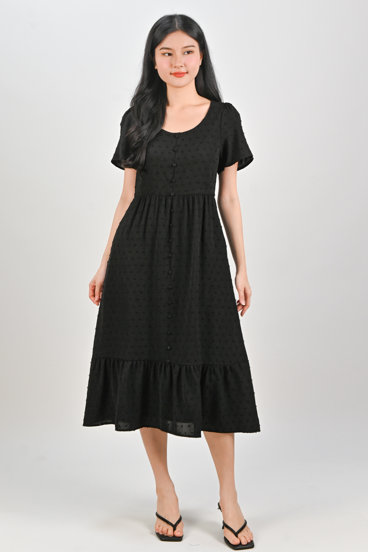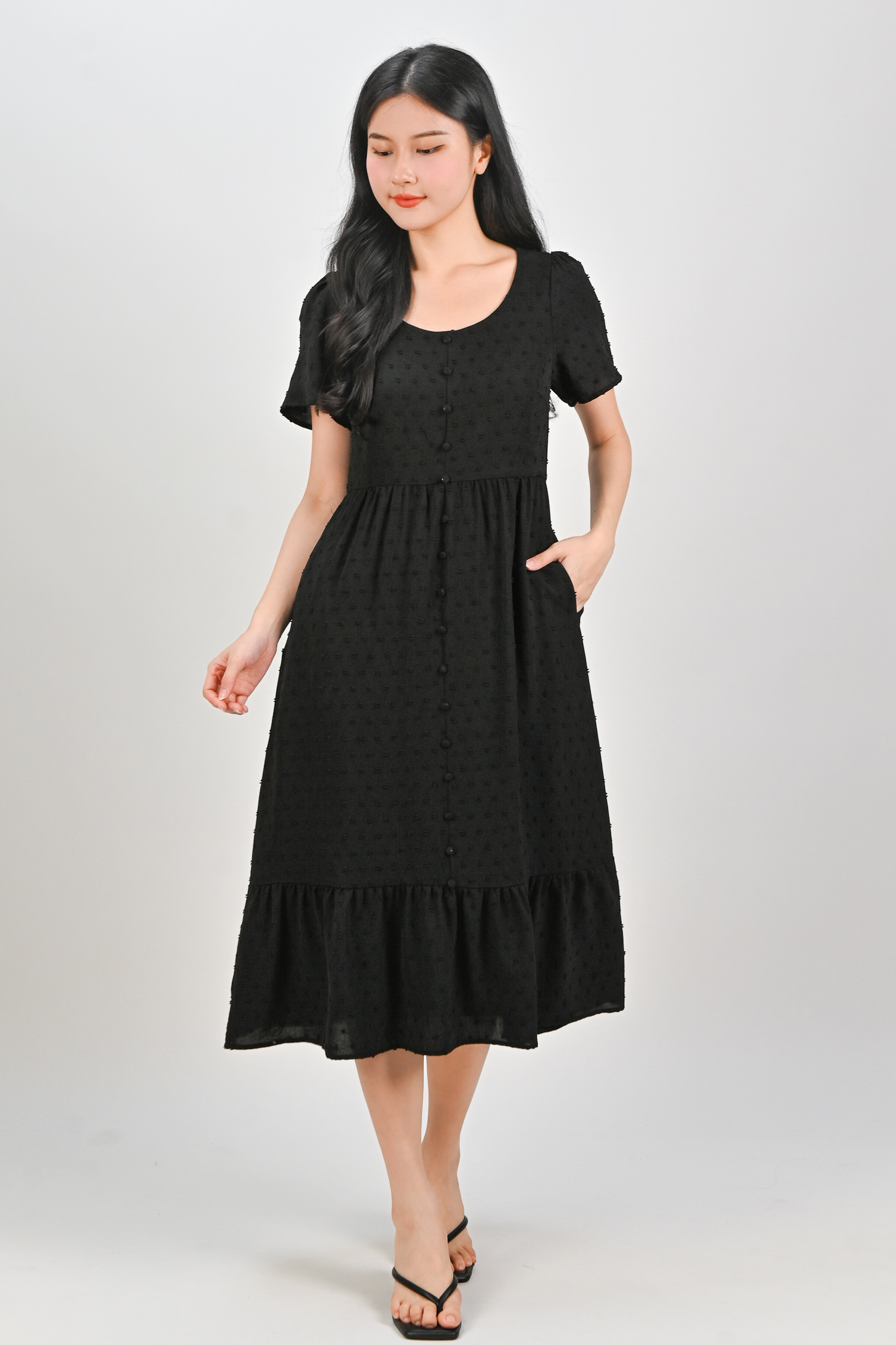 EVIENNE DOTTY SCOOP-NECK SLEEVED DRESS IN BLACK