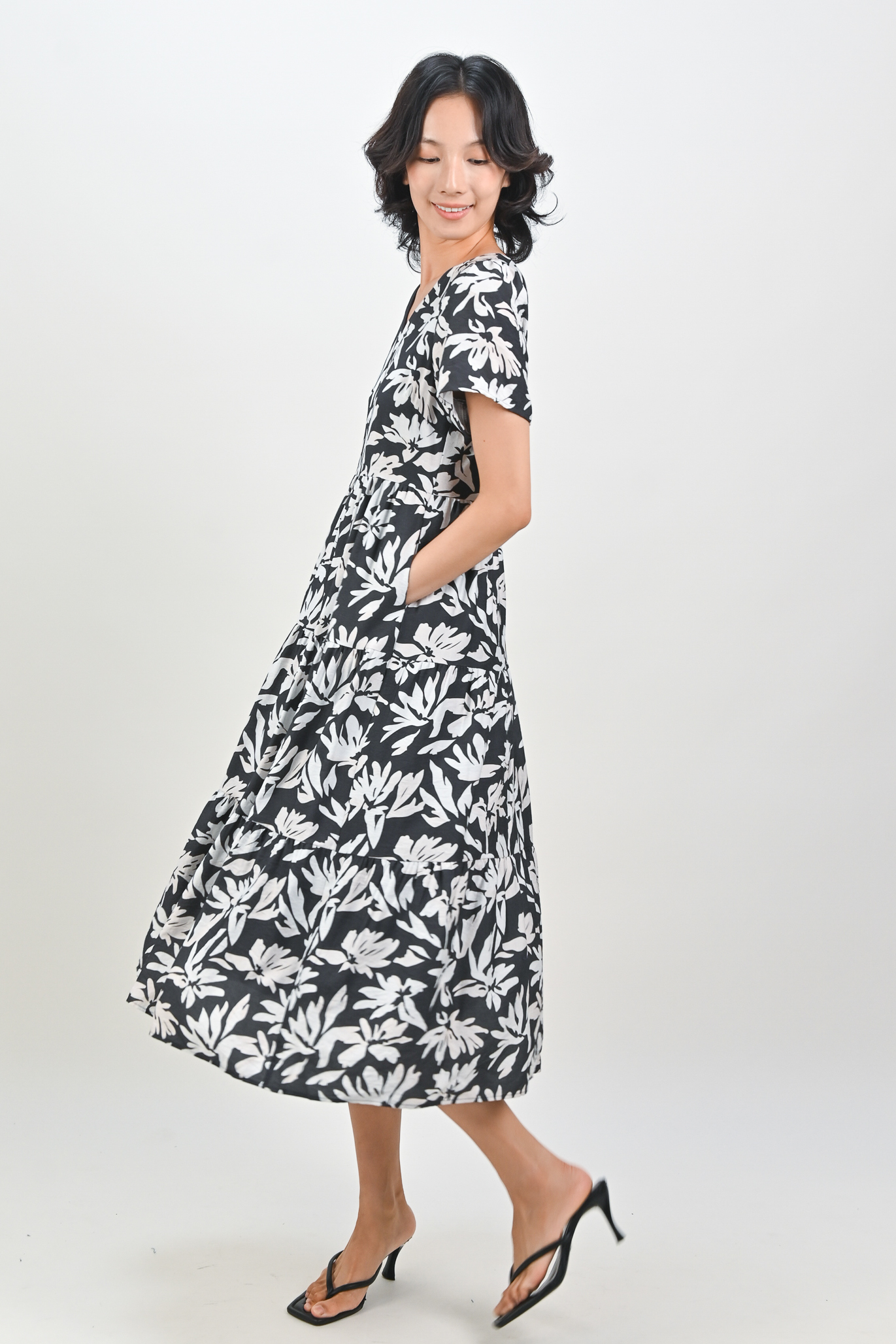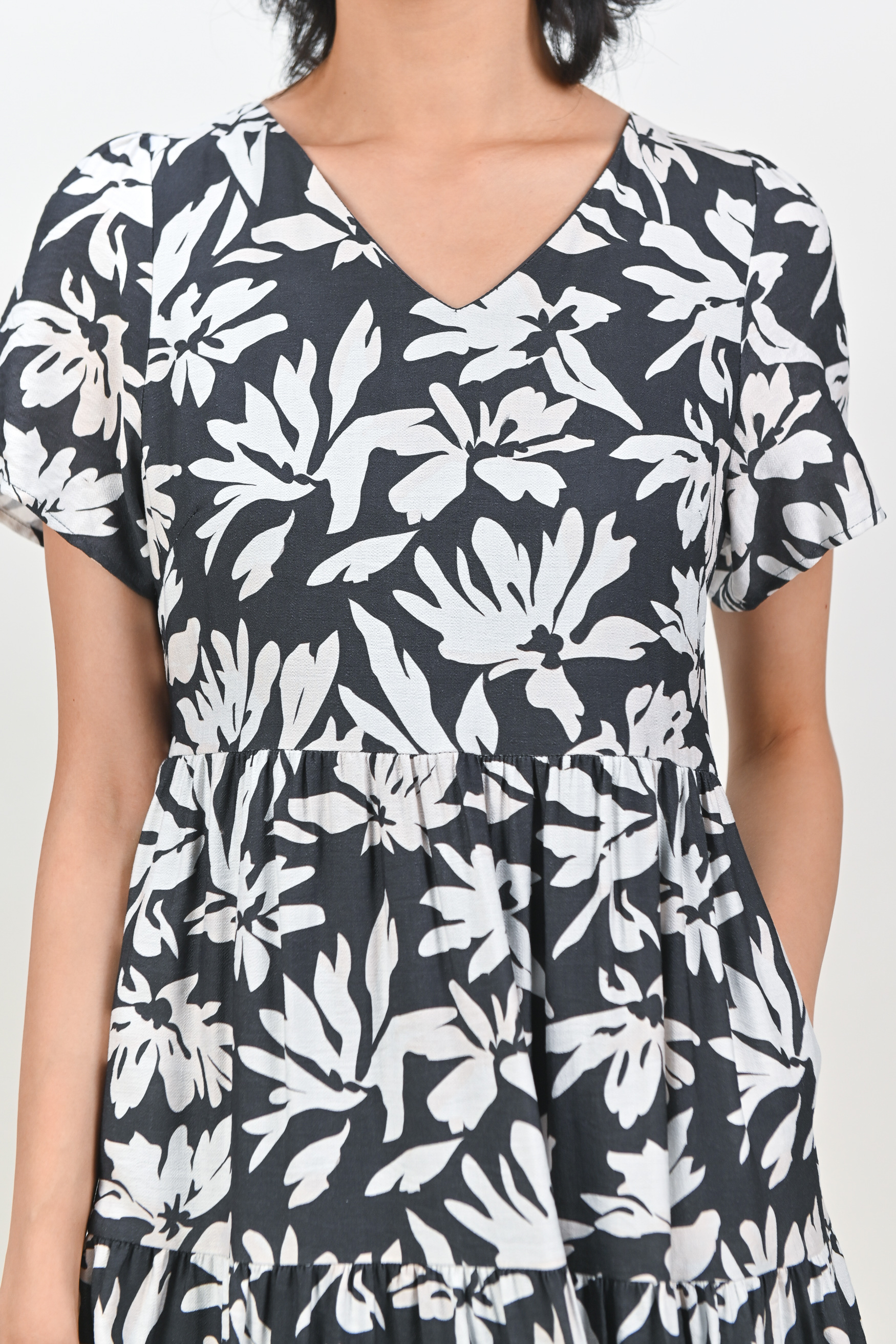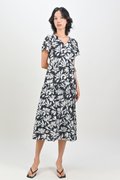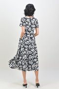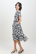 FAYARA GUNMETAL V-NECK SLEEVED TIERED MIDAXI DRESS