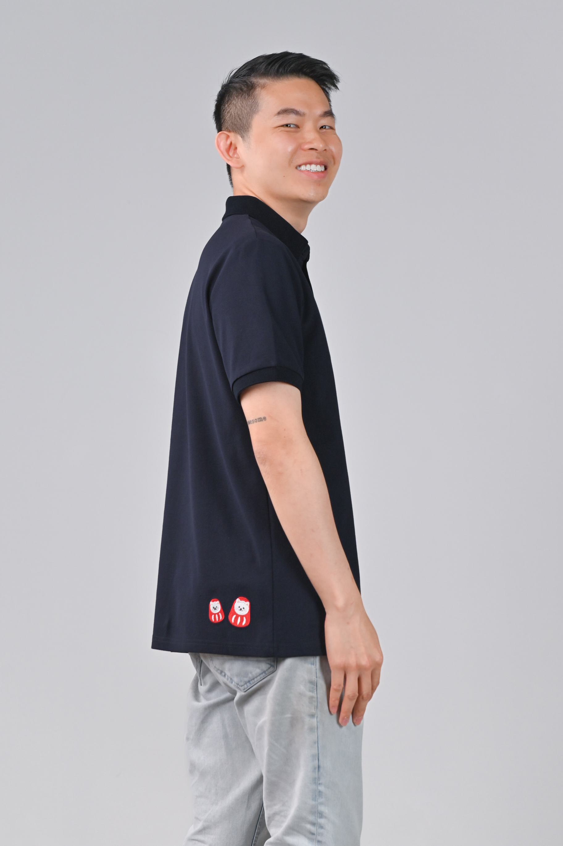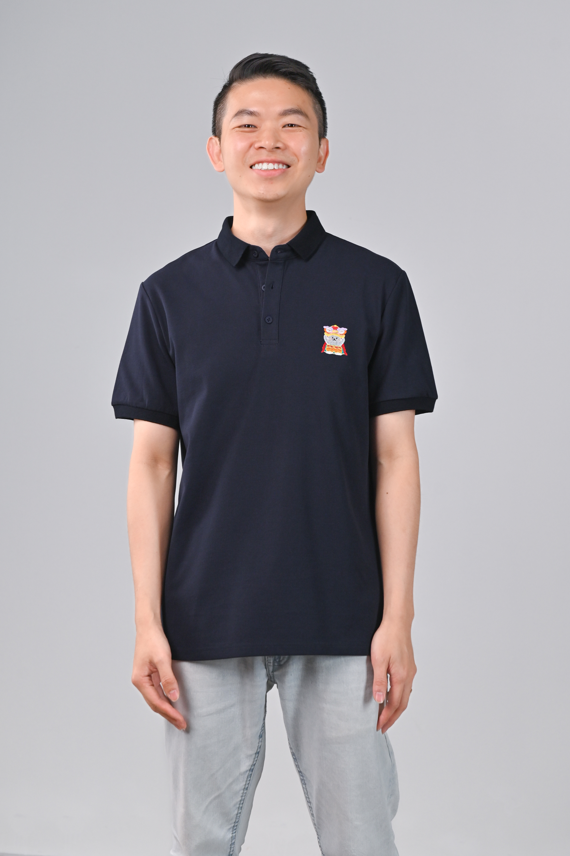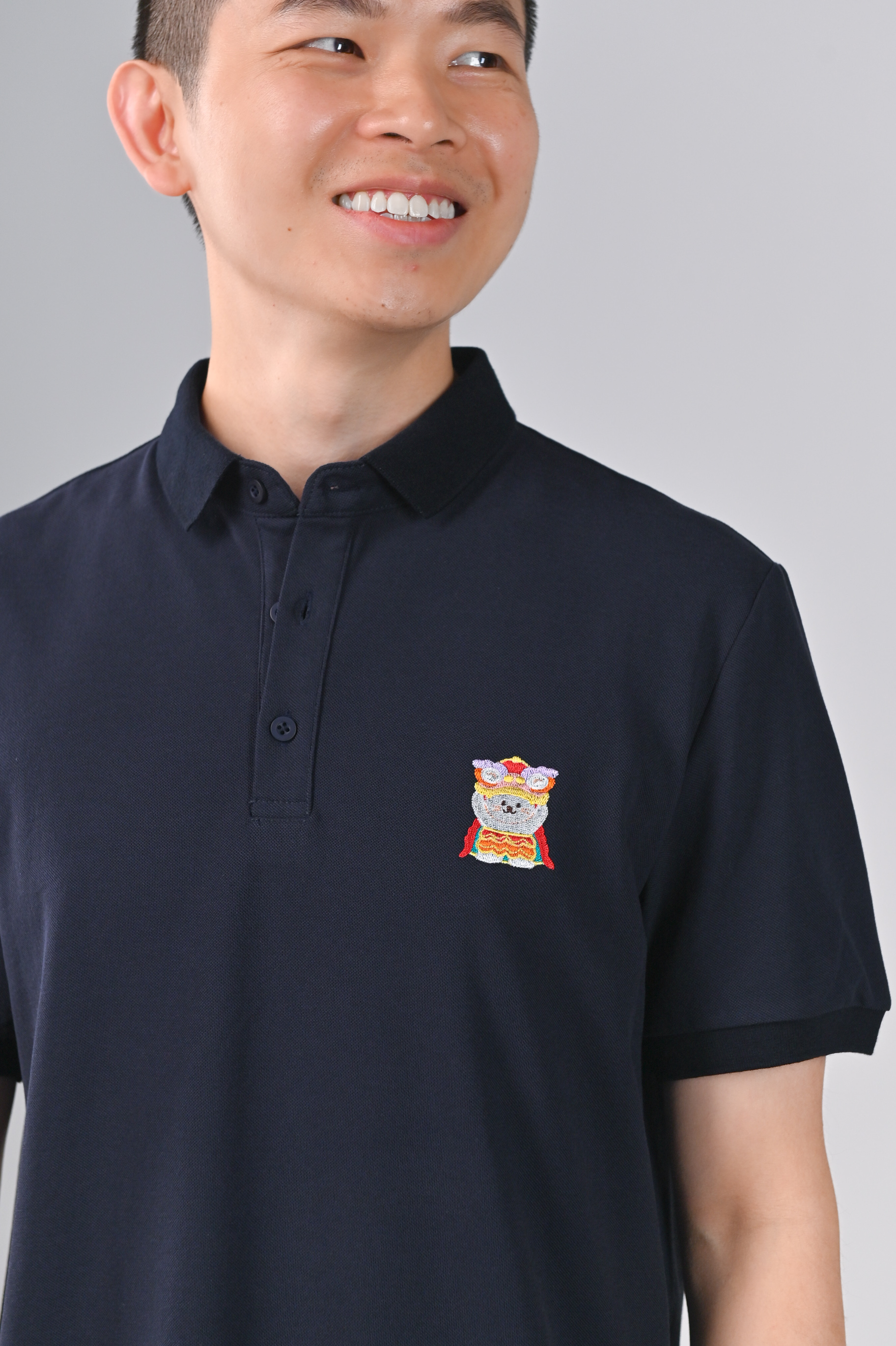FESTIVE FORTUNE CAT NAVY EMB. POLO SHIRT