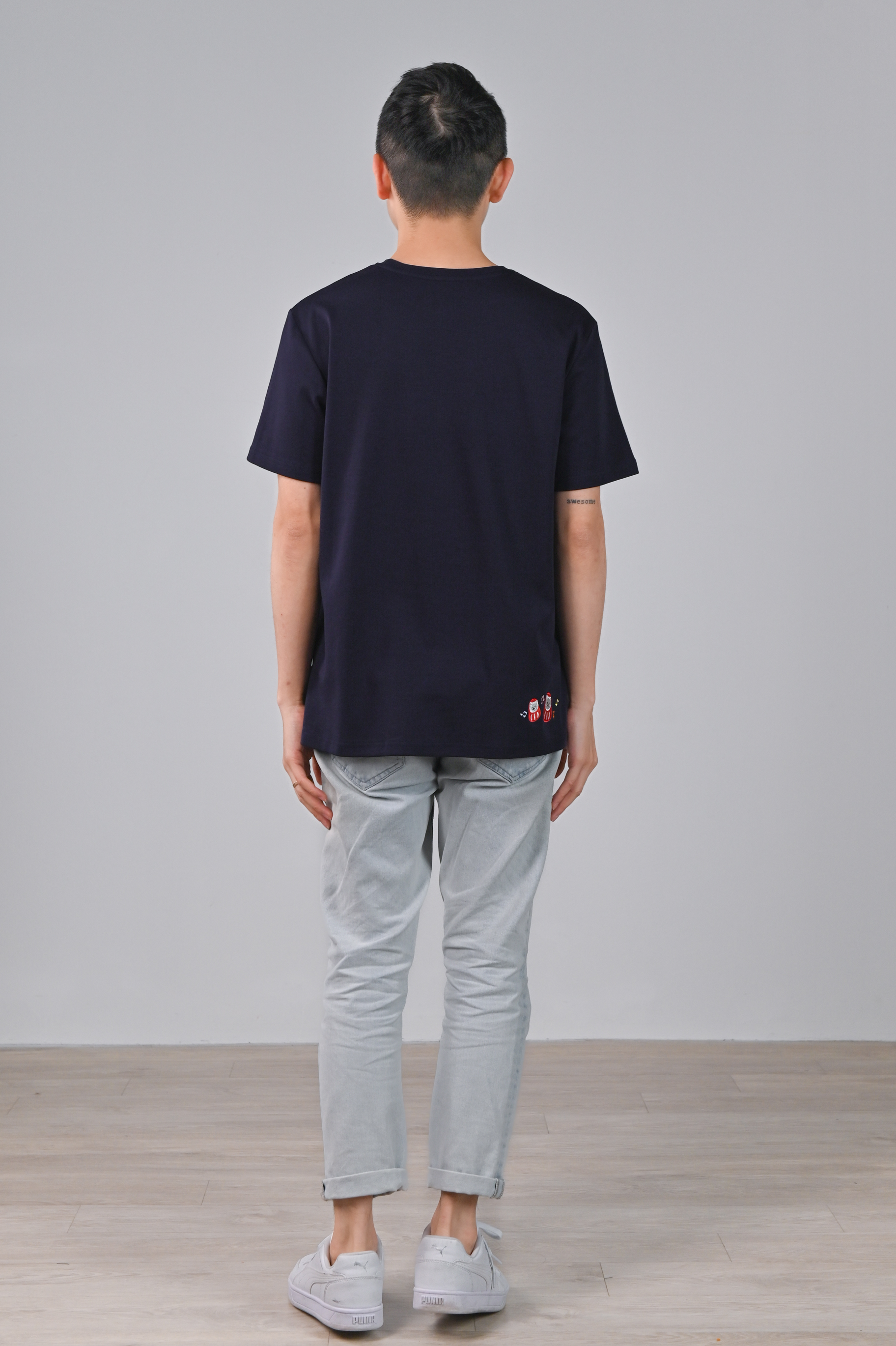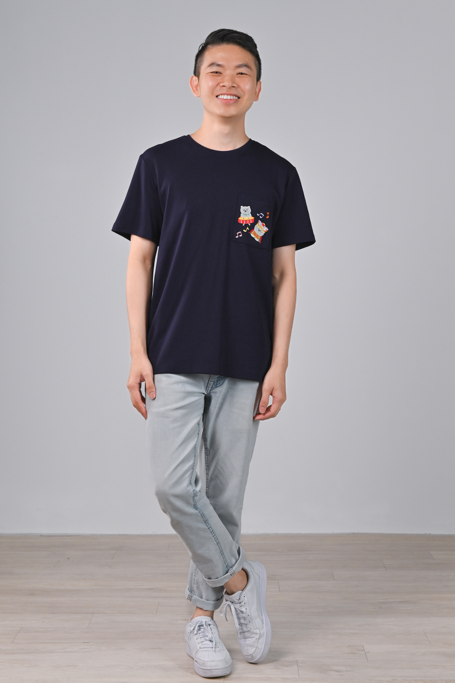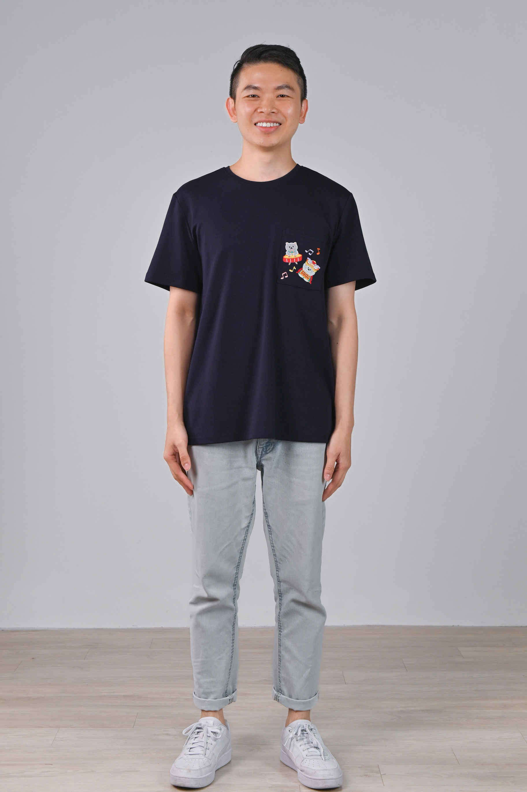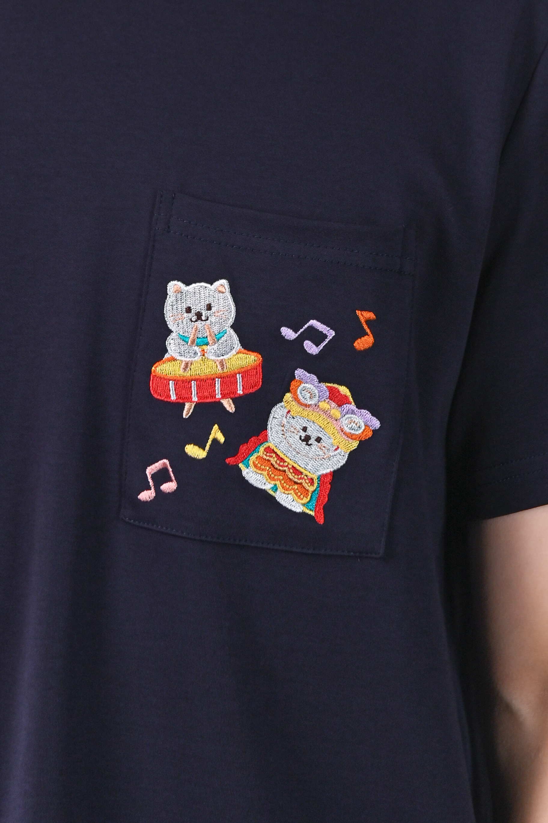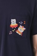 FESTIVE FORTUNE CAT NAVY EMB. UNISEX TEE