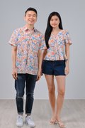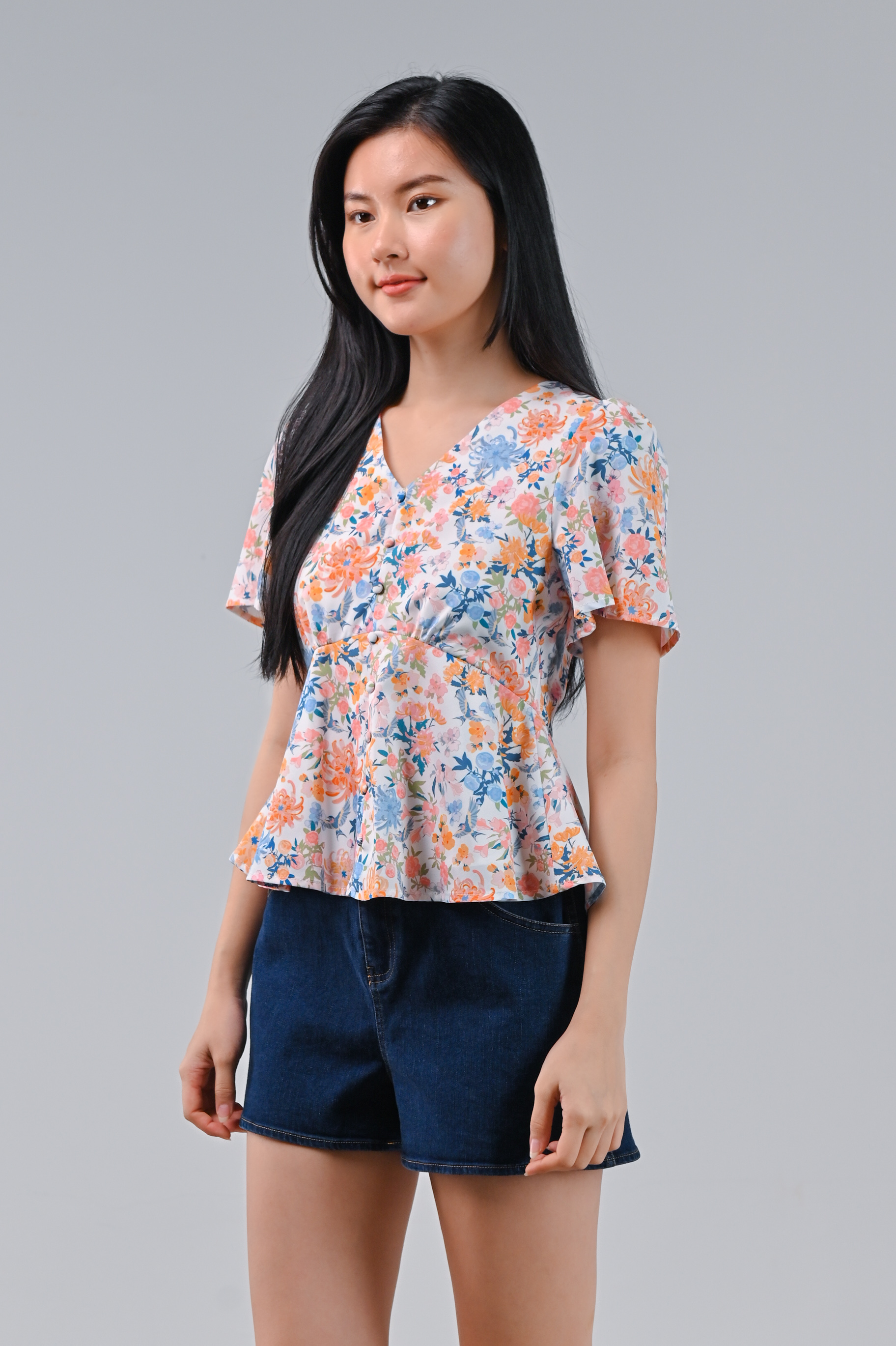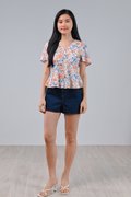 FLORAL FIREWORKS SLEEVED PEPLUM TOP