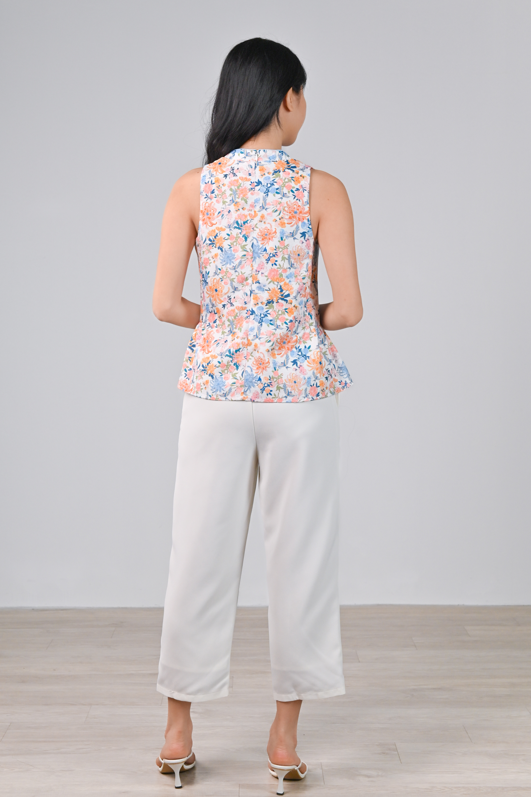 FLORAL FIREWORKS SLEEVELESS CHEONGSAM TOP