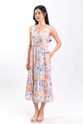 FLORAL FIREWORKS SLEEVELESS SQUARE-NECK DRESS