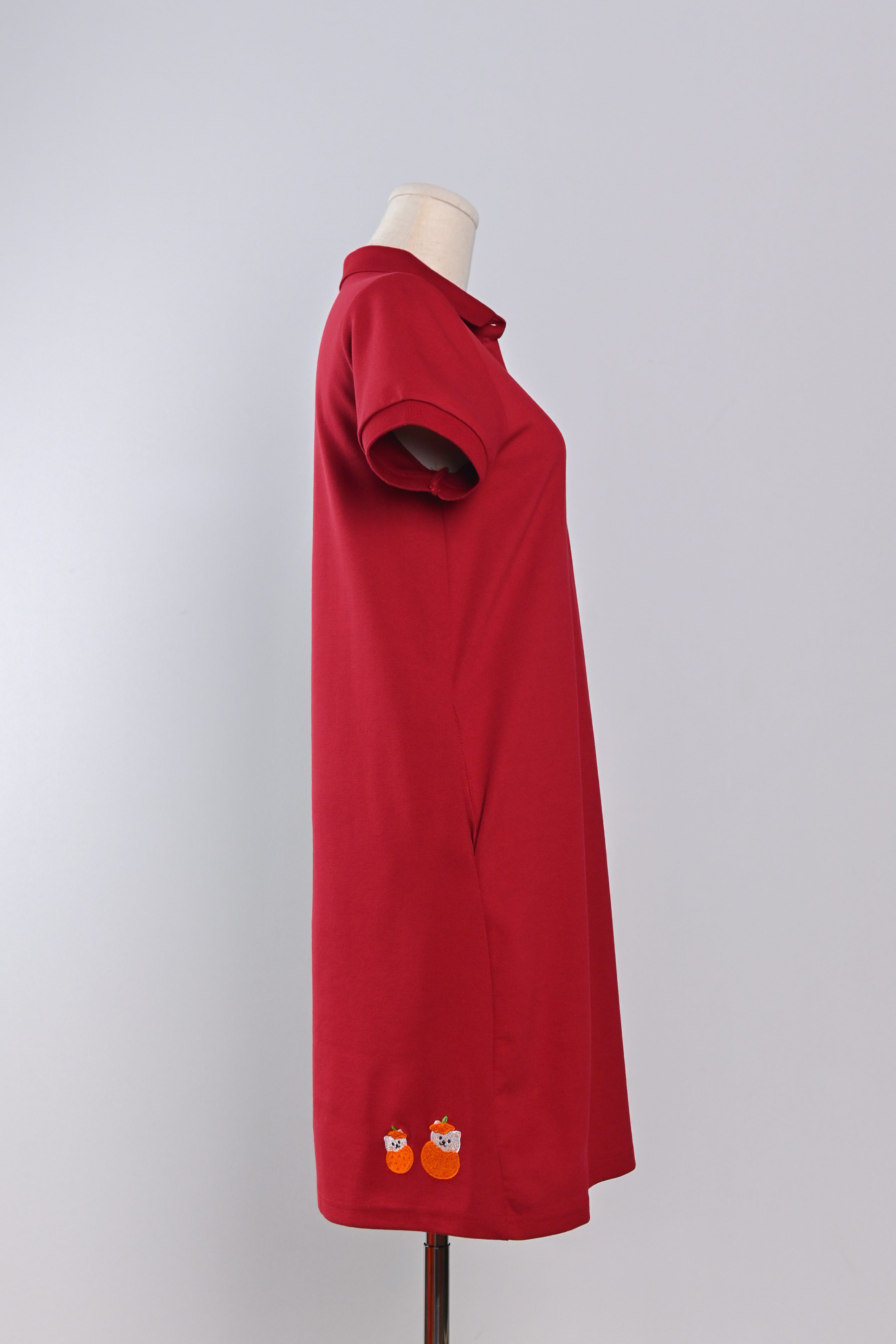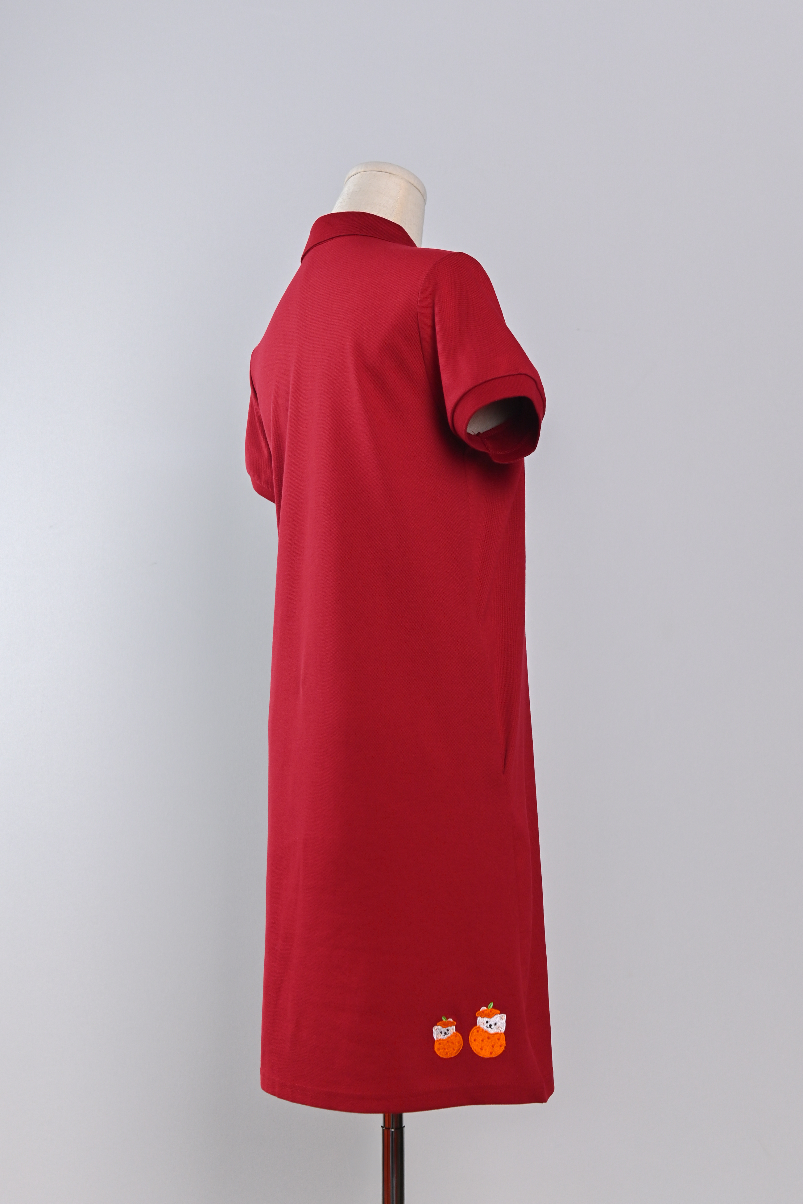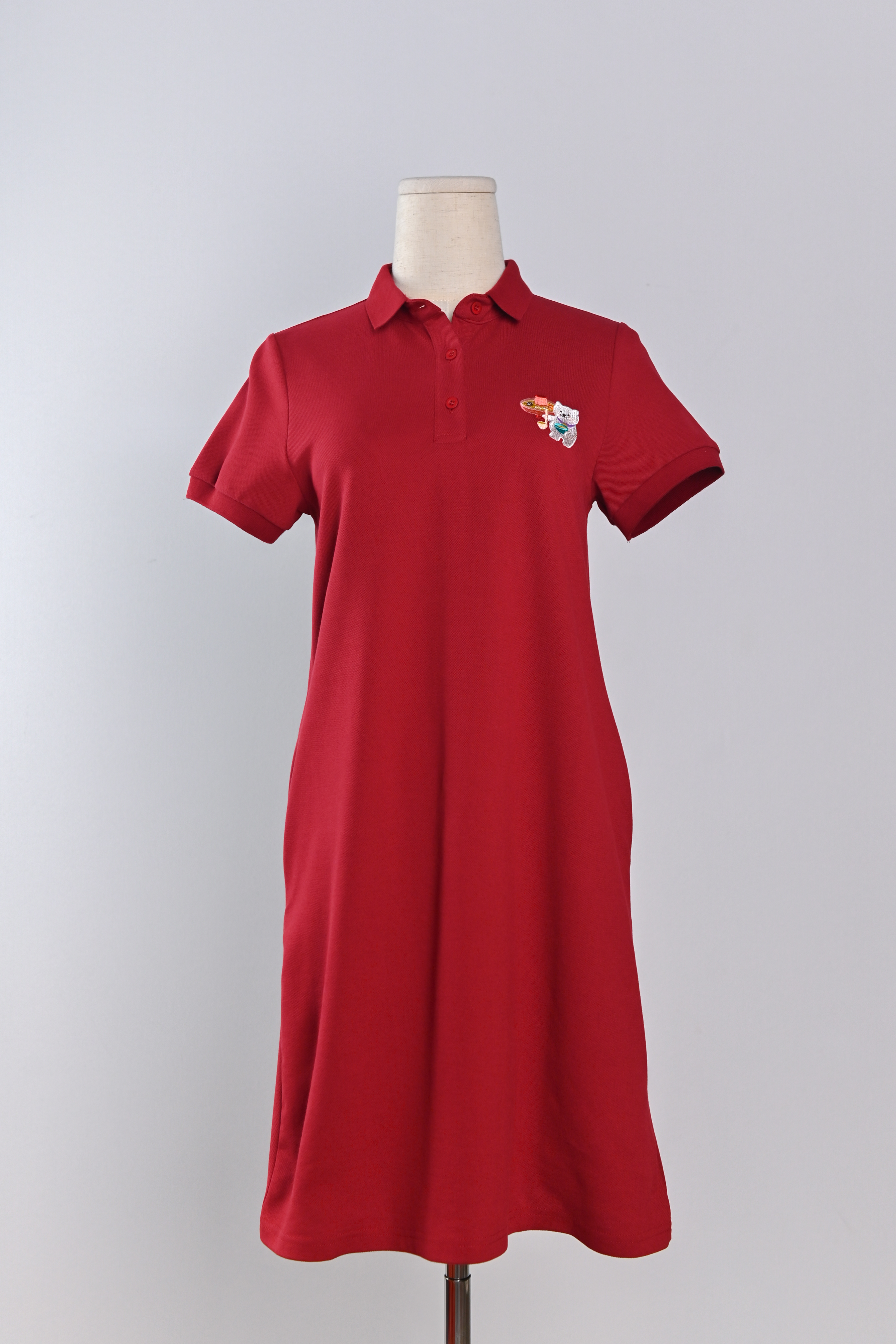 FOODIE FORTUNE CAT RED EMB. POLO DRESS