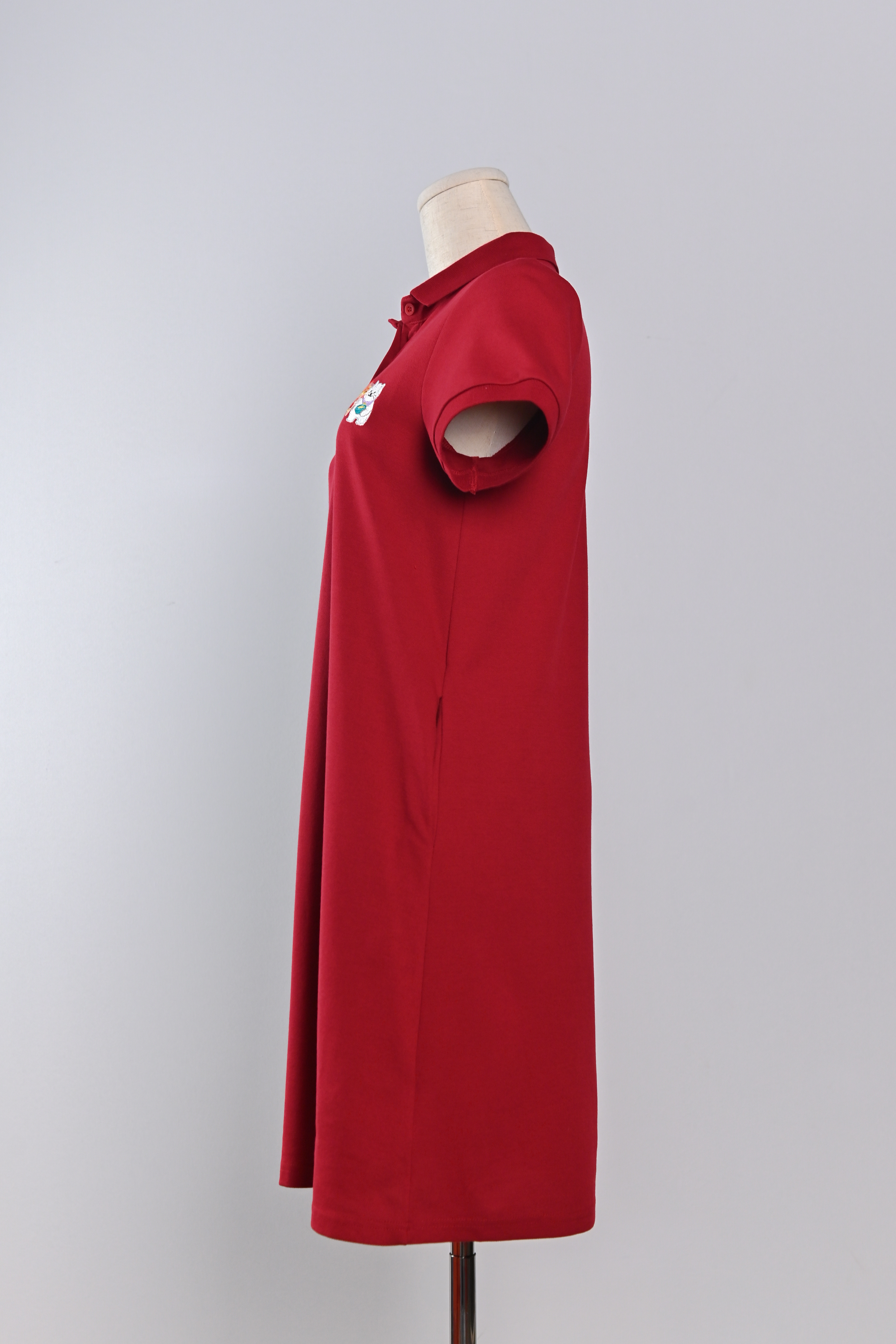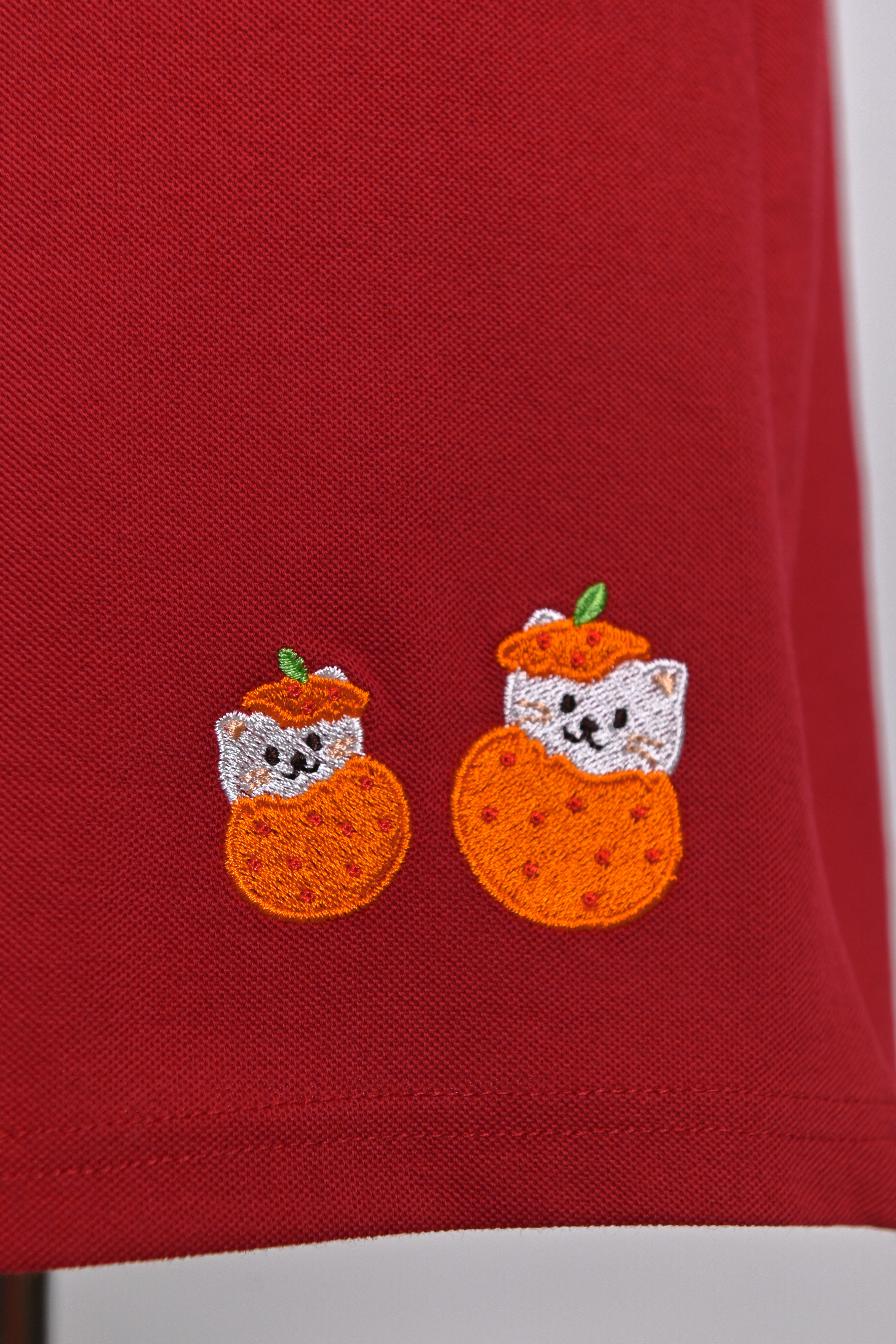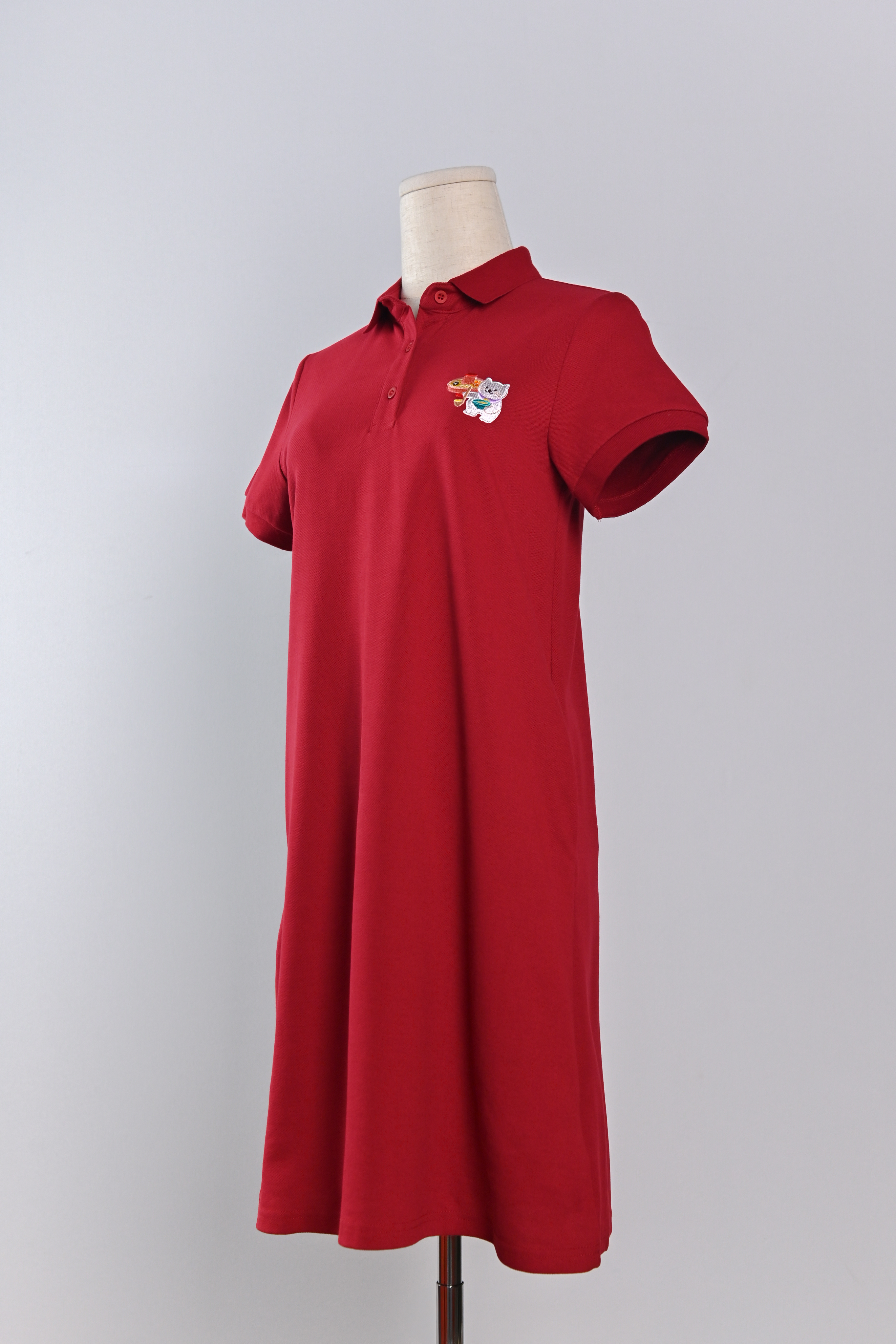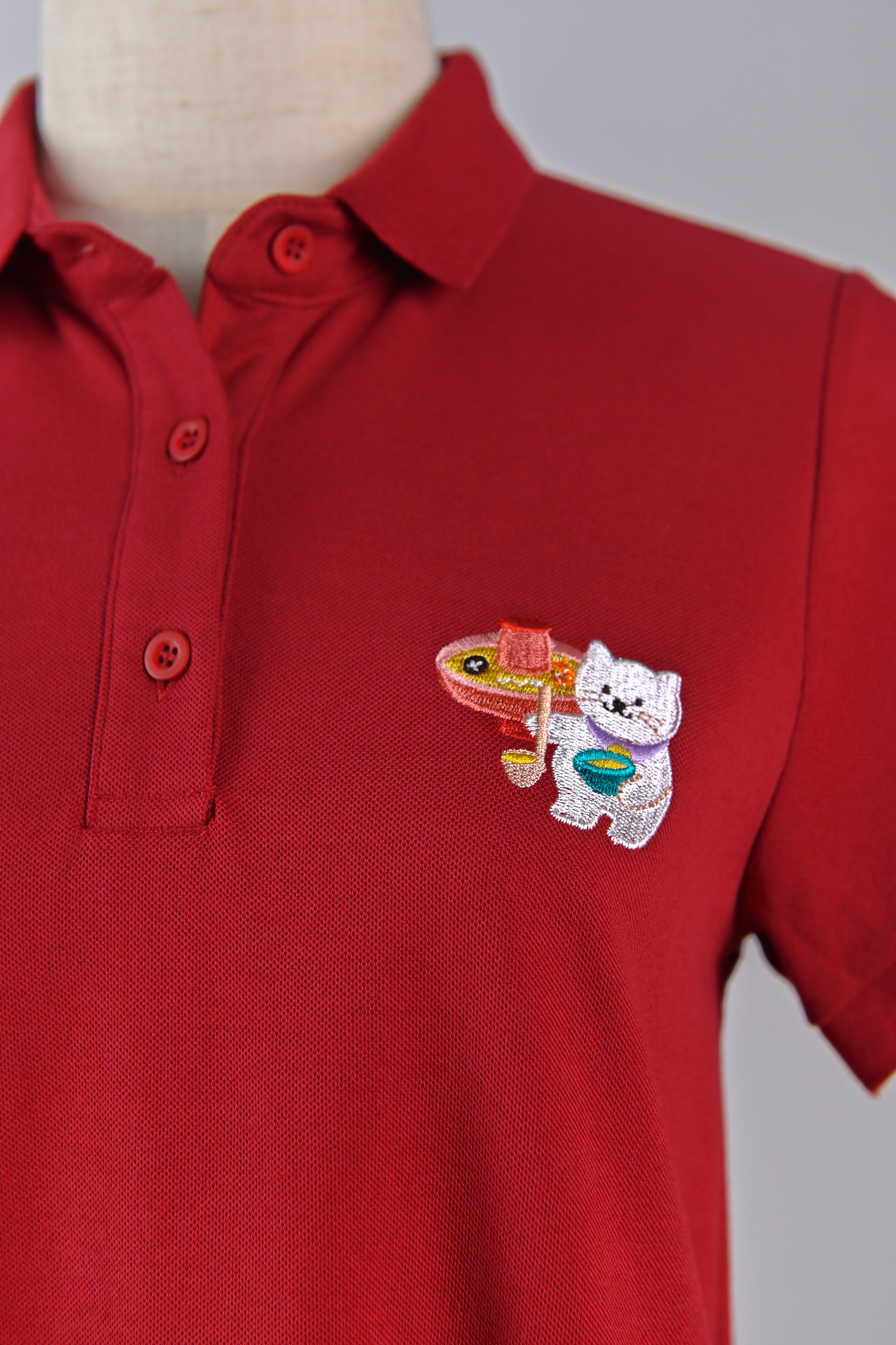 FOODIE FORTUNE CAT RED EMB. POLO DRESS