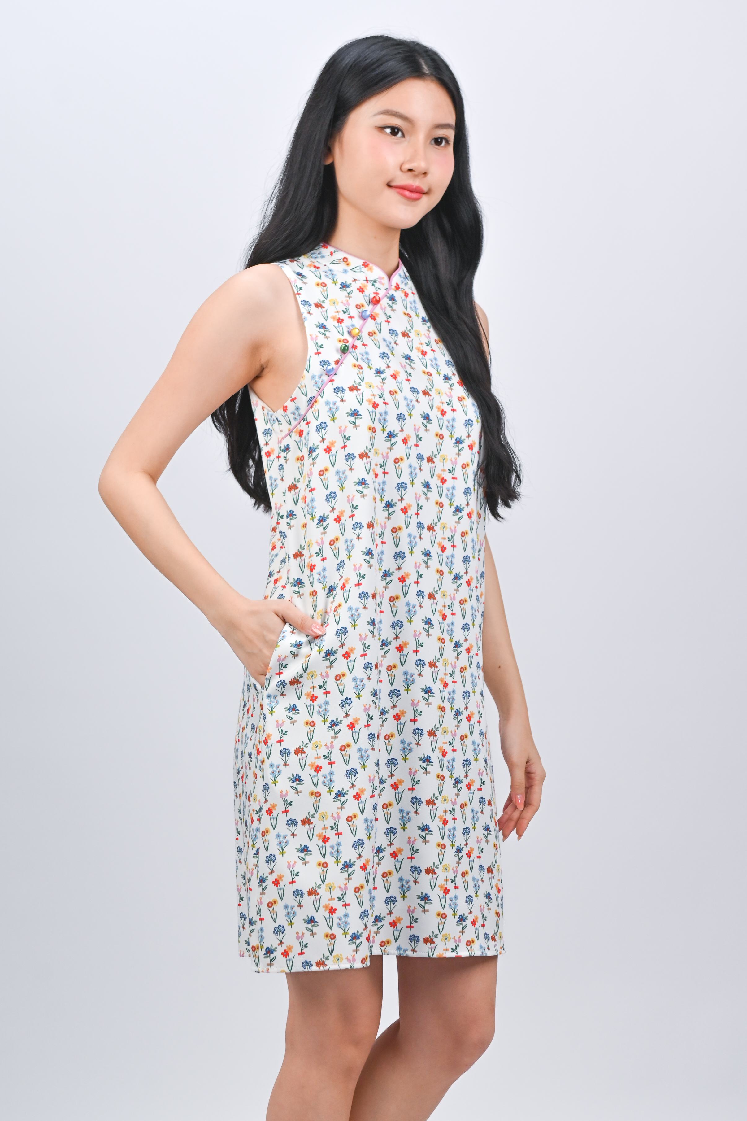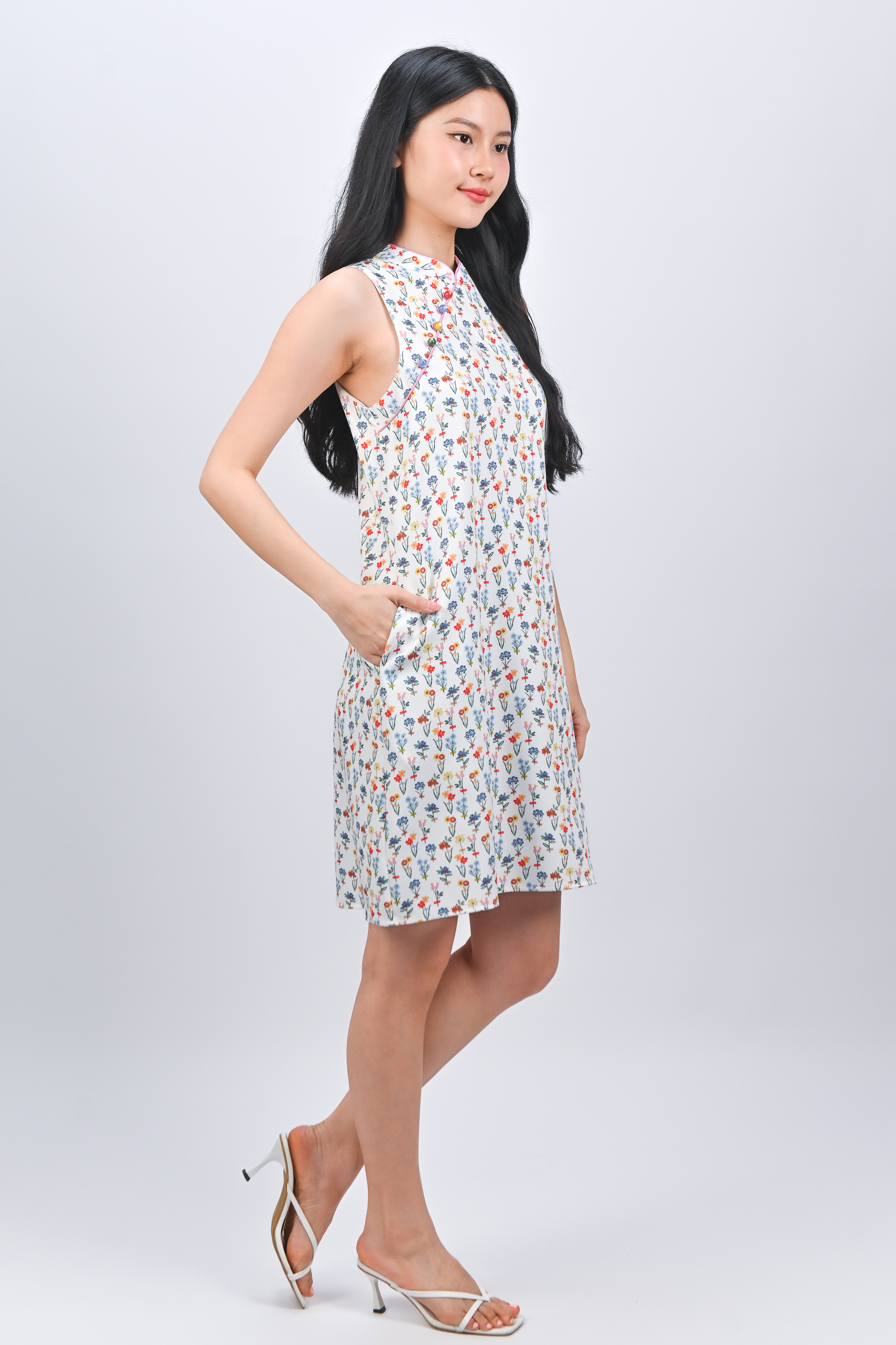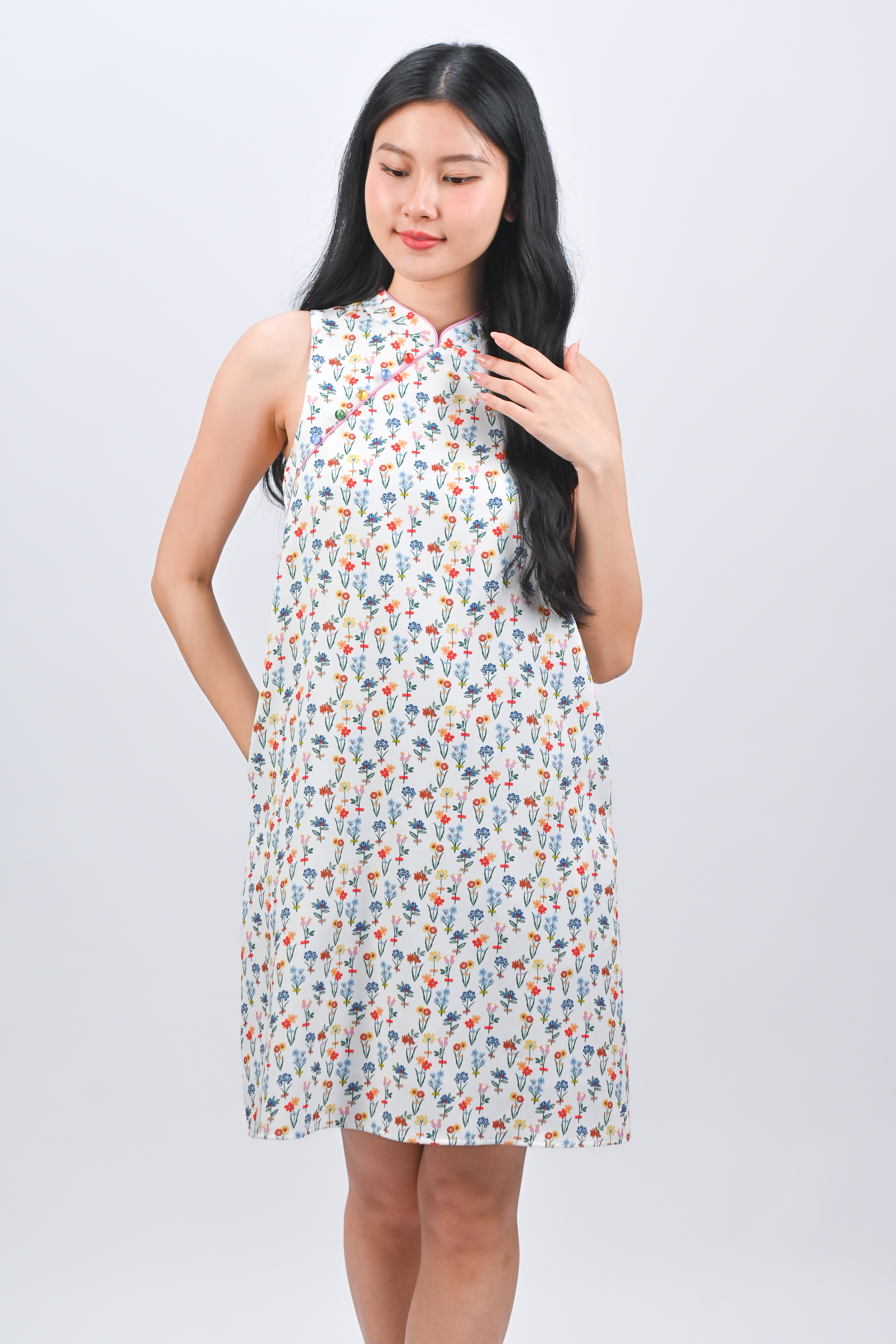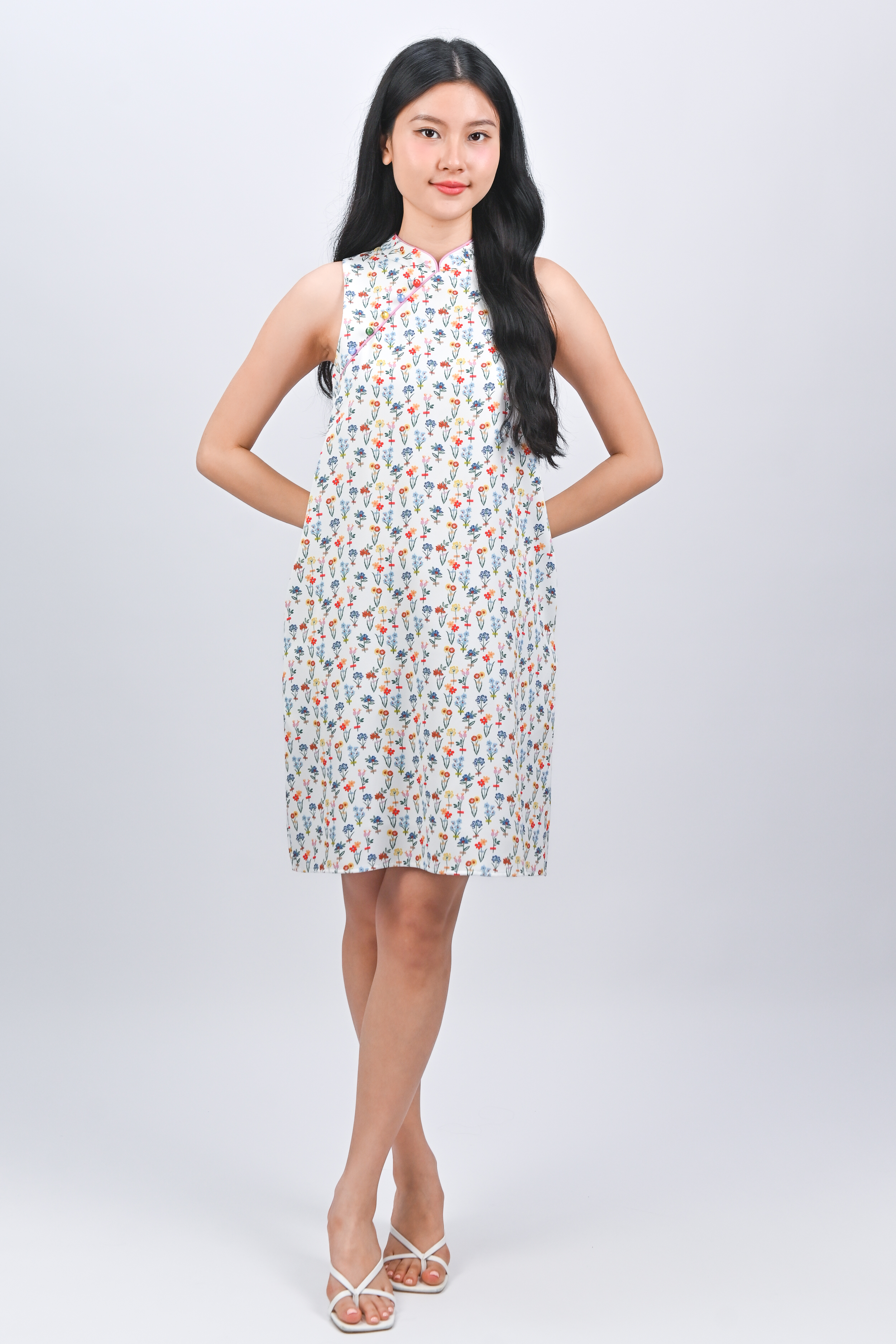 FOREVER BLOOMS SLEEVELESS CHEONGSAM DRESS