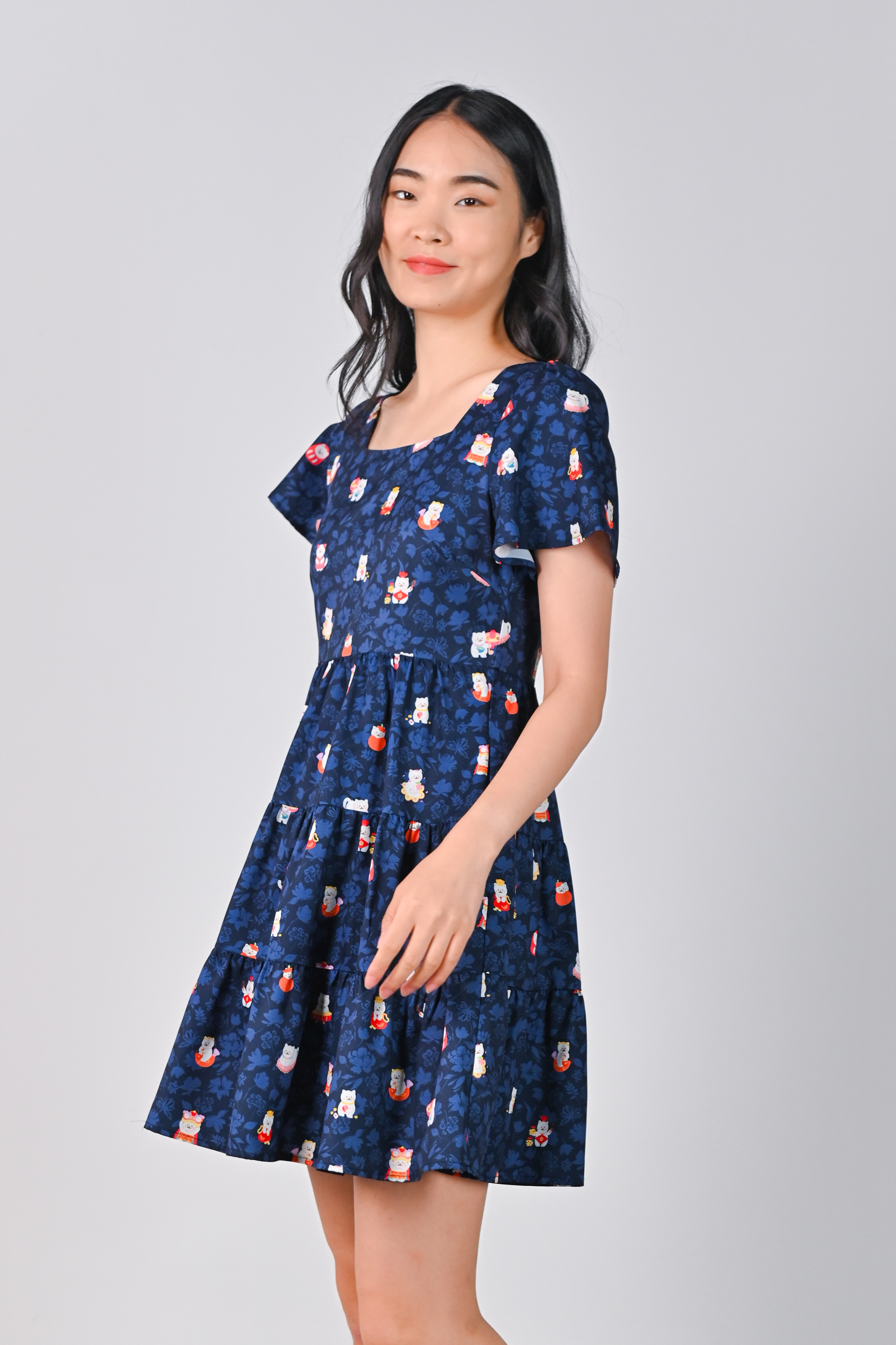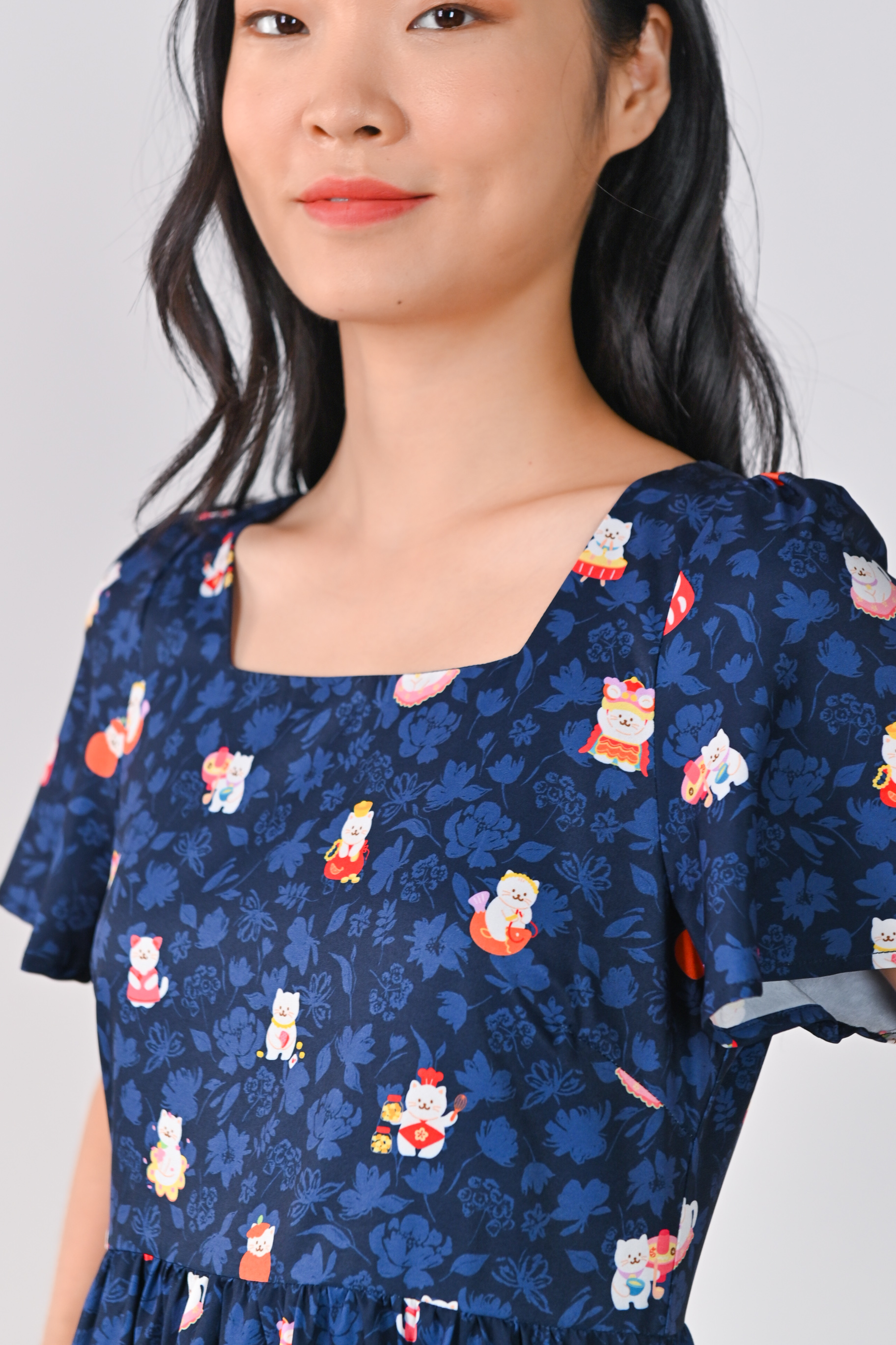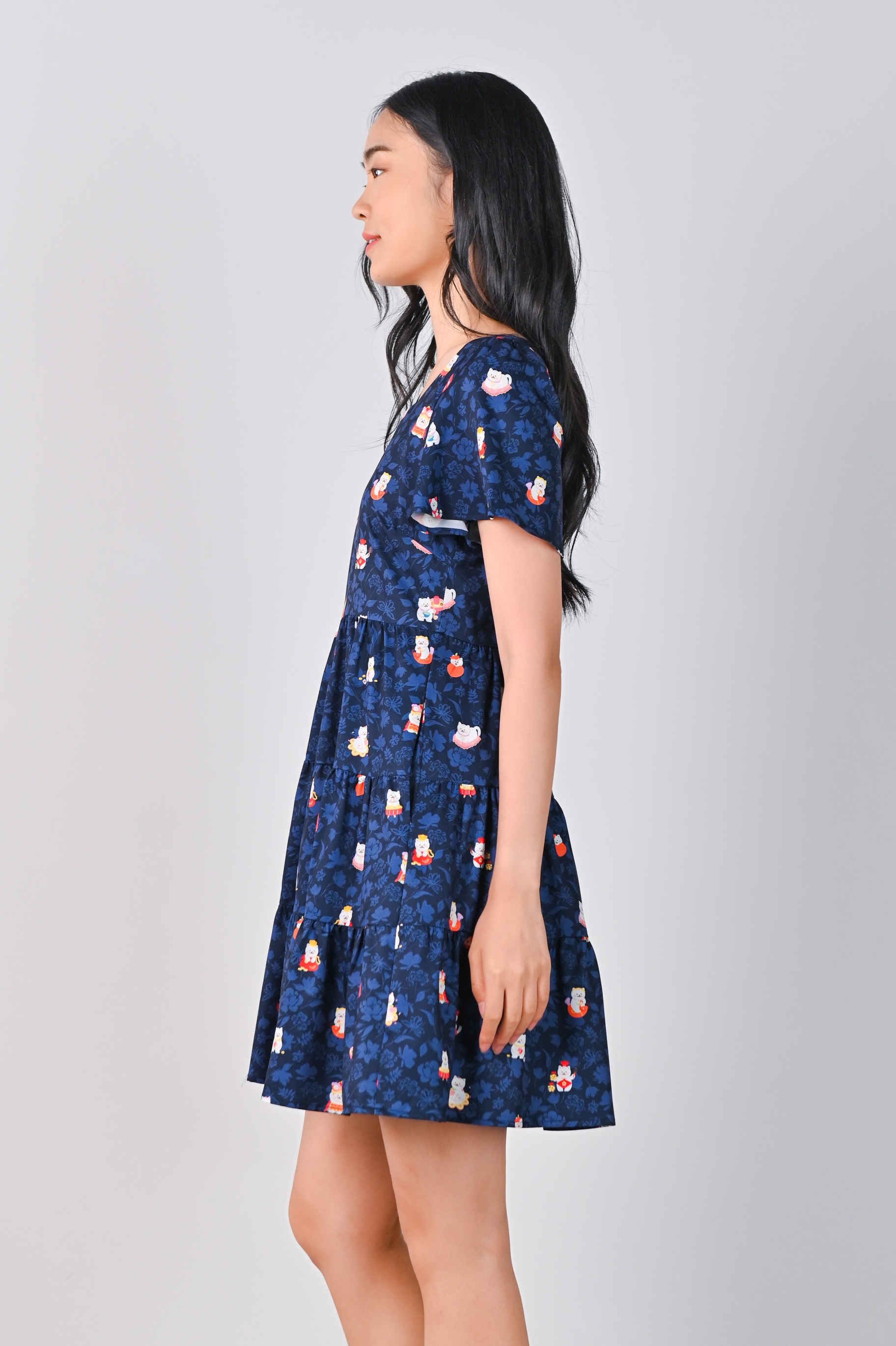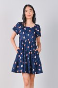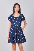 FORTUNE FLORAL CAT NAVY BABYDOLL DRESS