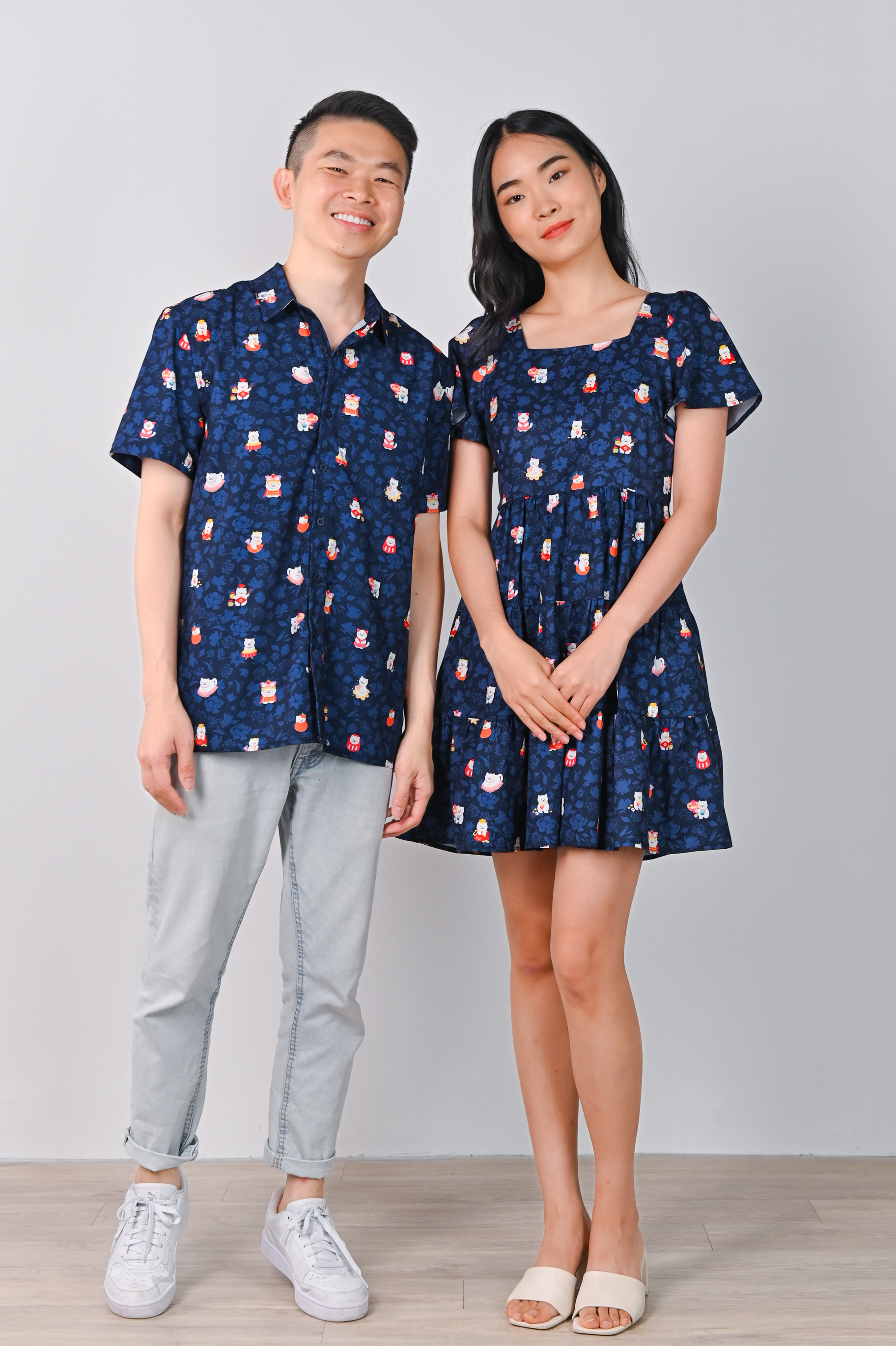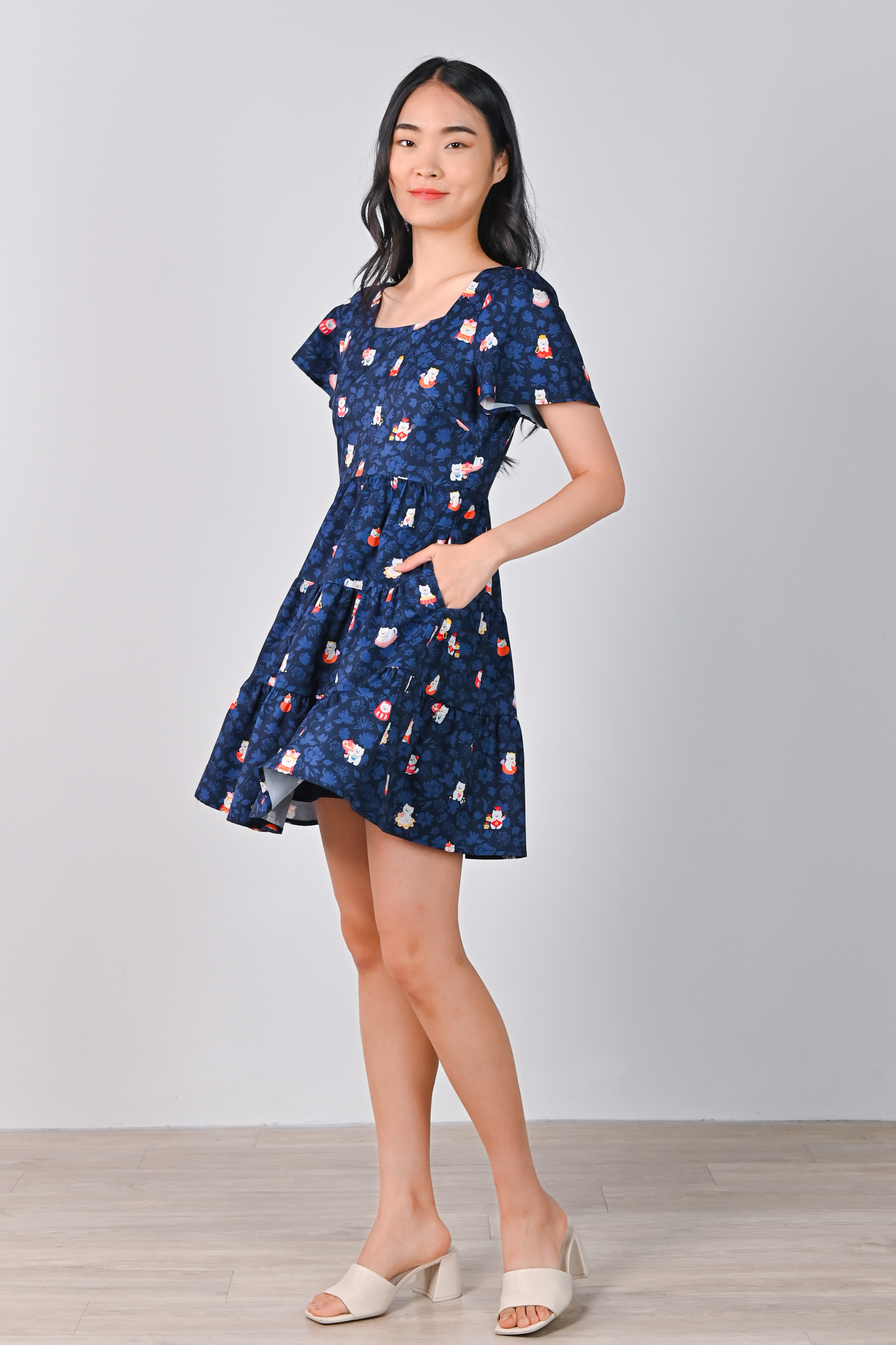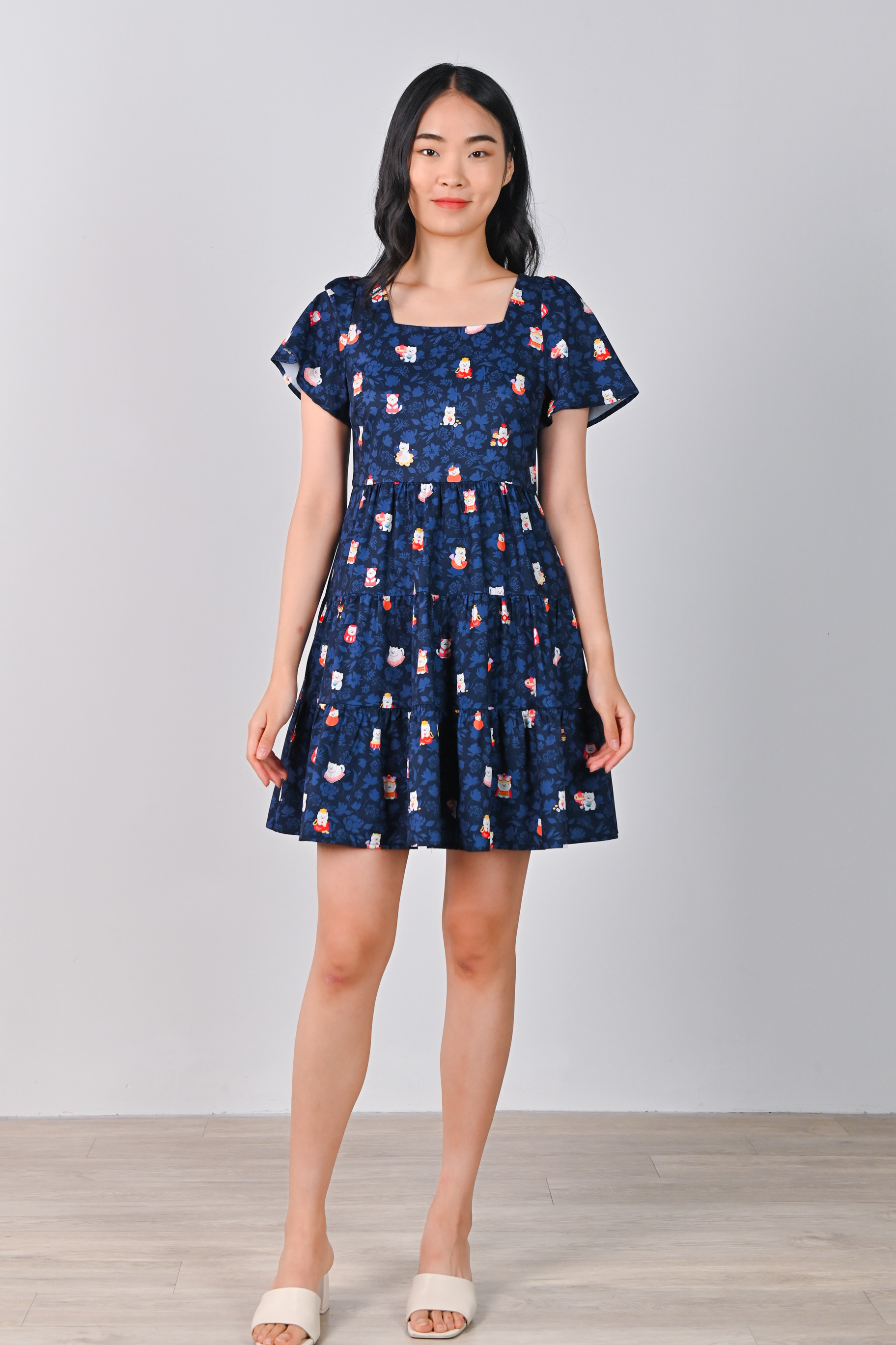 FORTUNE FLORAL CAT NAVY BABYDOLL DRESS