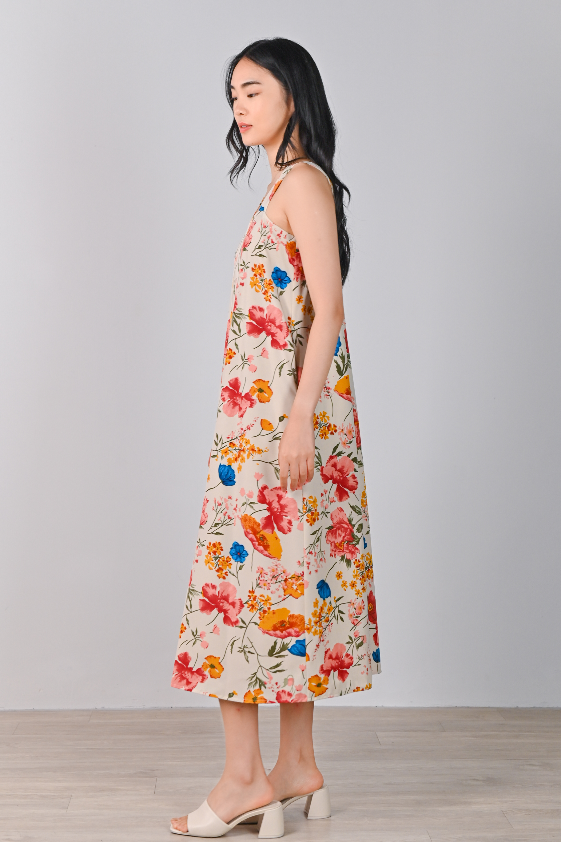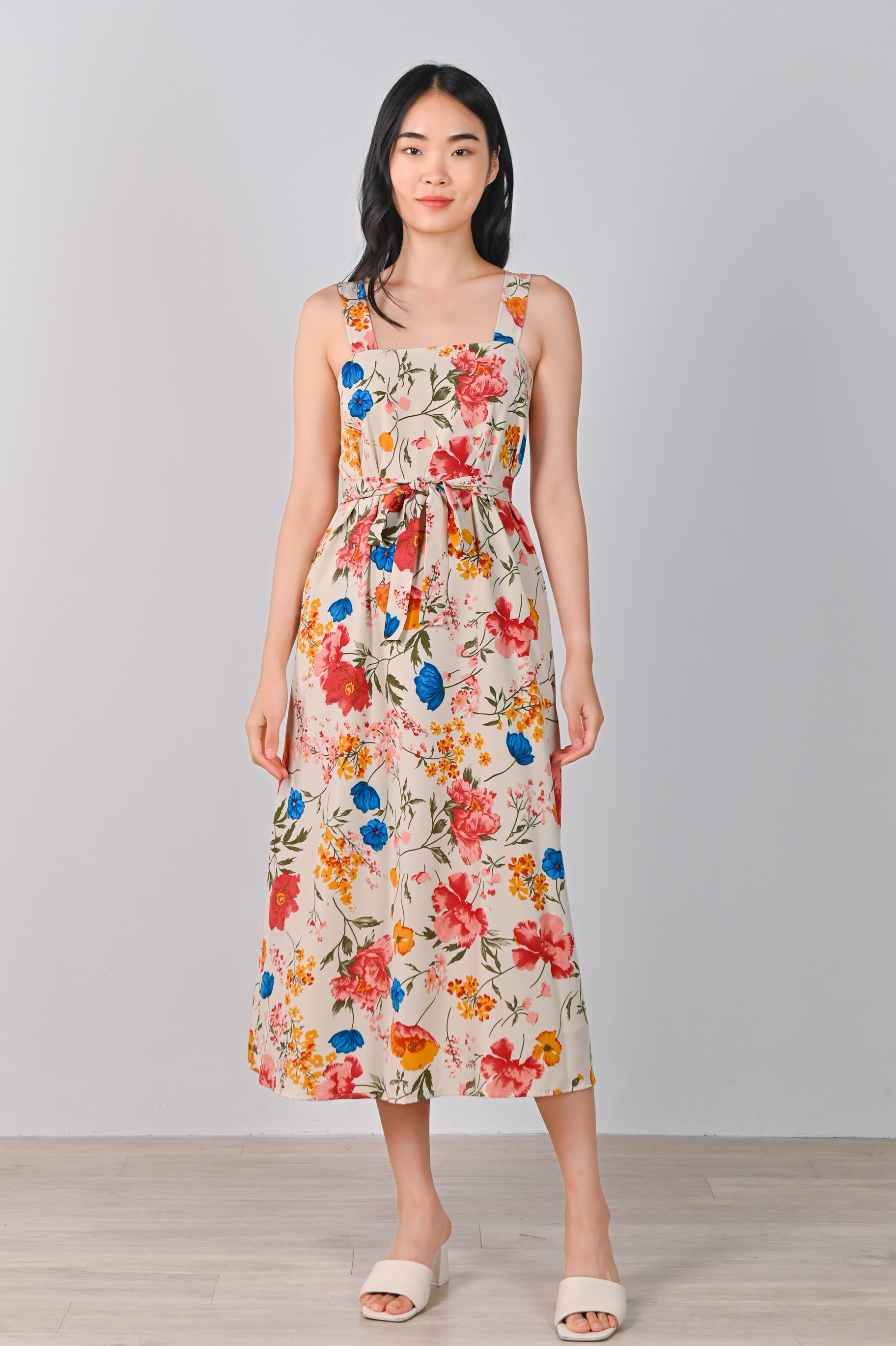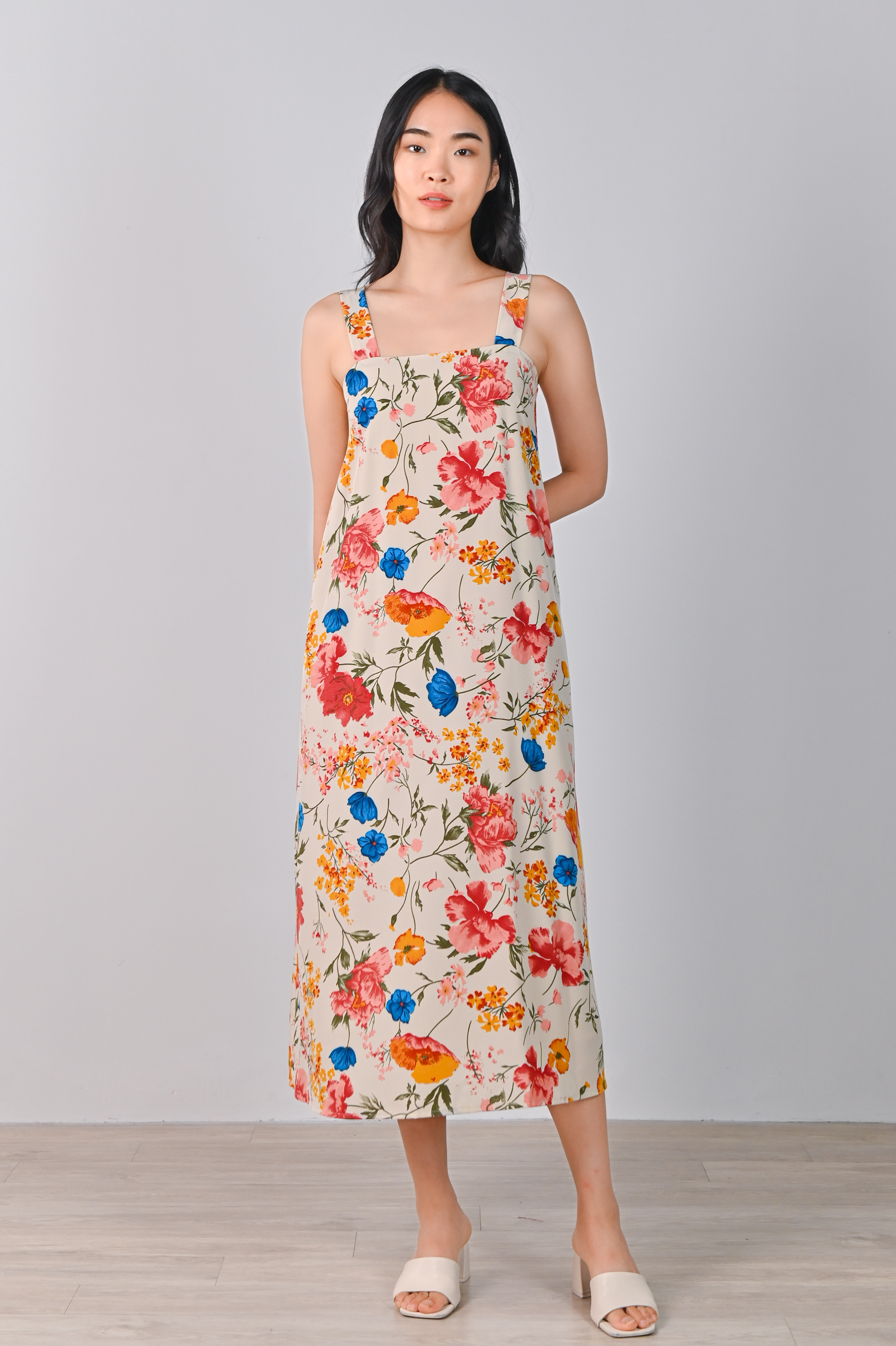 FREESIA THICK-STRAP MIDAXI IN CREAM FLORAL